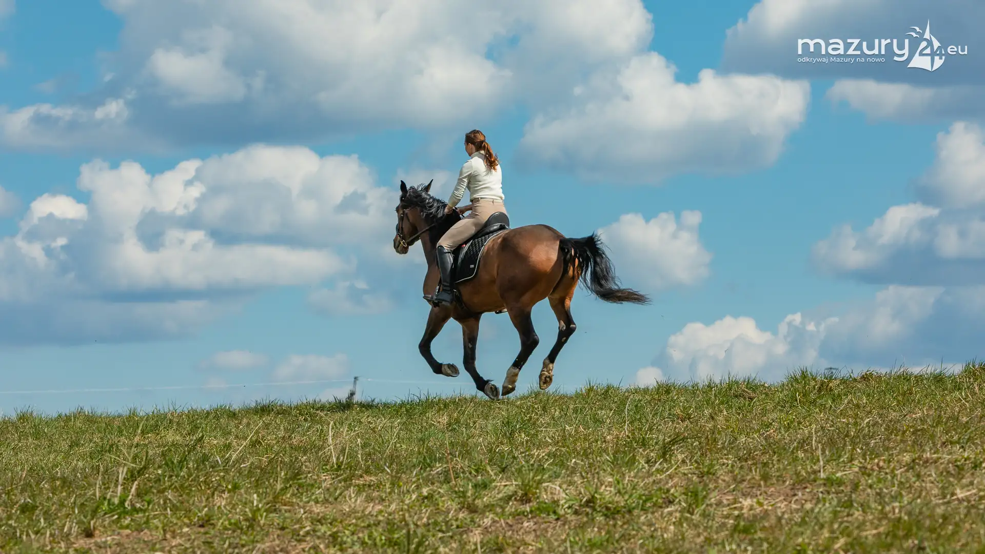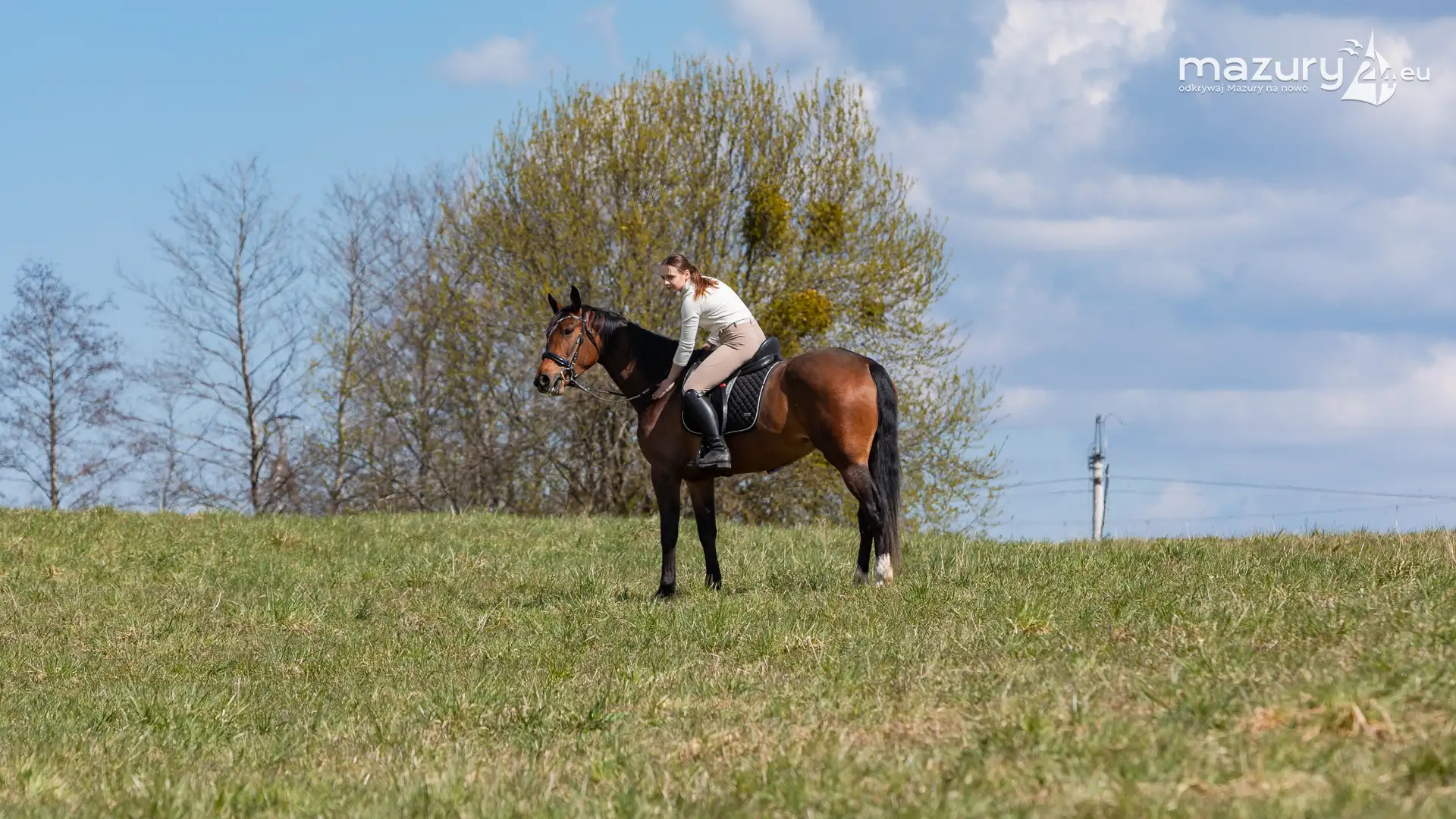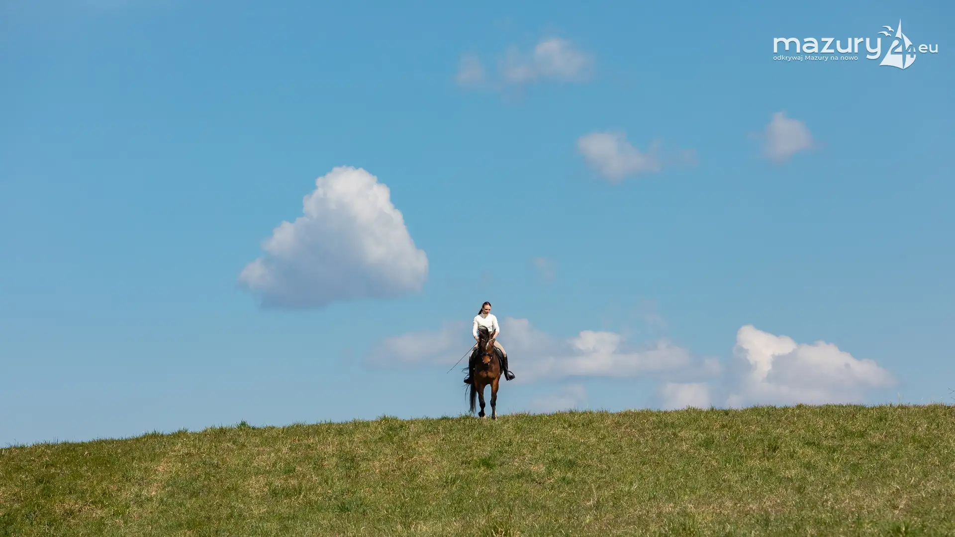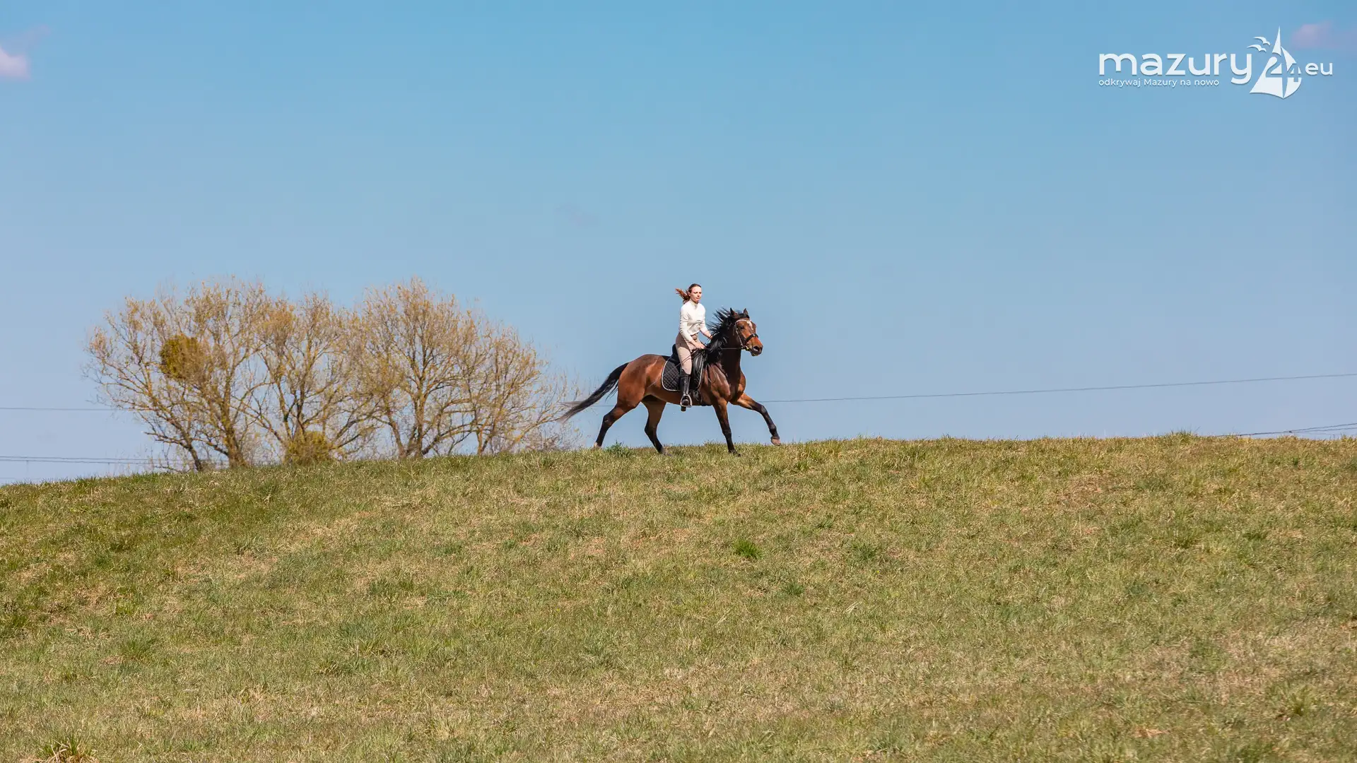 Jak się okazuje mazurskie łąki i pola to znakomite miejsca do spacerów... konno. Oczywiście nie każdy może sobie na to pozwolić, ale miłośnicy koni, zawsze znajdą sposób aby wejść w kłus lub galop na tle mazurskiej przyrody. Jednocześnie dajemy Wam kolejny przykład jak na Mazurach można spędzać wolny czas...
