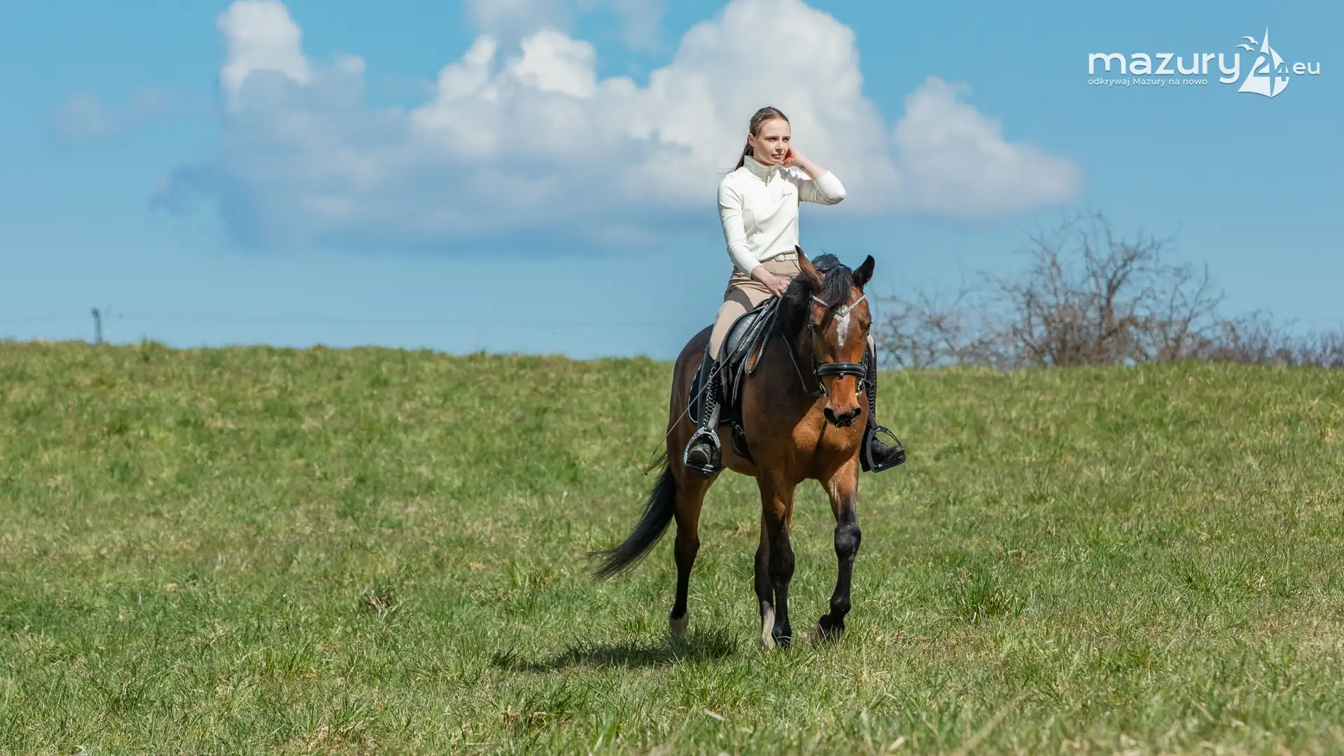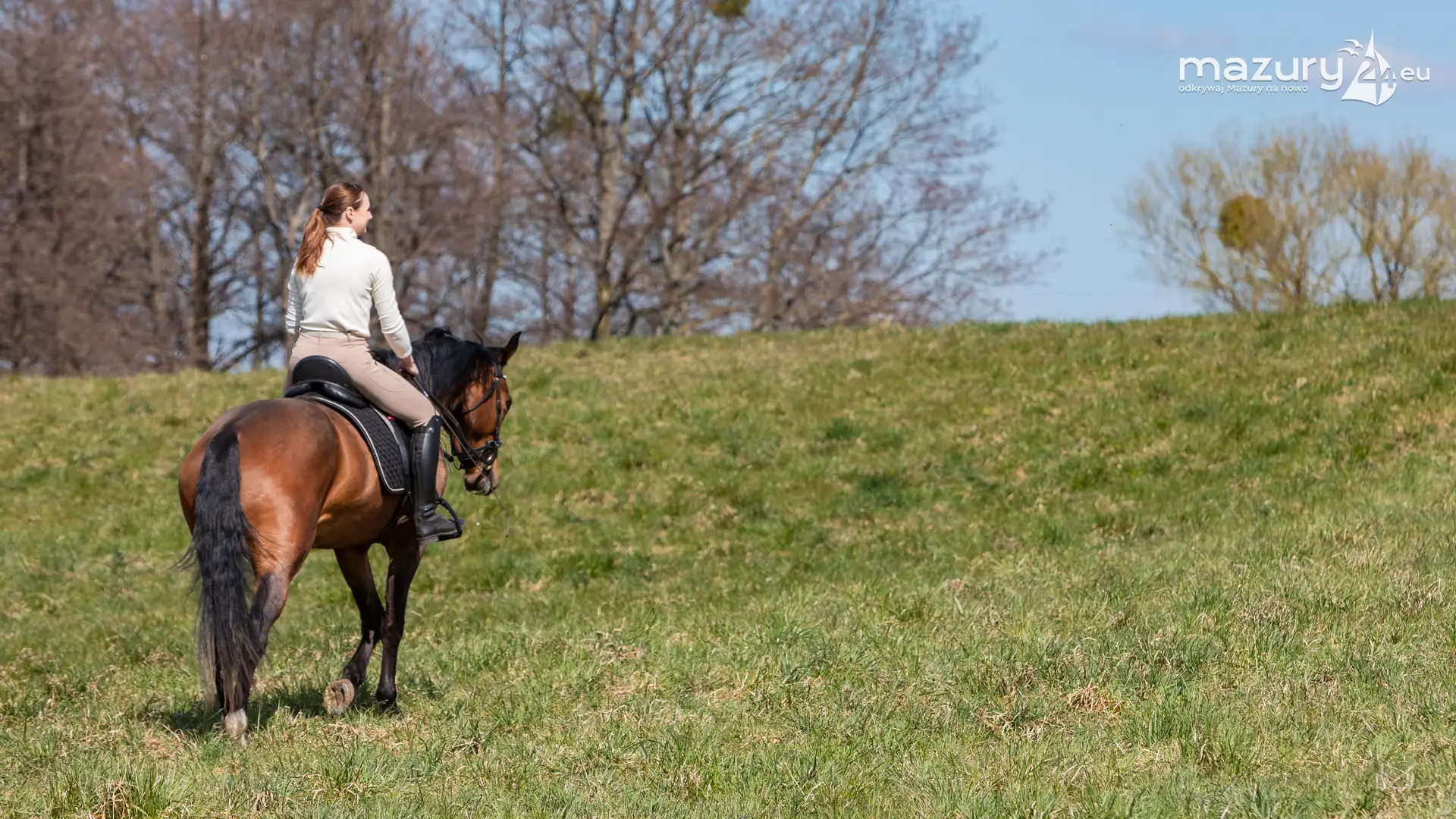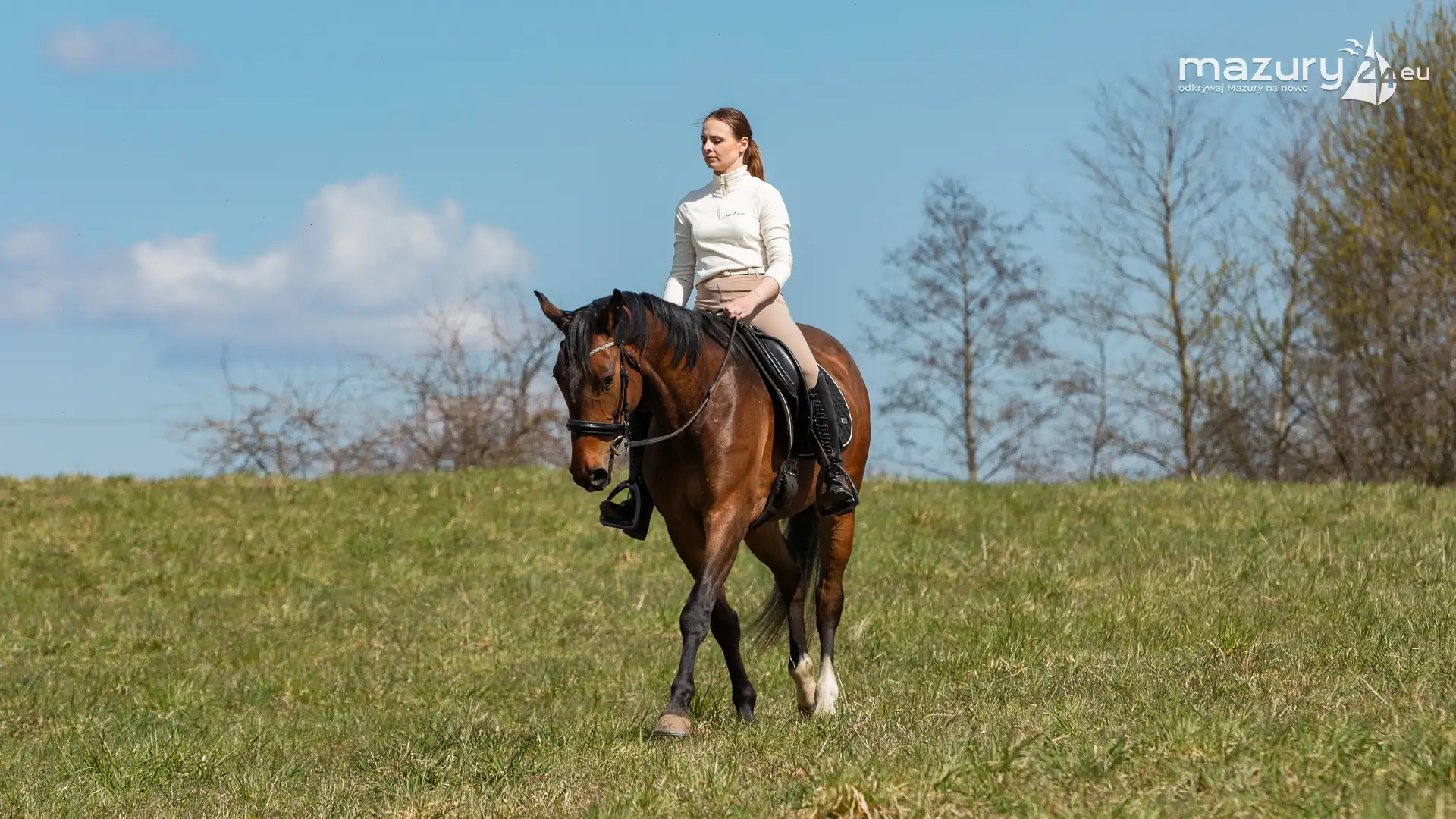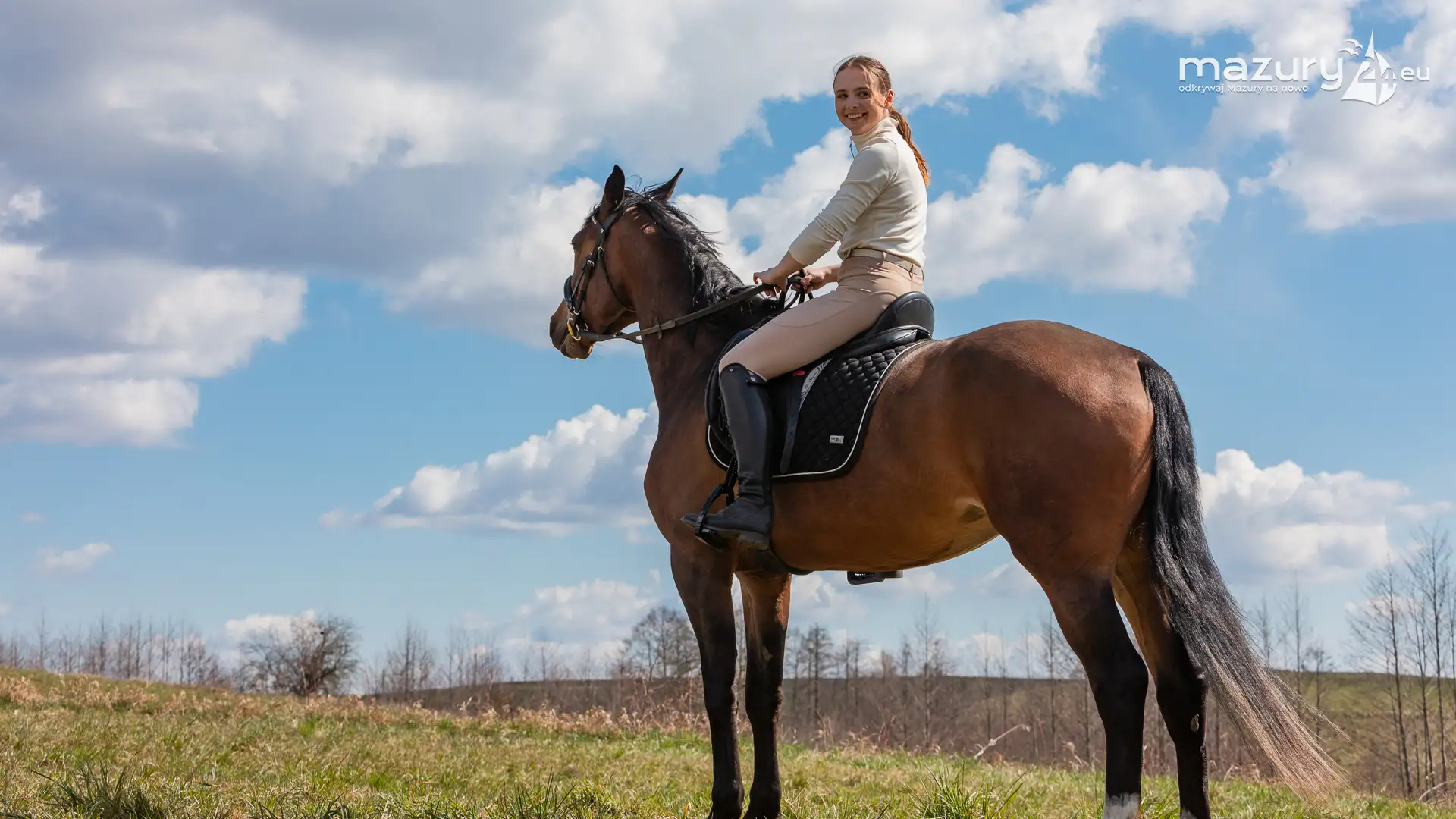 Jak się okazuje mazurskie łąki i pola to znakomite miejsca do spacerów... konno. Oczywiście nie każdy może sobie na to pozwolić, ale miłośnicy koni, zawsze znajdą sposób aby wejść w kłus lub galop na tle mazurskiej przyrody. Jednocześnie dajemy Wam kolejny przykład jak na Mazurach można spędzać wolny czas...