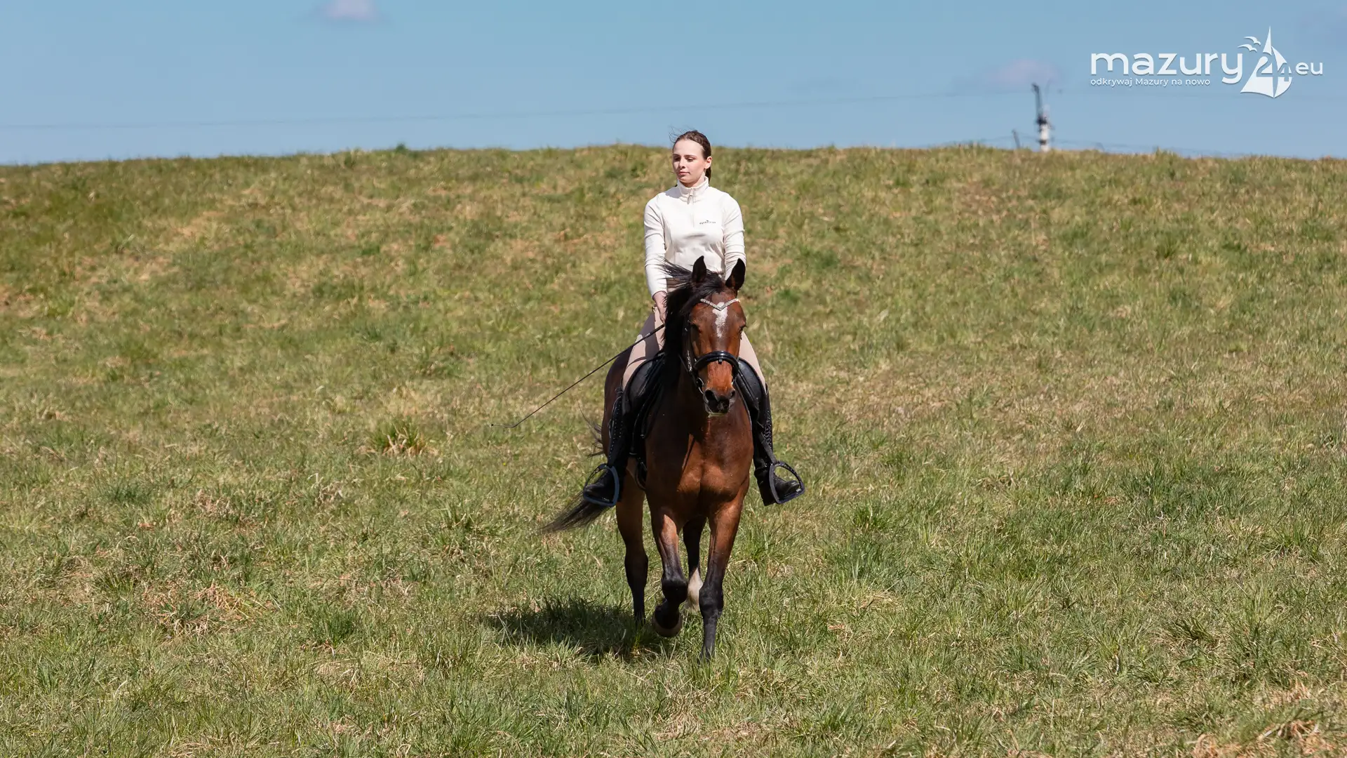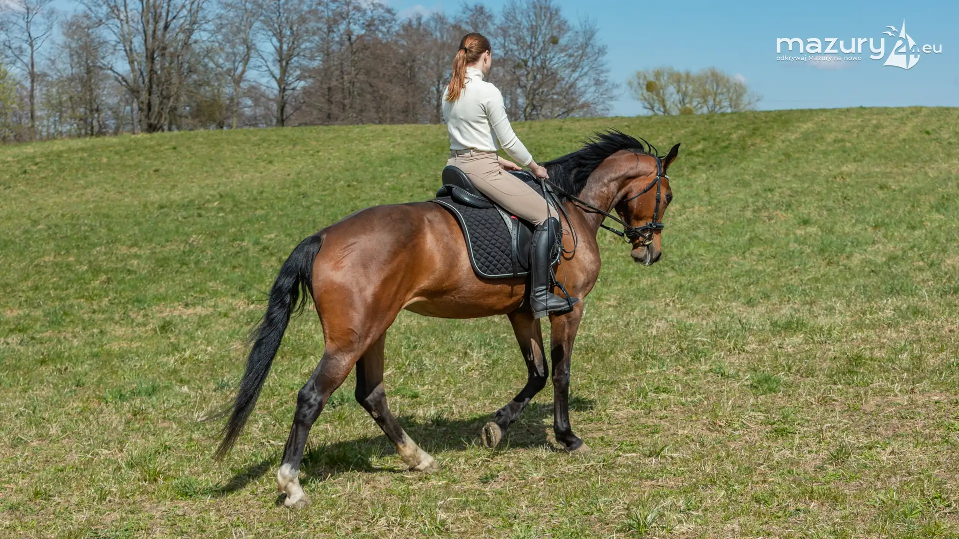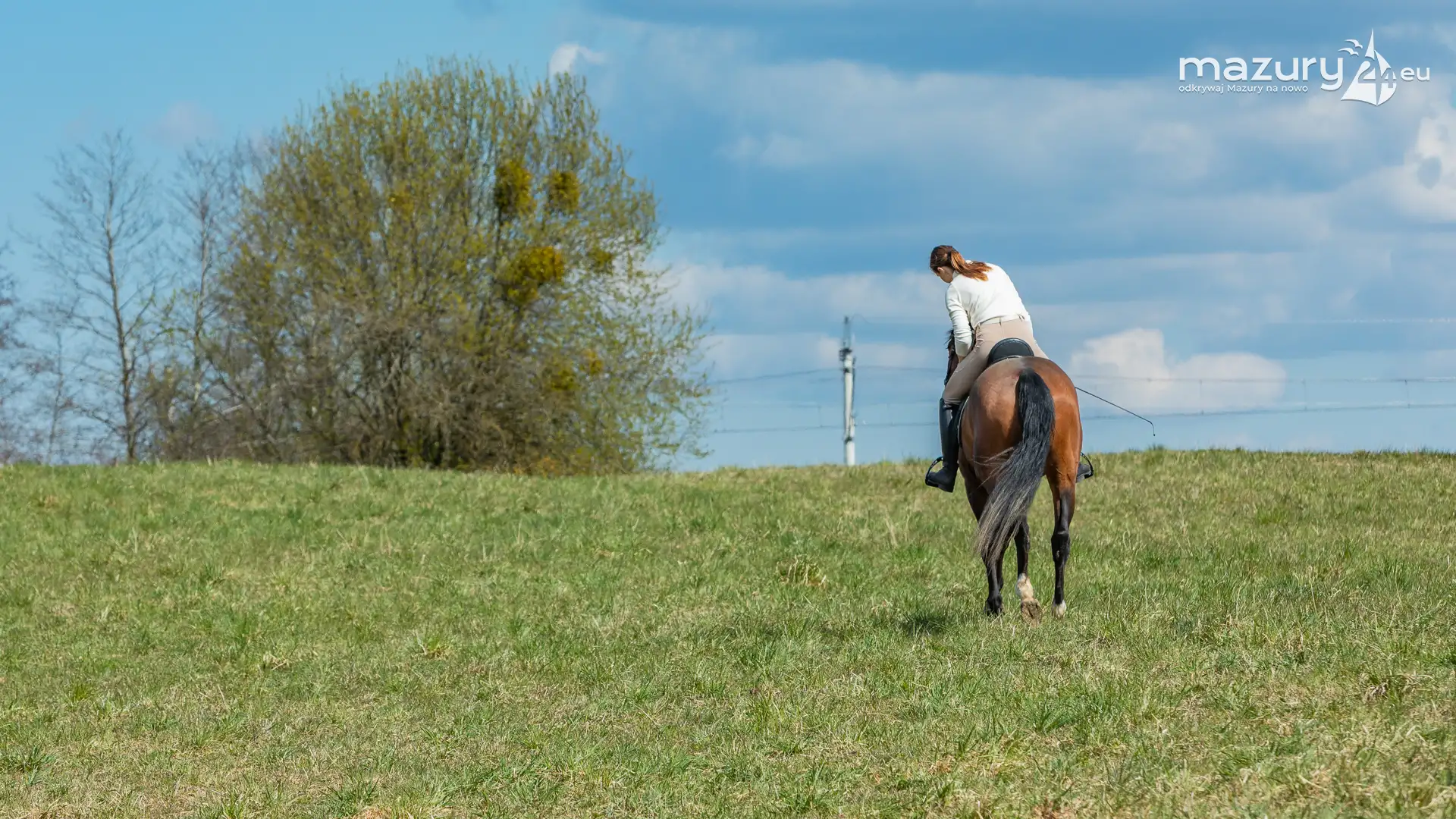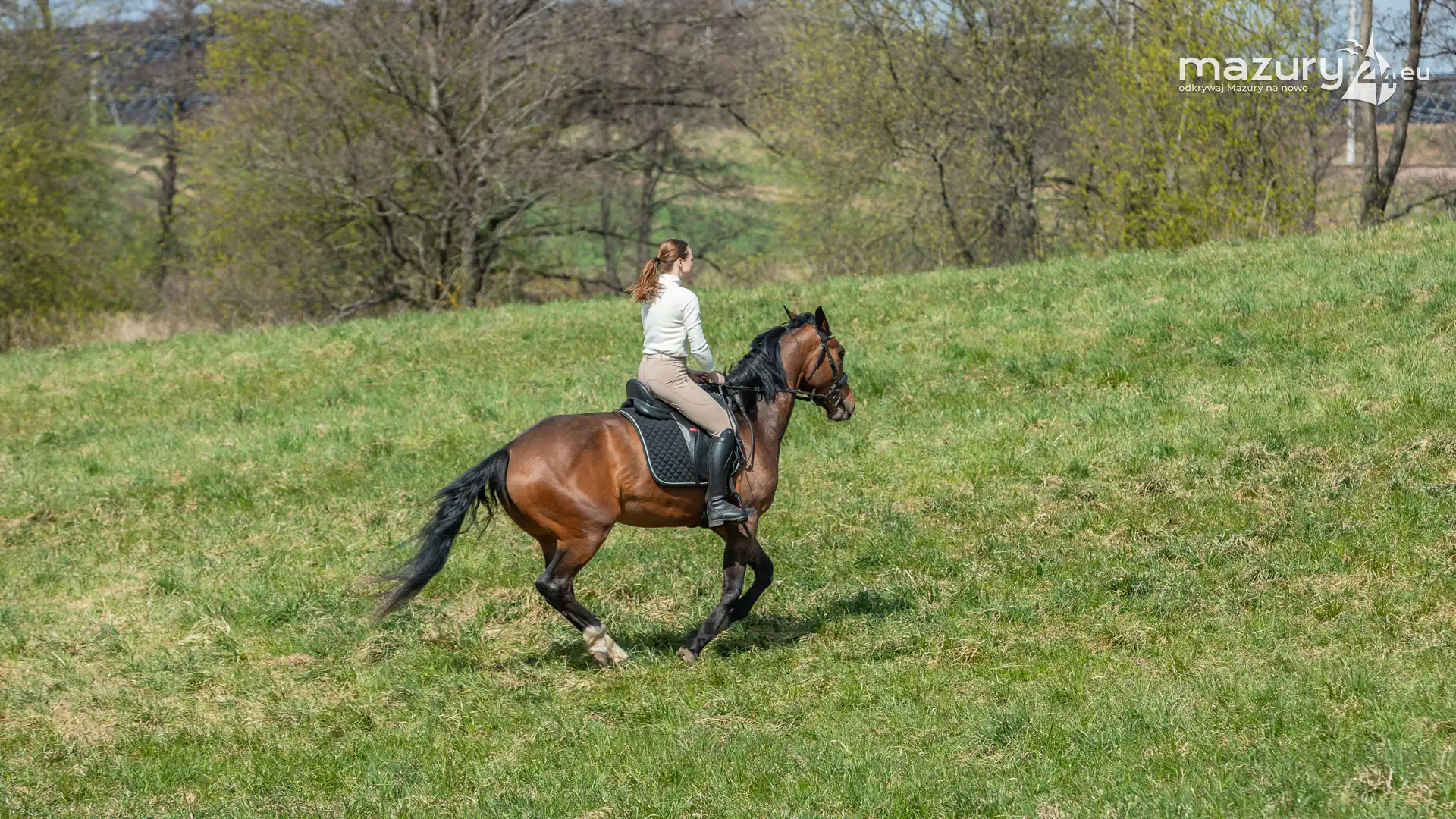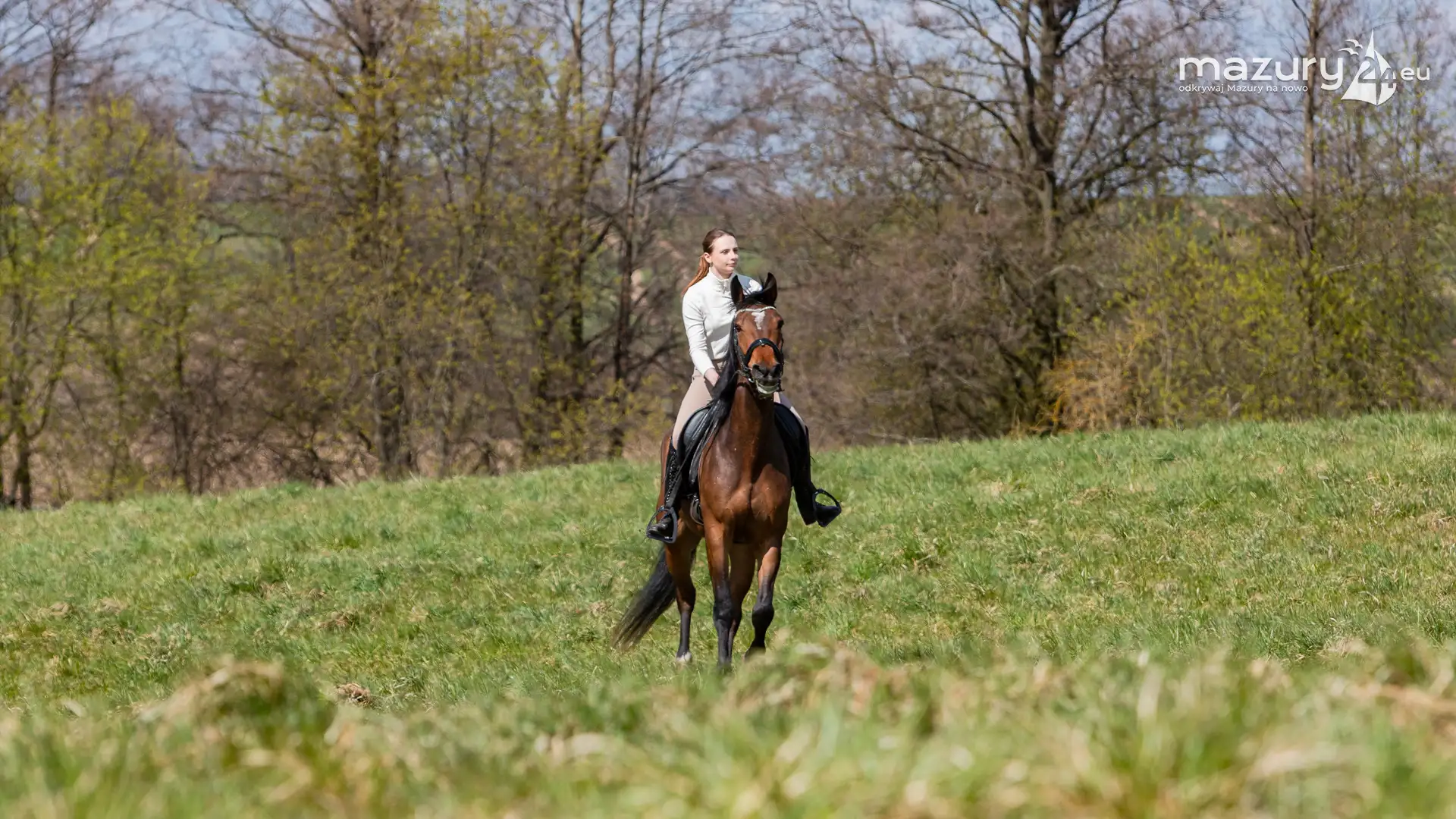 Jak się okazuje mazurskie łąki i pola to znakomite miejsca do spacerów... konno. Oczywiście nie każdy może sobie na to pozwolić, ale miłośnicy koni, zawsze znajdą sposób aby wejść w kłus lub galop na tle mazurskiej przyrody. Jednocześnie dajemy Wam kolejny przykład jak na Mazurach można spędzać wolny czas...