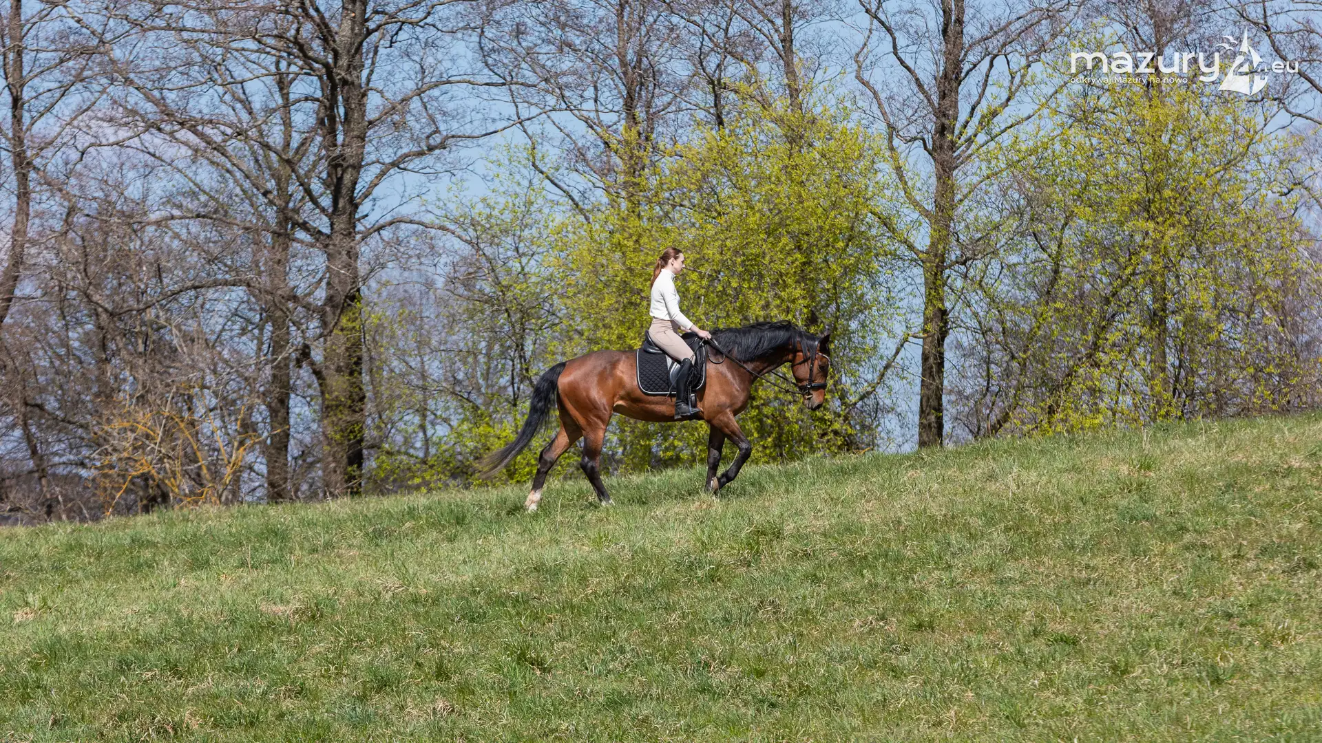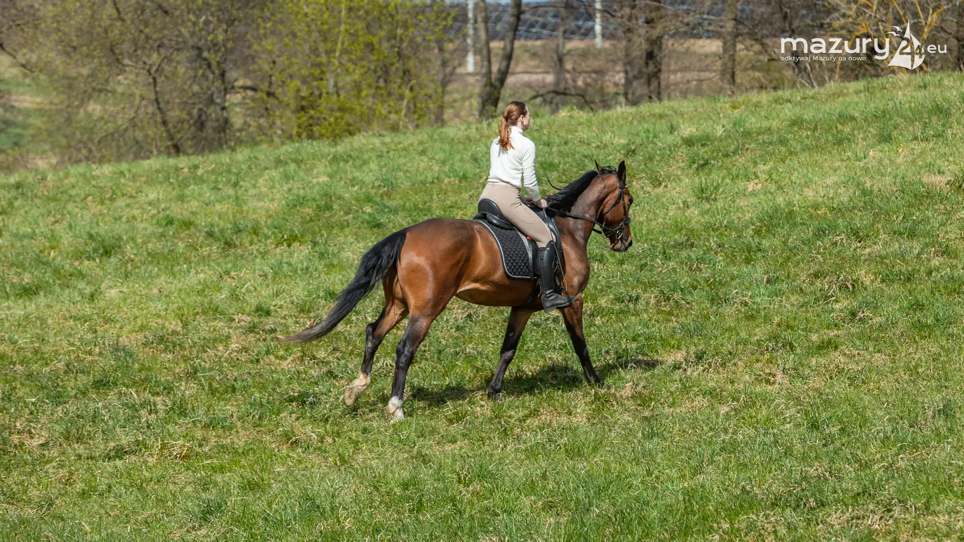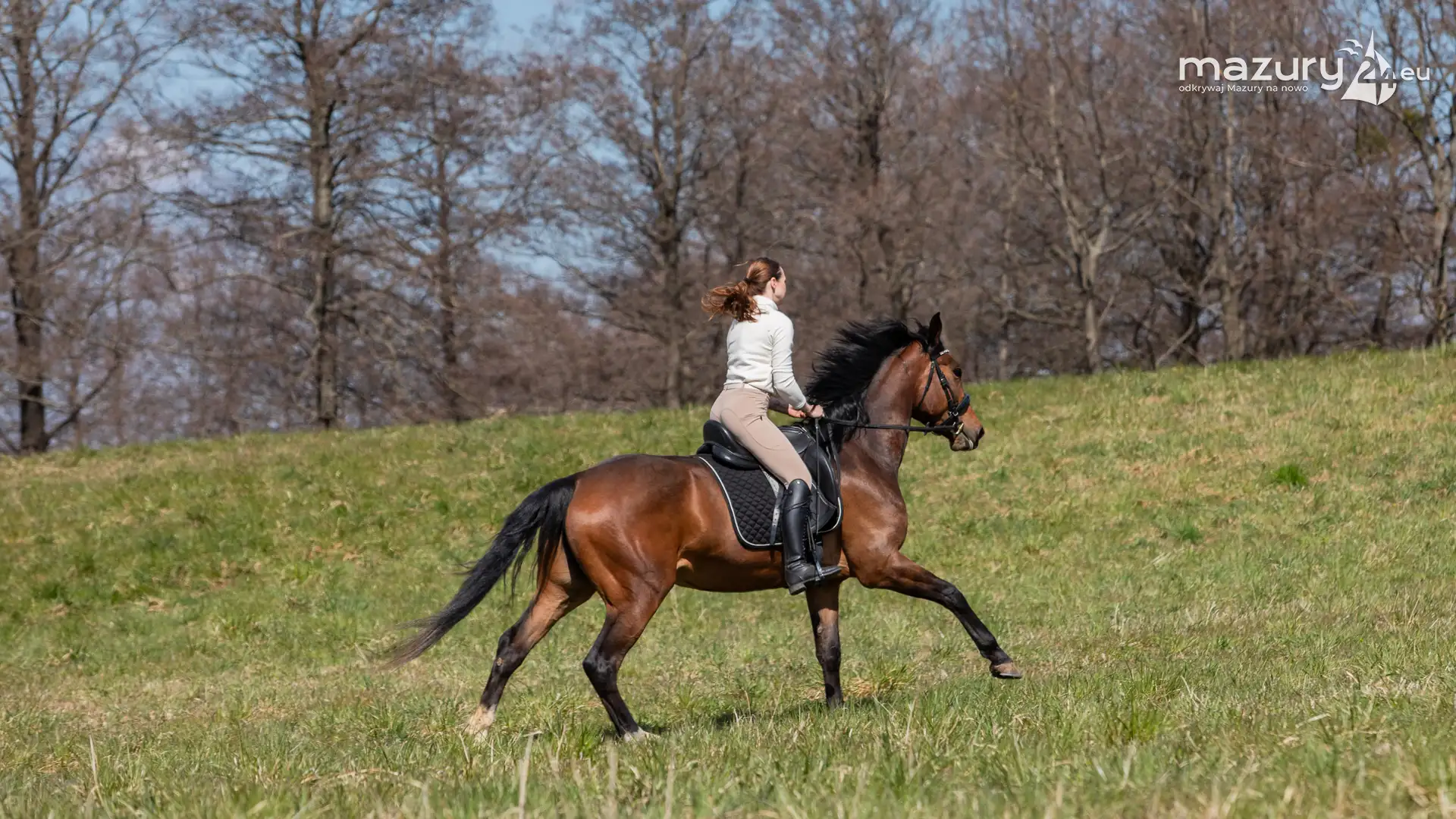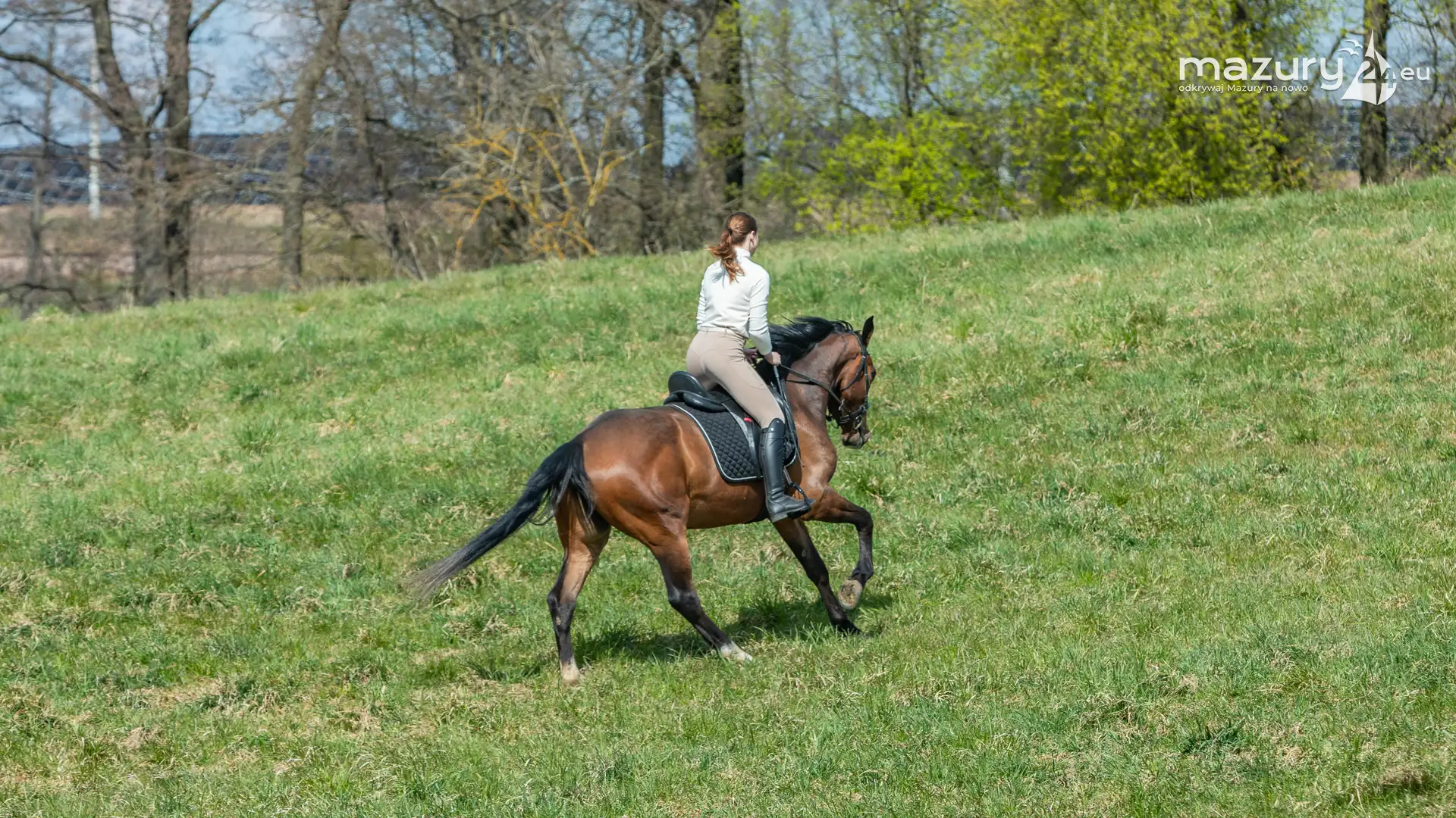 Jak się okazuje mazurskie łąki i pola to znakomite miejsca do spacerów... konno. Oczywiście nie każdy może sobie na to pozwolić, ale miłośnicy koni, zawsze znajdą sposób aby wejść w kłus lub galop na tle mazurskiej przyrody. Jednocześnie dajemy Wam kolejny przykład jak na Mazurach można spędzać wolny czas...