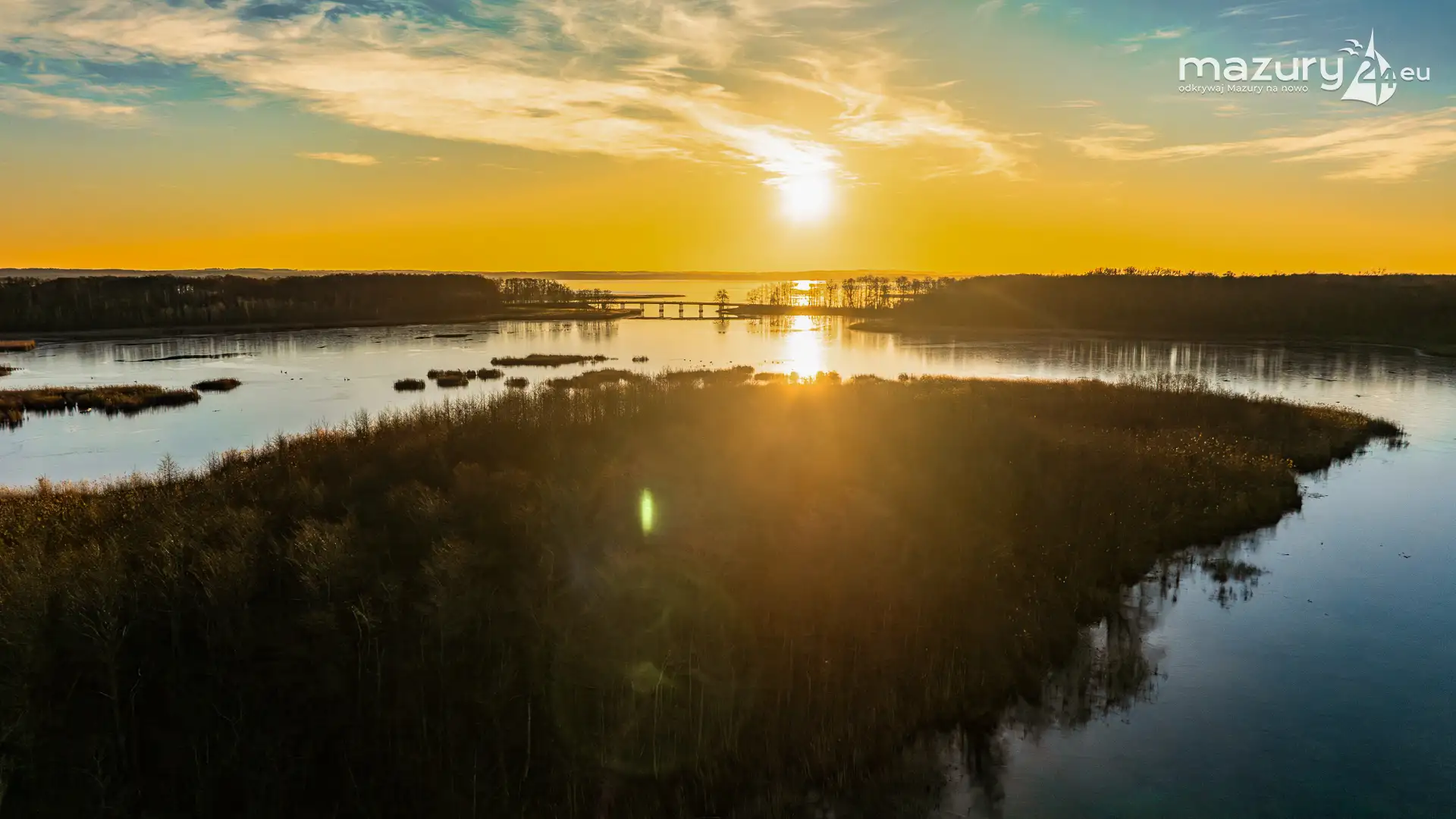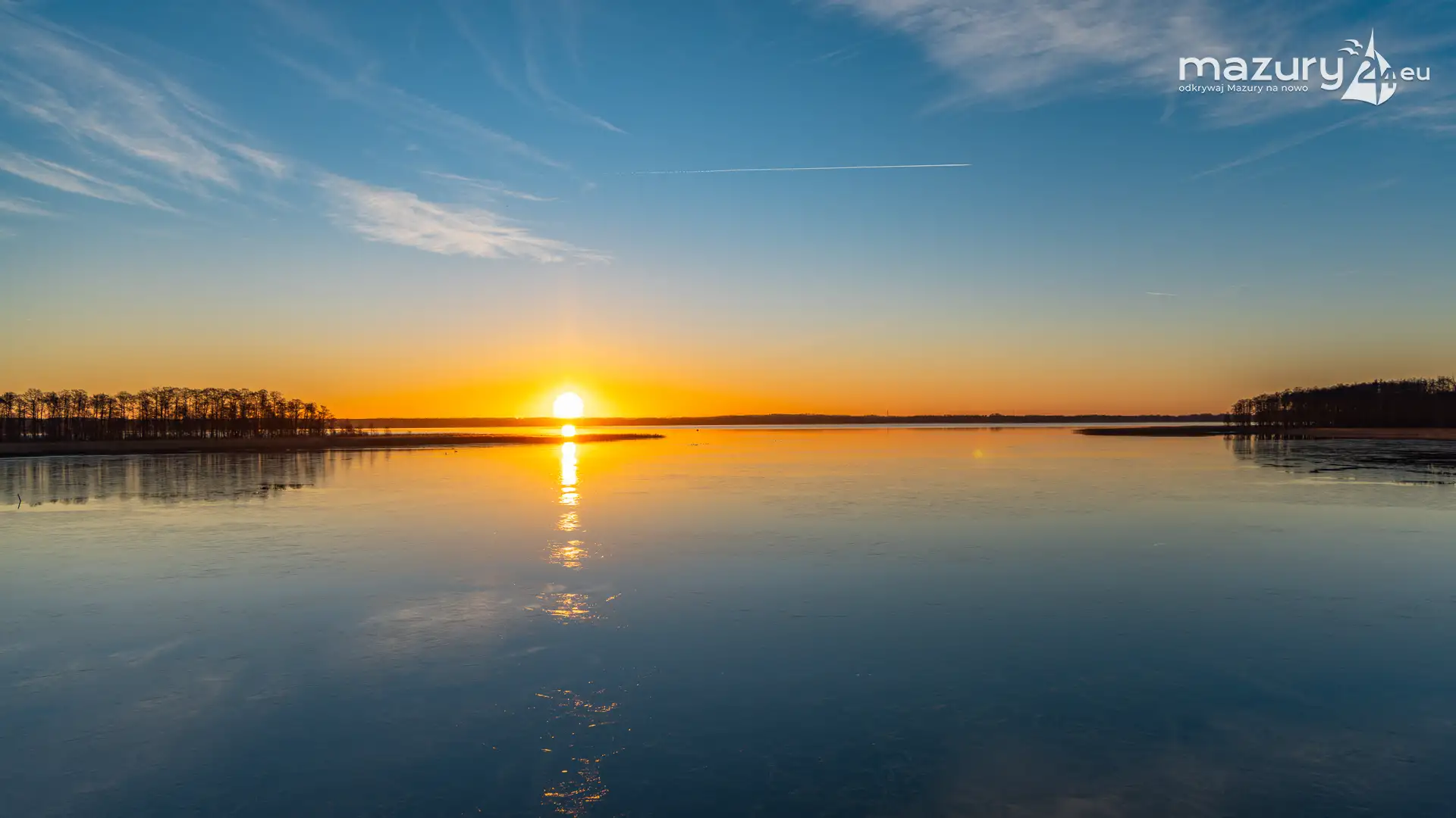 Zachód słońca nad jeziorem Dargin, port Dziki Harsz