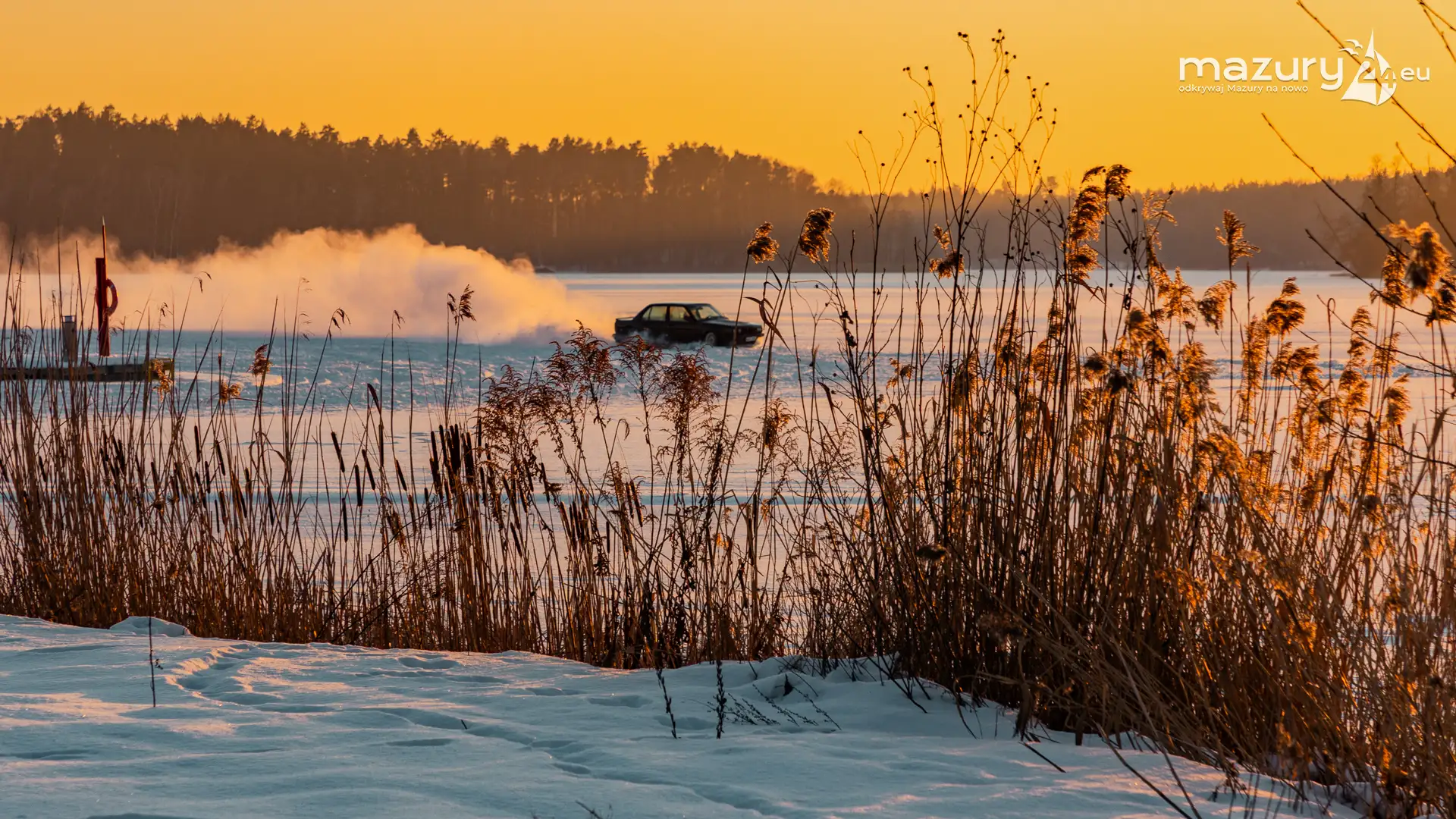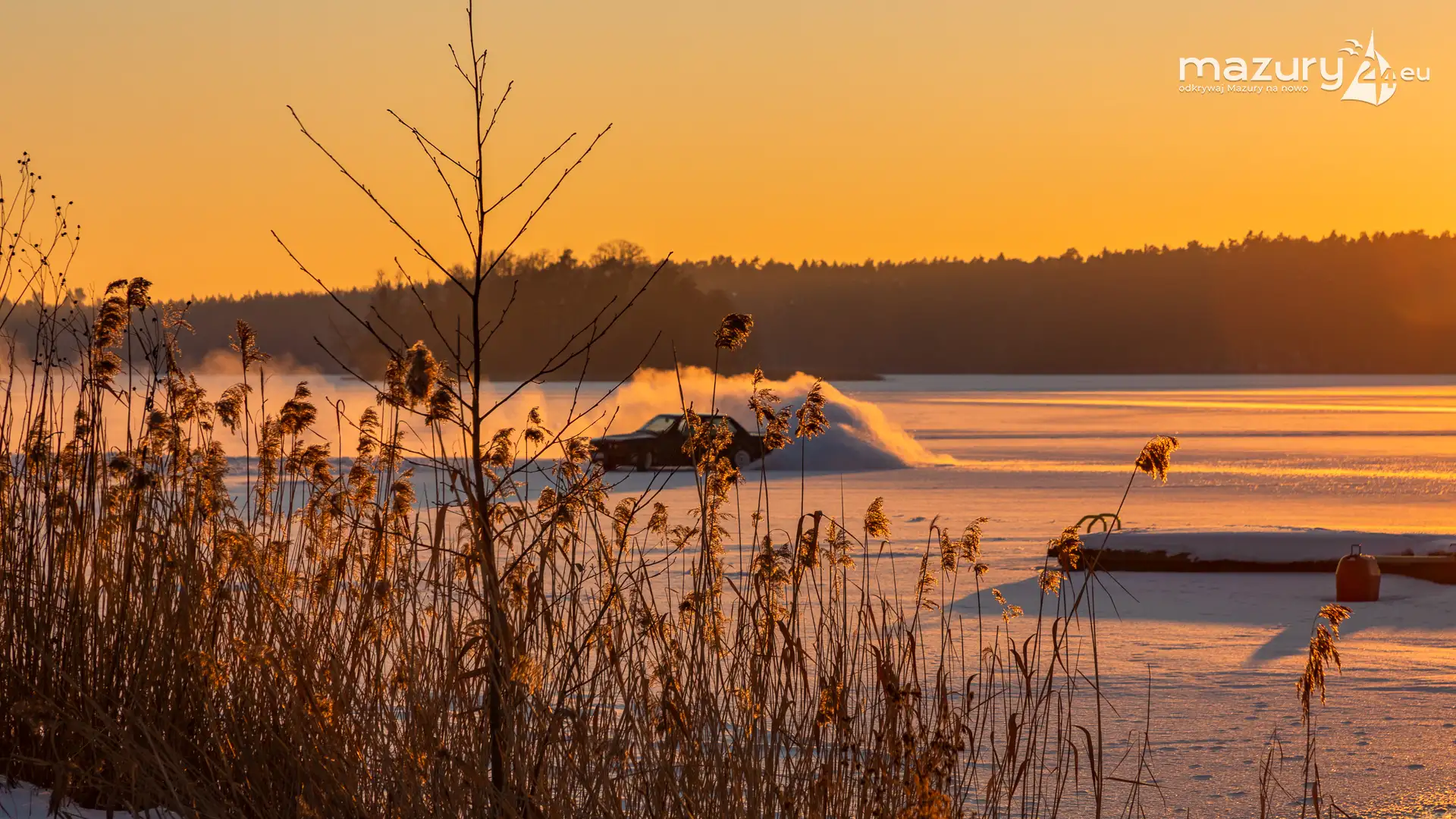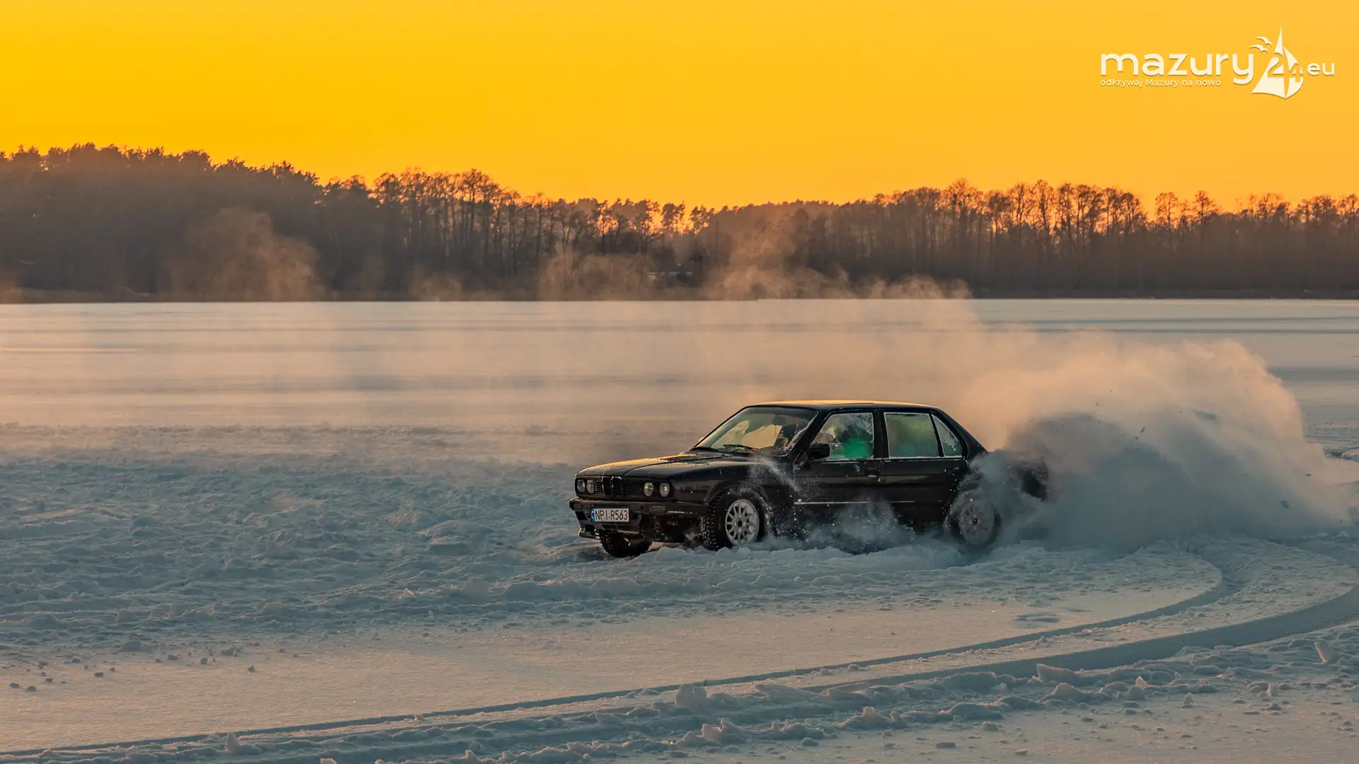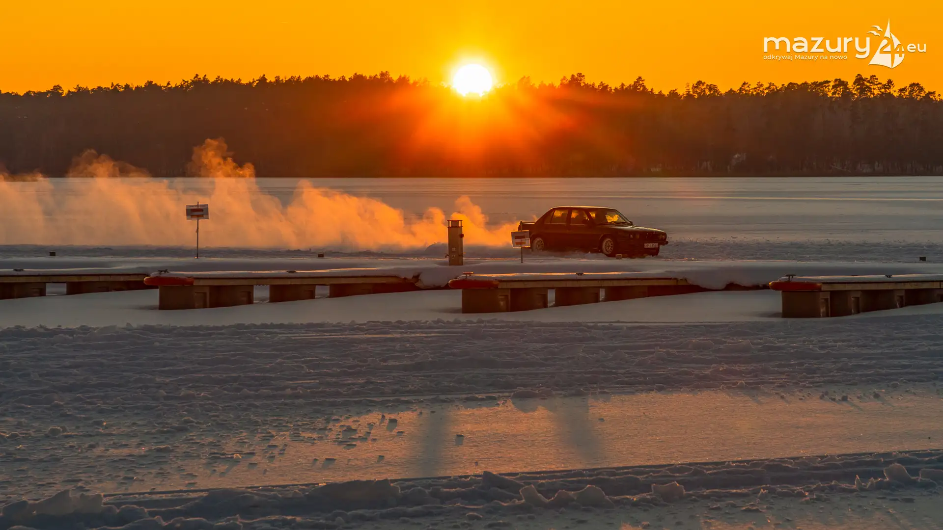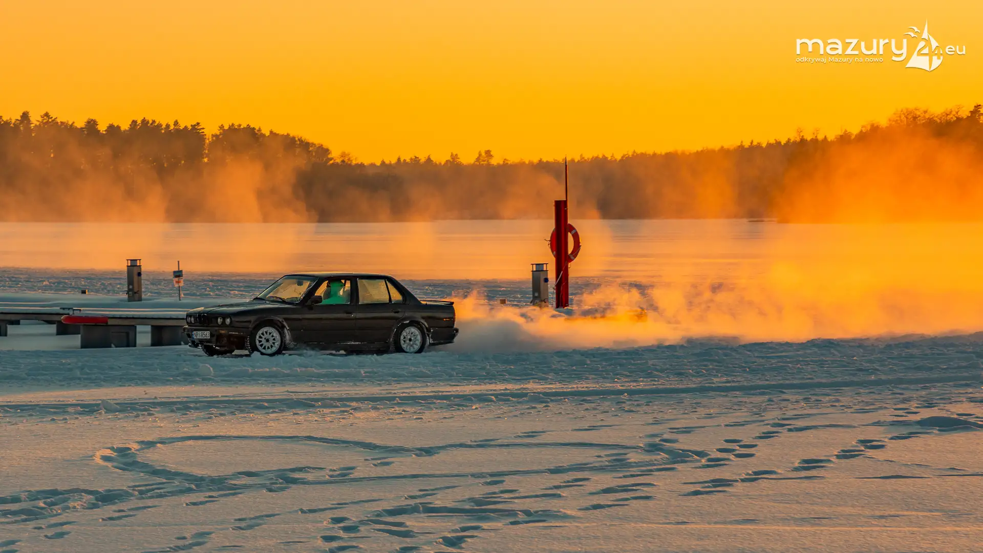 Dzisiejszy zachód słońca nad jeziorem Bełdany był wyjątkowo inny. Było bardzo zimno (-18 stopni C), słońce pięknie ułożyło się nad horyzontem, a w tle... obserwowaliśmy drifty samochodem... Zawsze zakładaliśmy, że mazurskie zachody obserwuje się z hotelowego pokoju, z plaży, z jachtu lub kajaka, ale z... rozpędzonego po lodzie i śniegu samochodu? No nic, sroga zima, jeziora skute lodem na 25-30 cm to nowe możliwości i perspektywy...