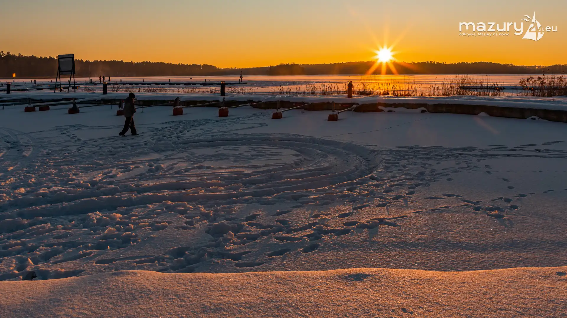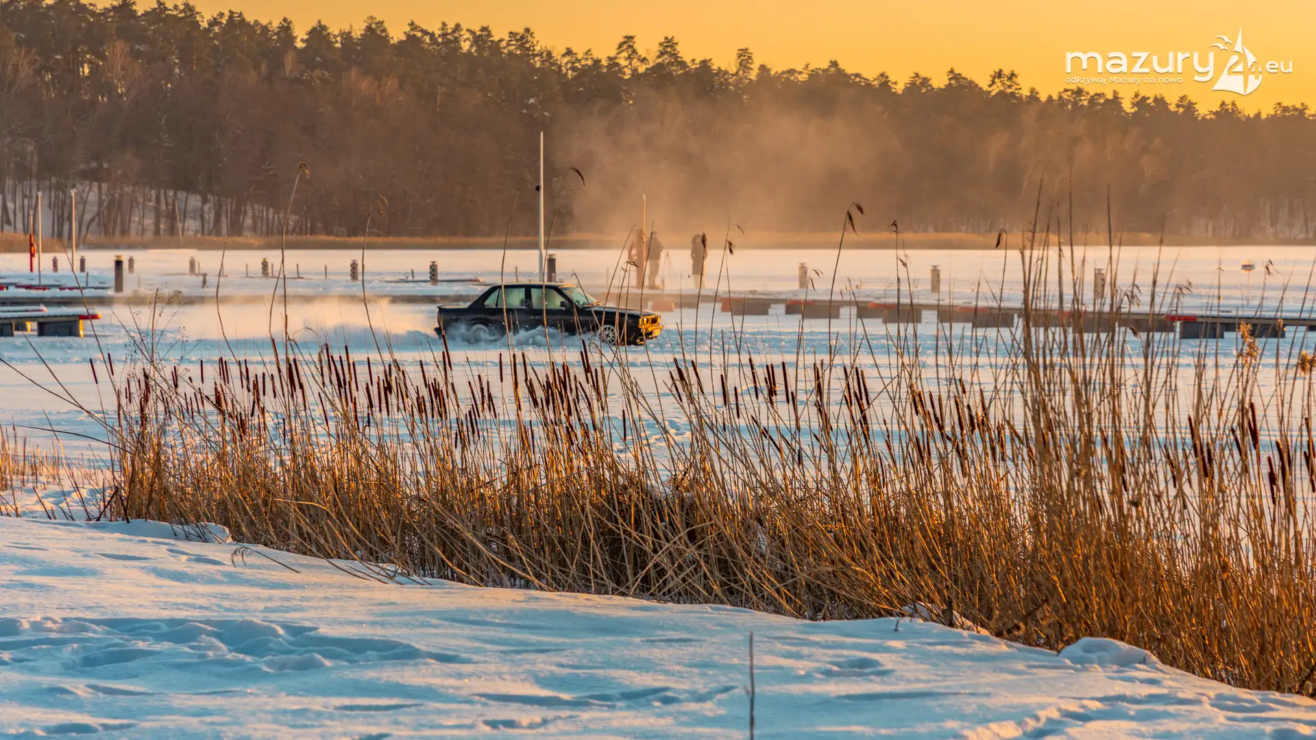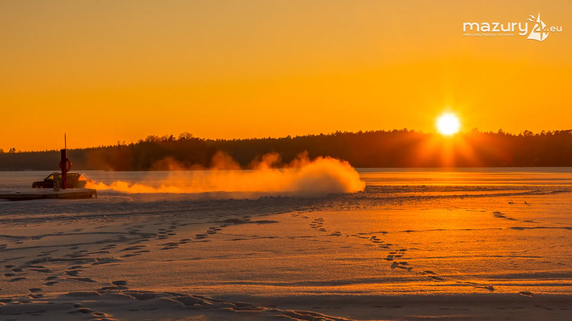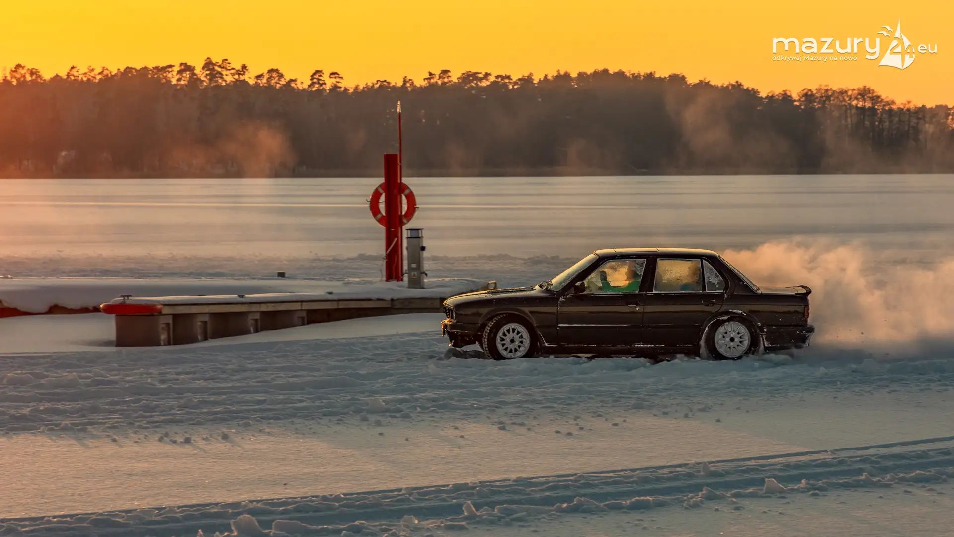 Dzisiejszy zachód słońca nad jeziorem Bełdany był wyjątkowo inny. Było bardzo zimno (-18 stopni C), słońce pięknie ułożyło się nad horyzontem, a w tle... obserwowaliśmy drifty samochodem... Zawsze zakładaliśmy, że mazurskie zachody obserwuje się z hotelowego pokoju, z plaży, z jachtu lub kajaka, ale z... rozpędzonego po lodzie i śniegu samochodu? No nic, sroga zima, jeziora skute lodem na 25-30 cm to nowe możliwości i perspektywy...