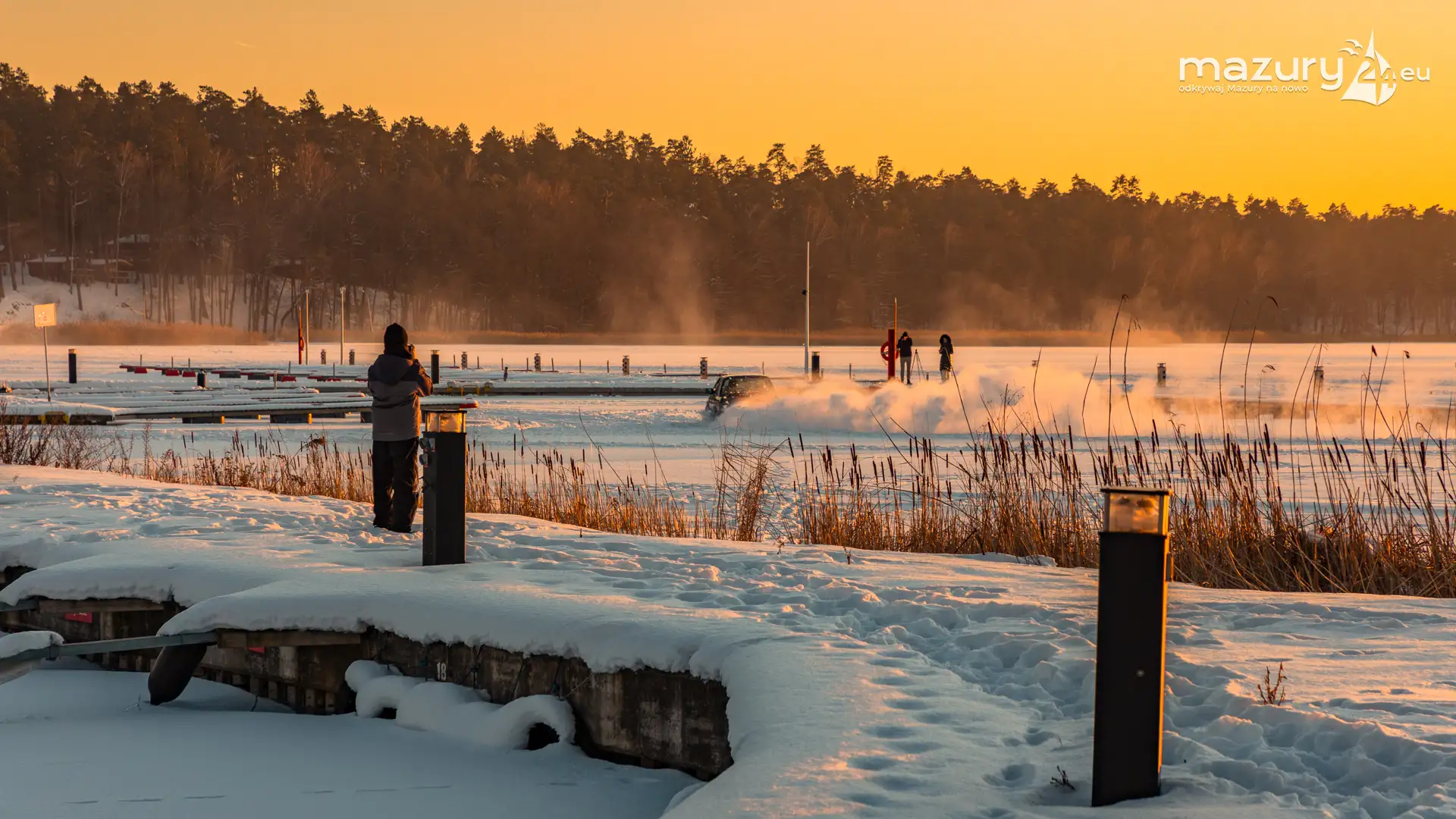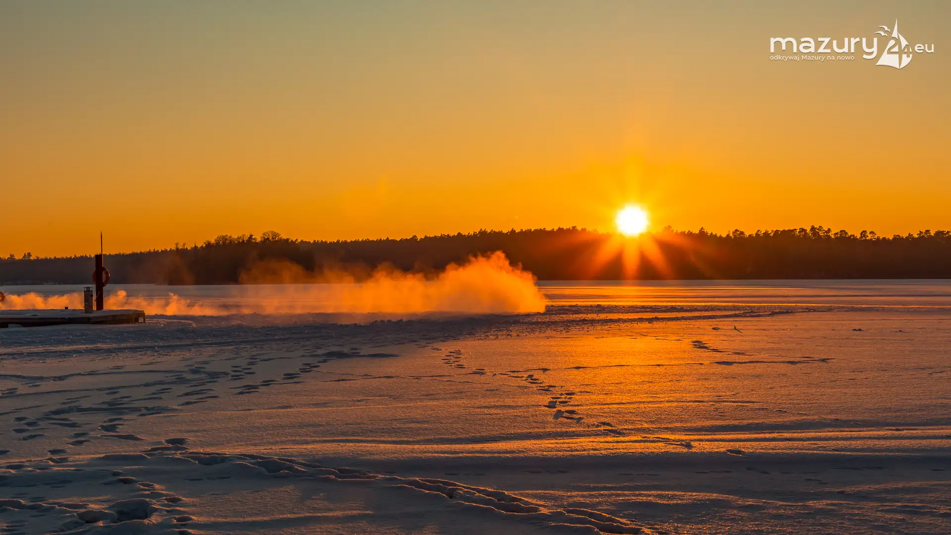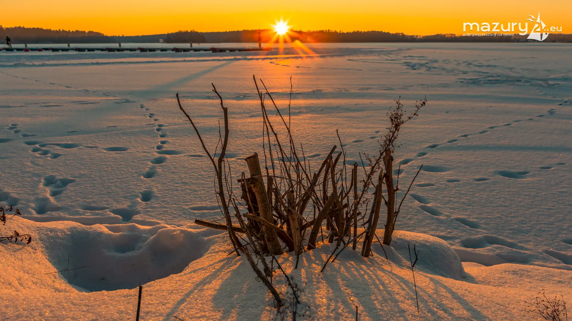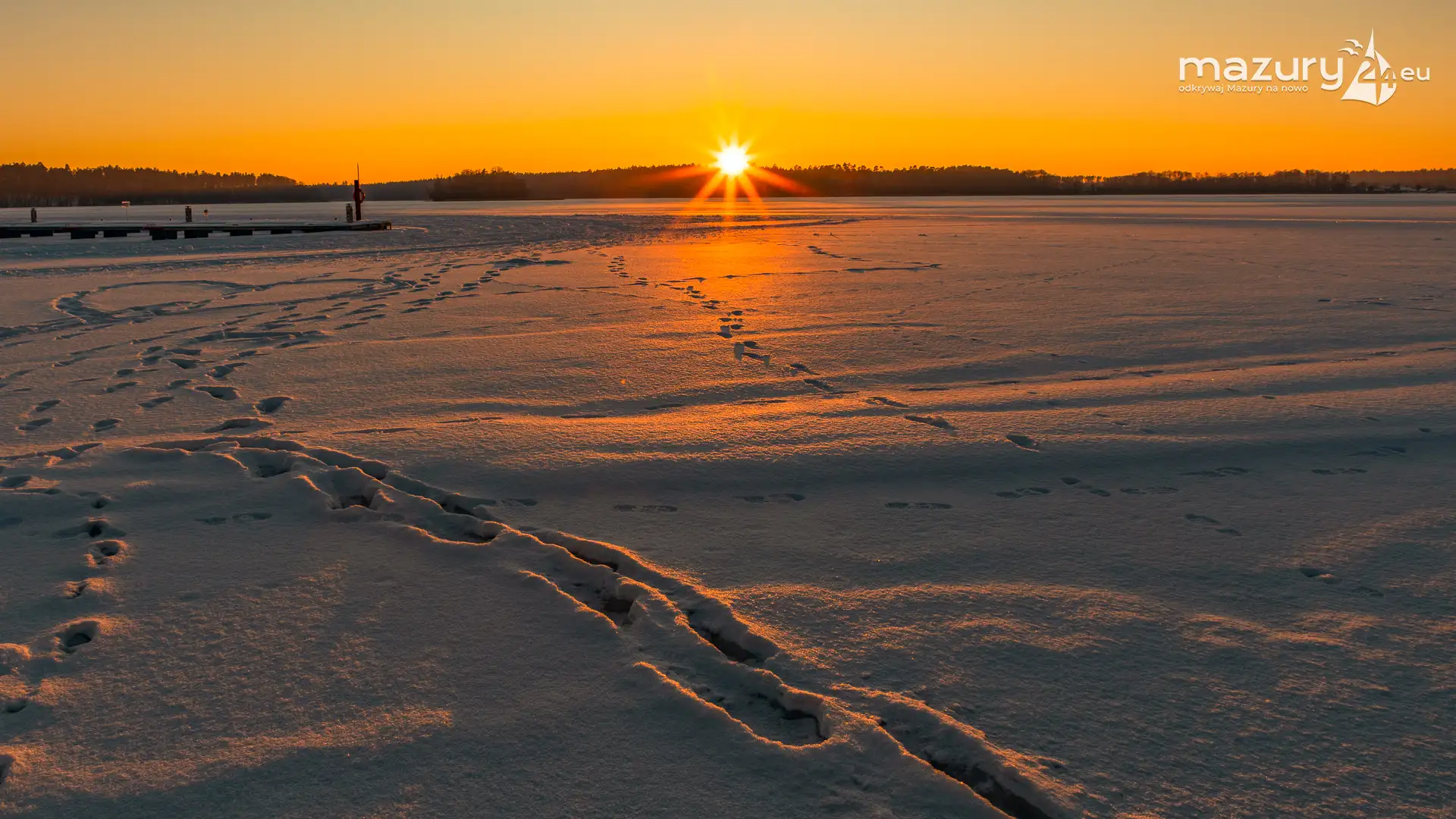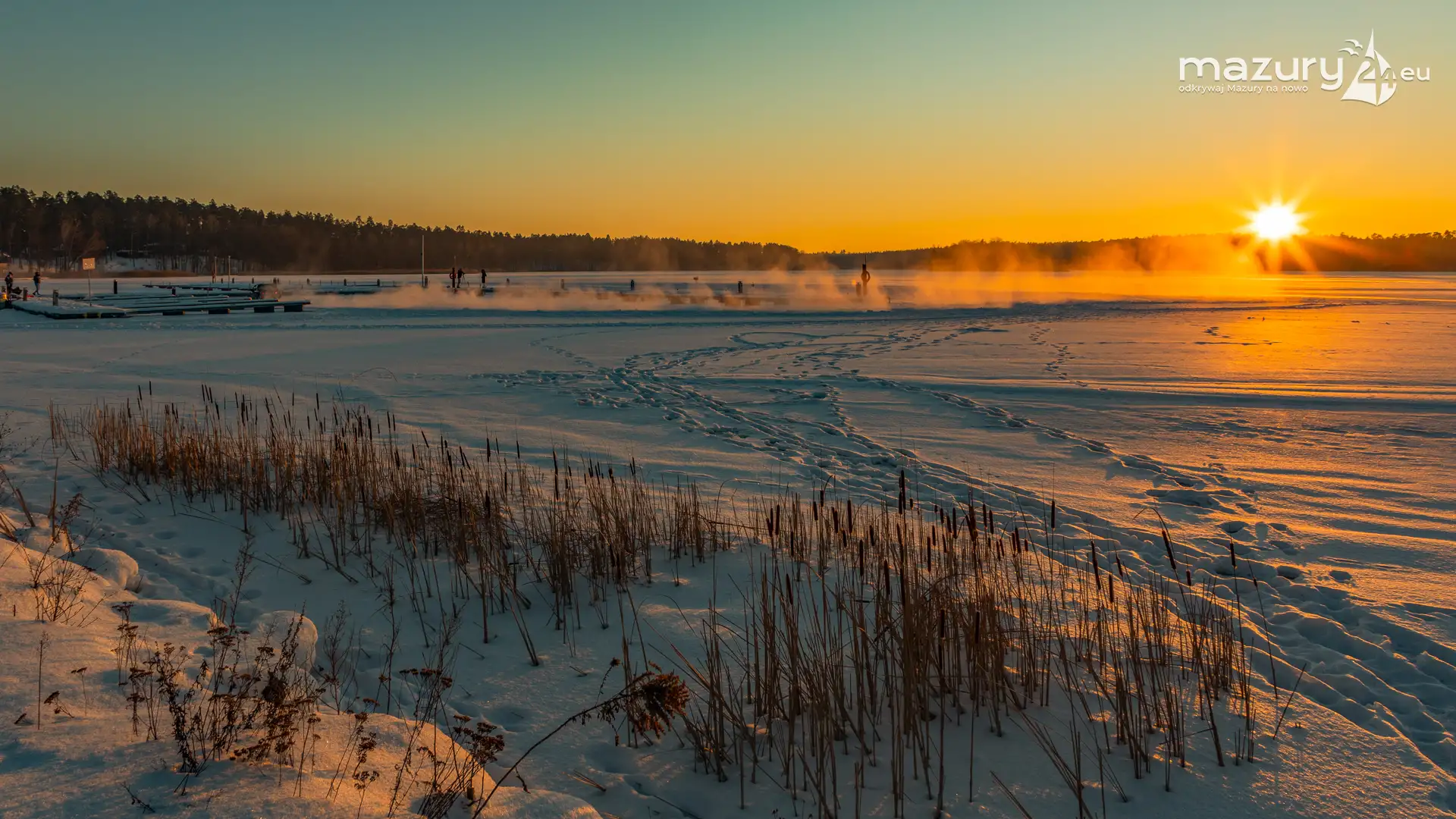 Dzisiejszy zachód słońca nad jeziorem Bełdany był wyjątkowo inny. Było bardzo zimno (-18 stopni C), słońce pięknie ułożyło się nad horyzontem, a w tle... obserwowaliśmy drifty samochodem... Zawsze zakładaliśmy, że mazurskie zachody obserwuje się z hotelowego pokoju, z plaży, z jachtu lub kajaka, ale z... rozpędzonego po lodzie i śniegu samochodu? No nic, sroga zima, jeziora skute lodem na 25-30 cm to nowe możliwości i perspektywy...