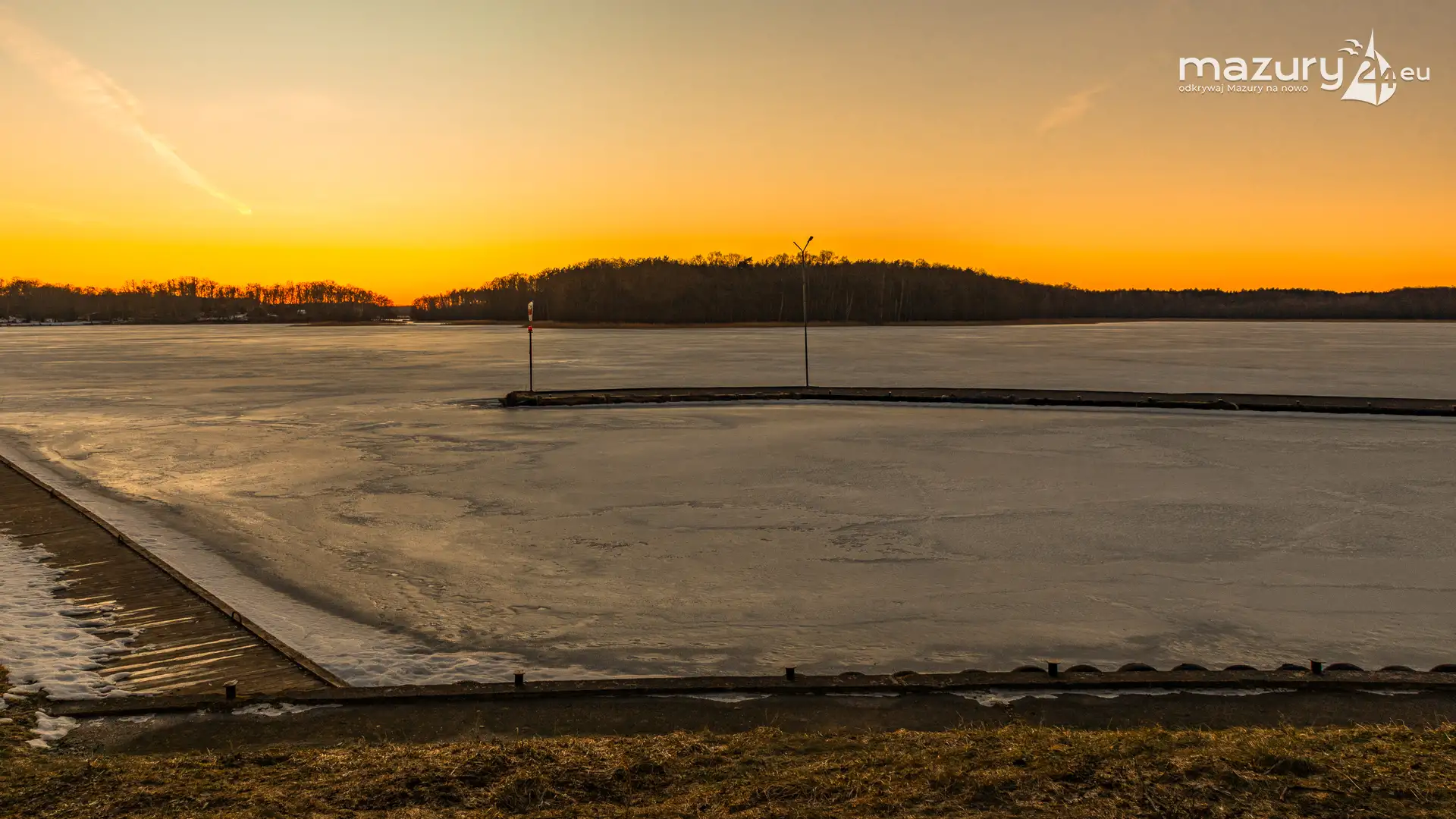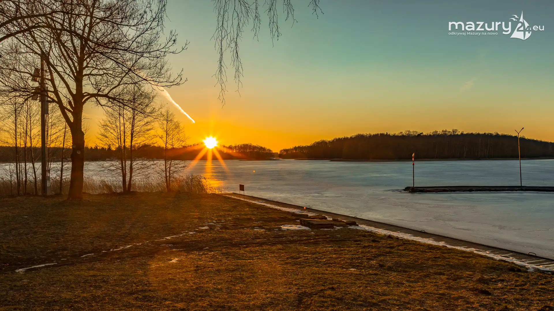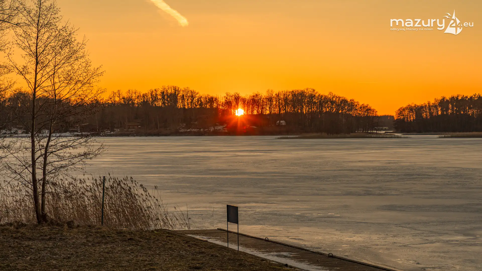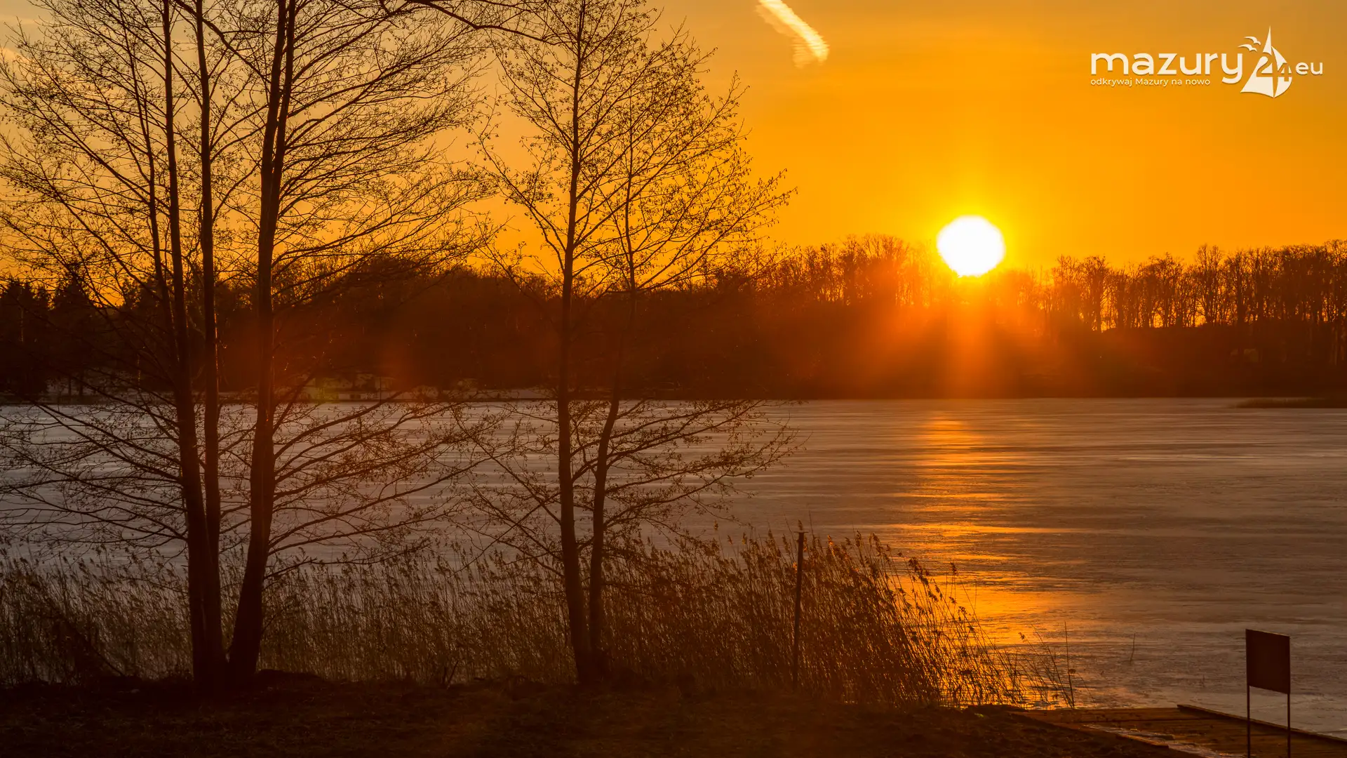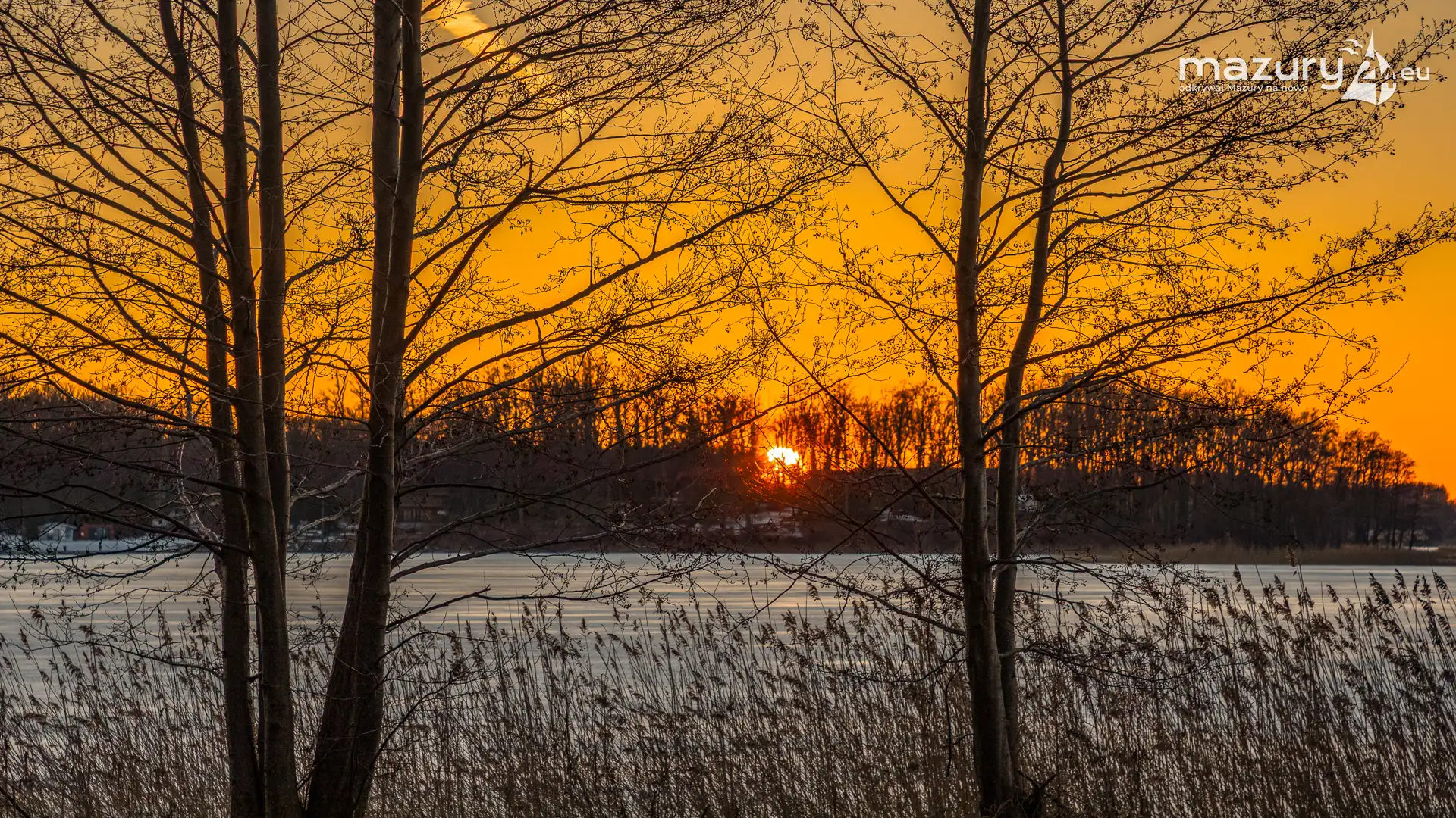Zachód słońca nad jeziorem Mamry, port Rybaczówka Kal, marzec 2026 r.