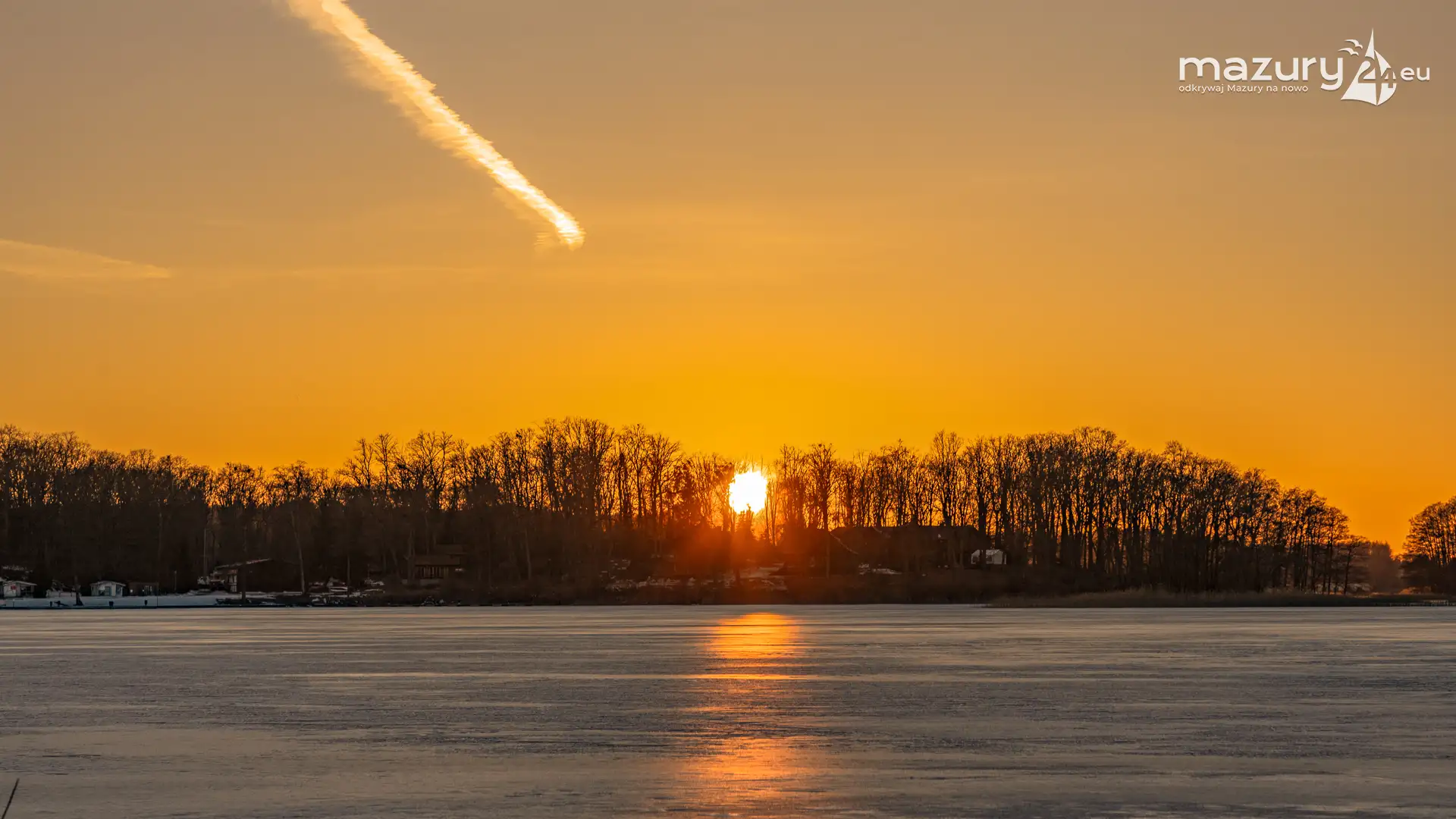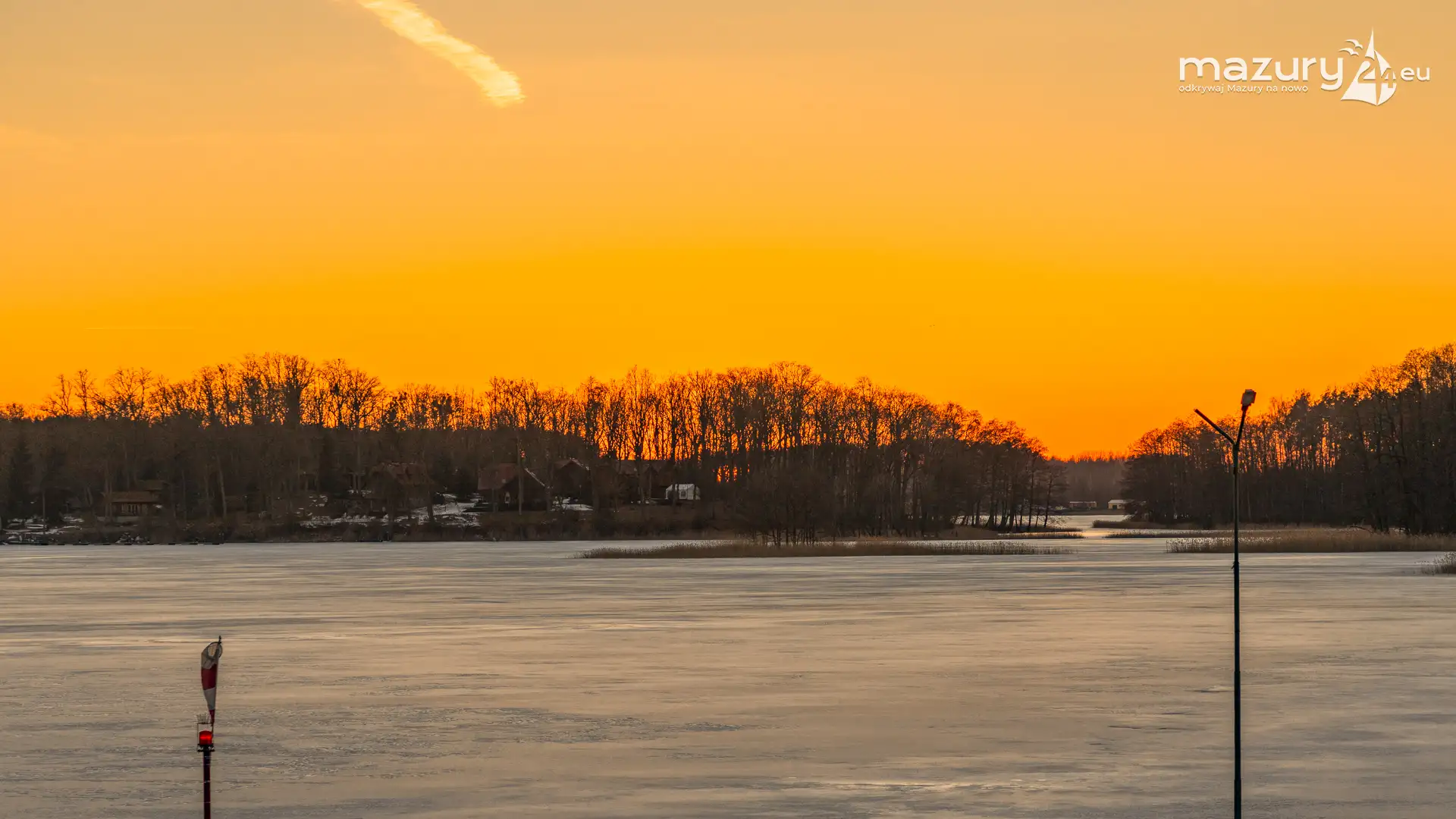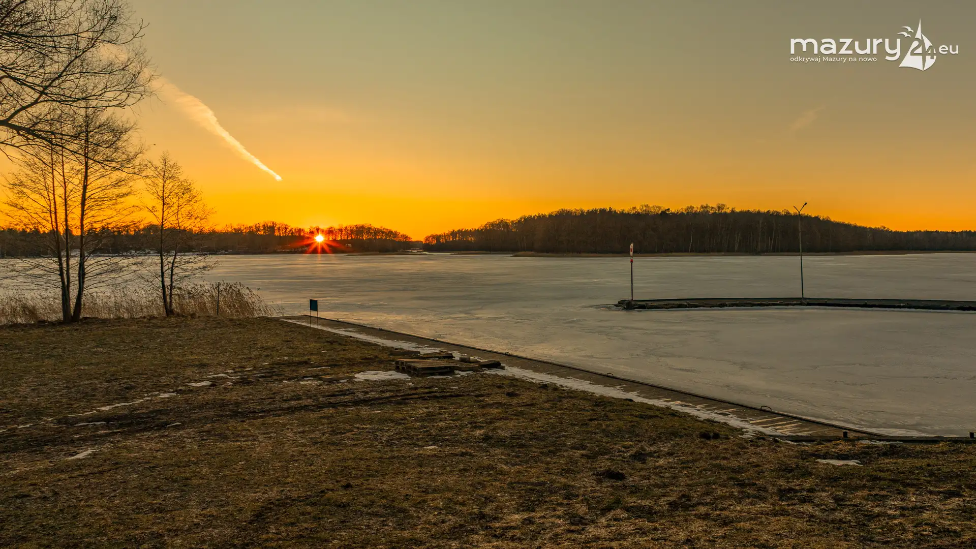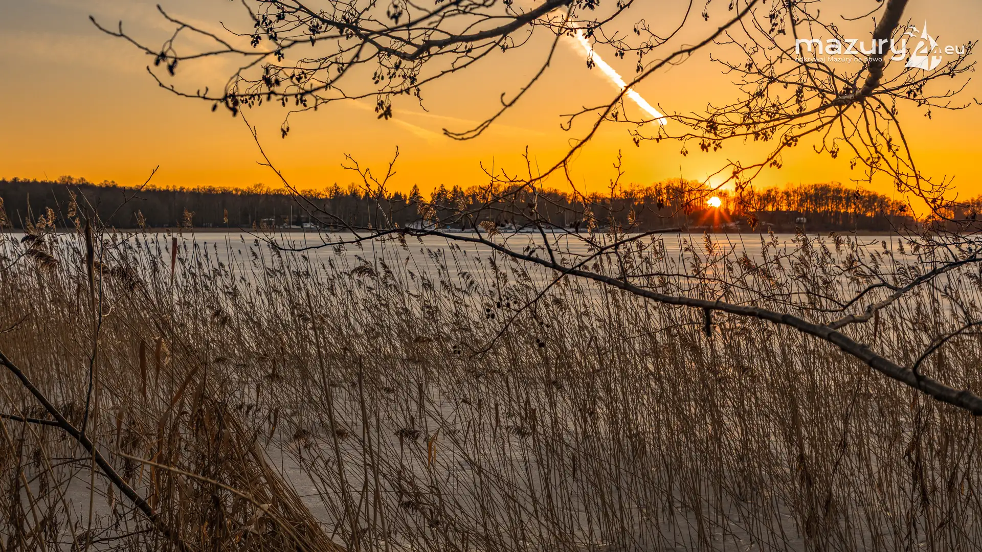 Zachód słońca nad jeziorem Mamry, port Rybaczówka Kal, marzec 2026 r.