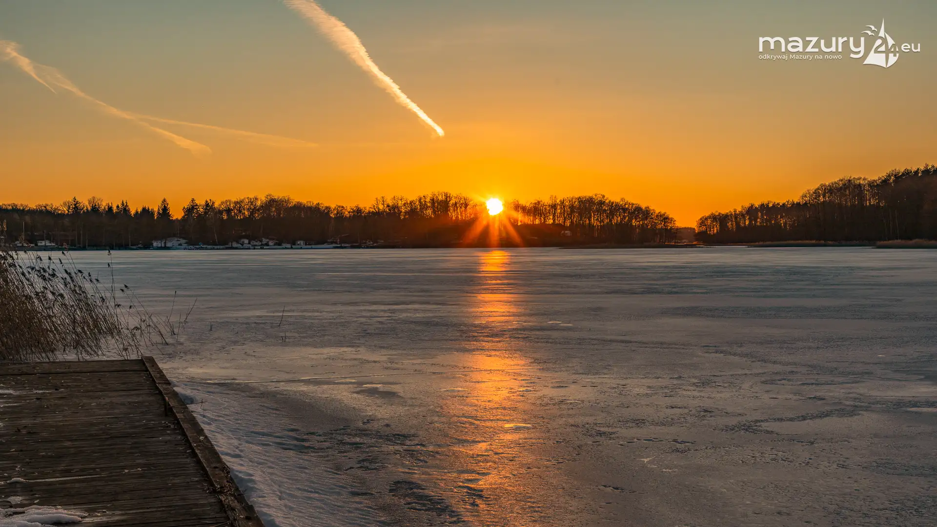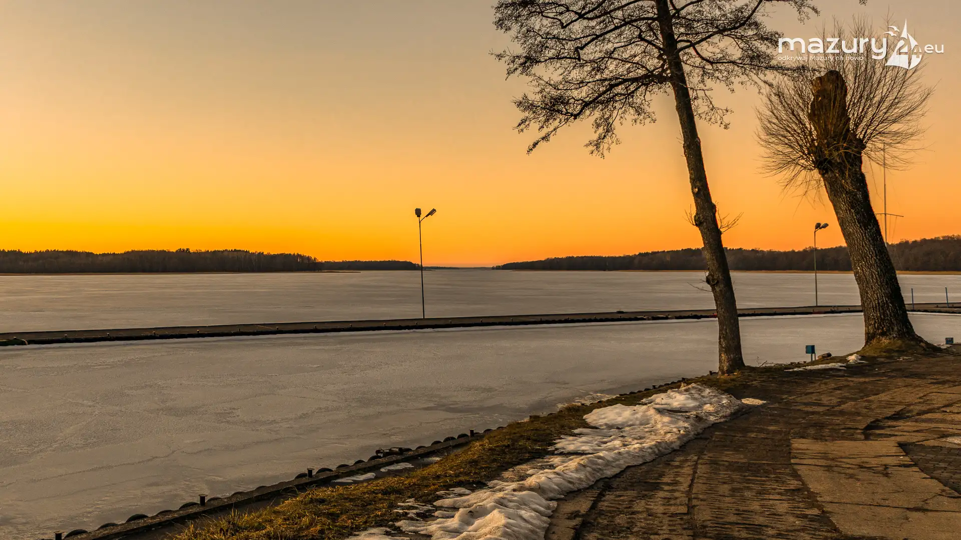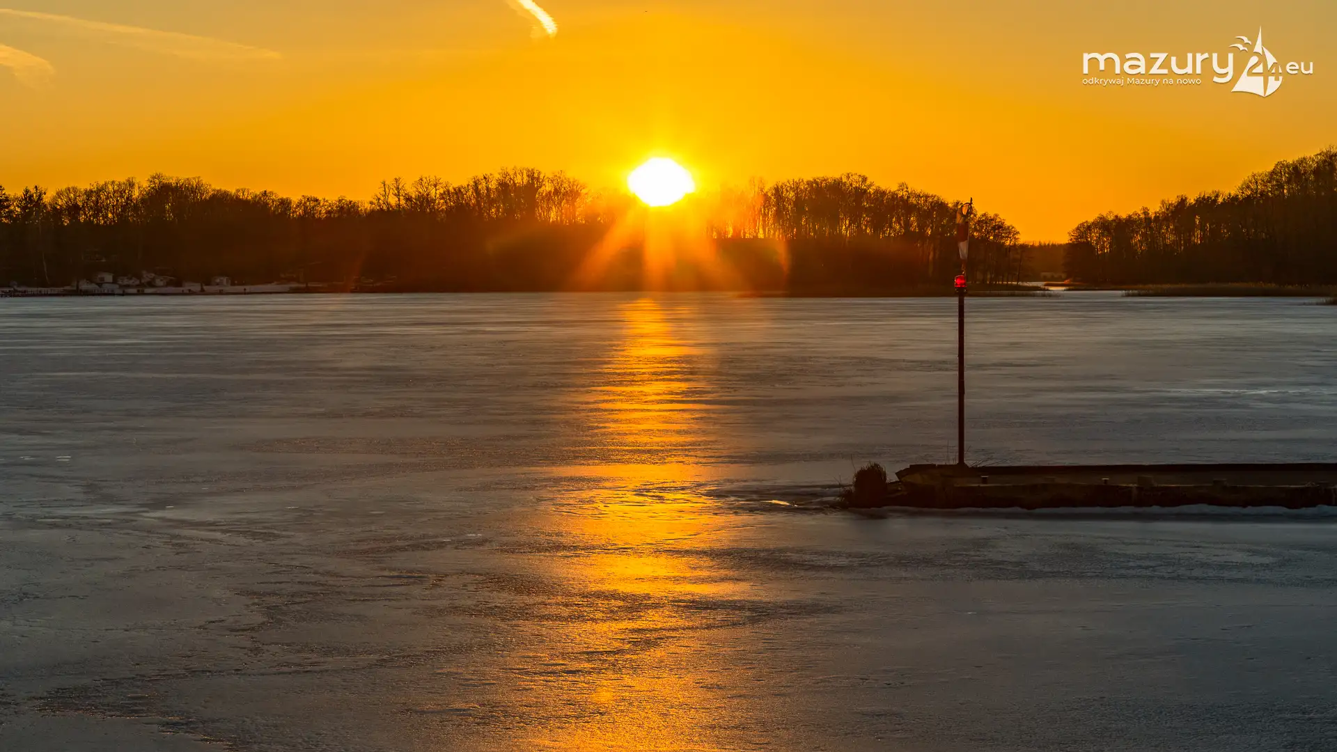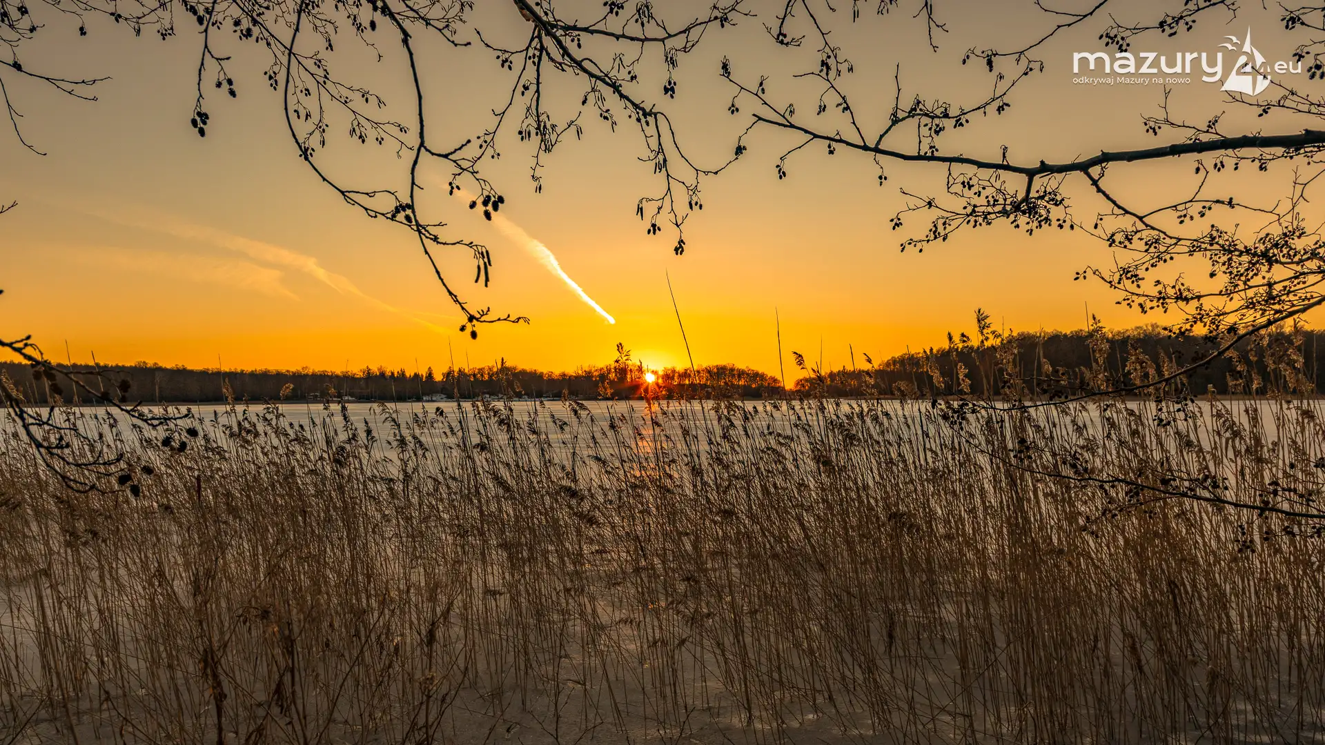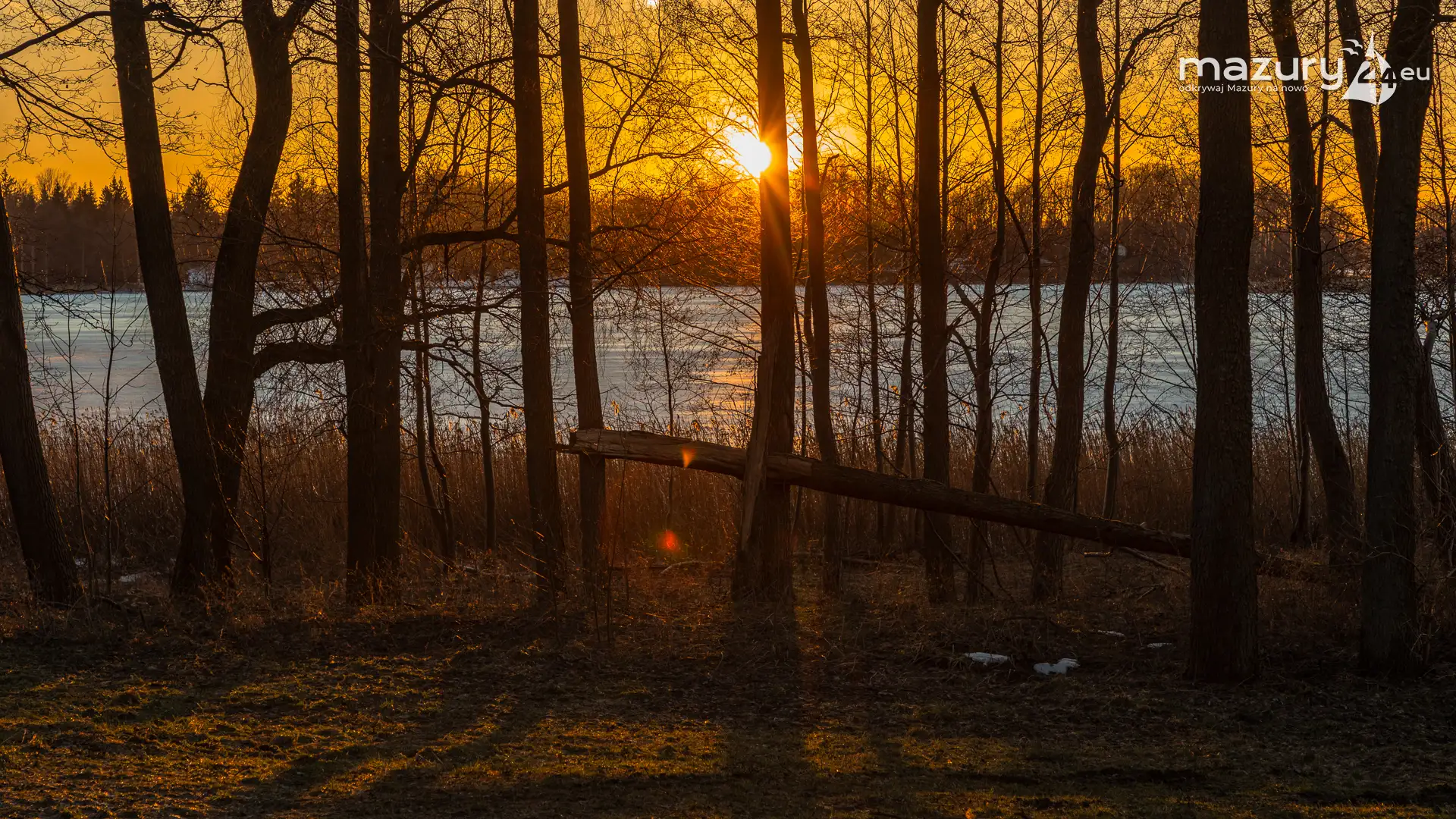 Zachód słońca nad jeziorem Mamry, port Rybaczówka Kal, marzec 2026 r.
