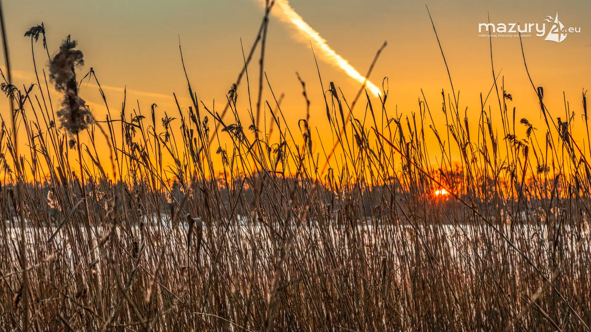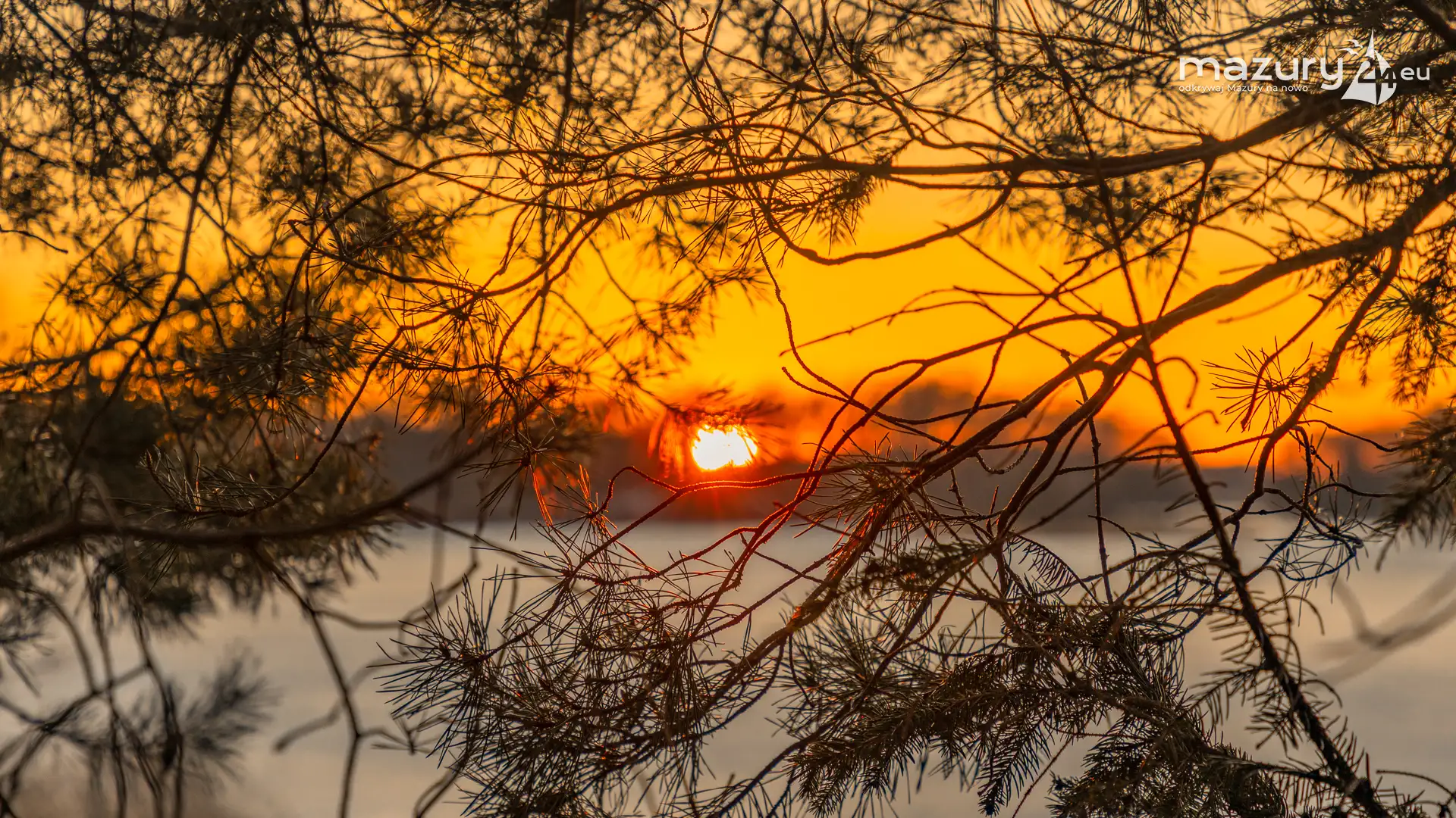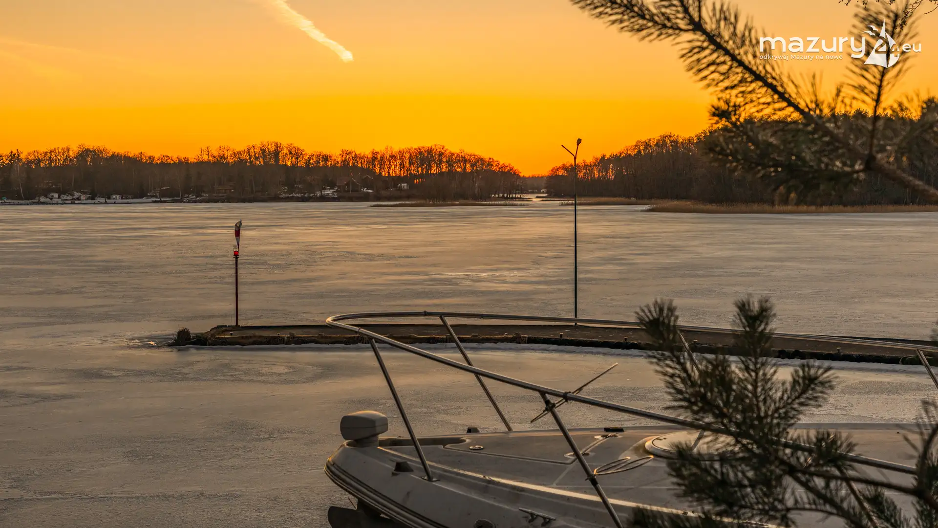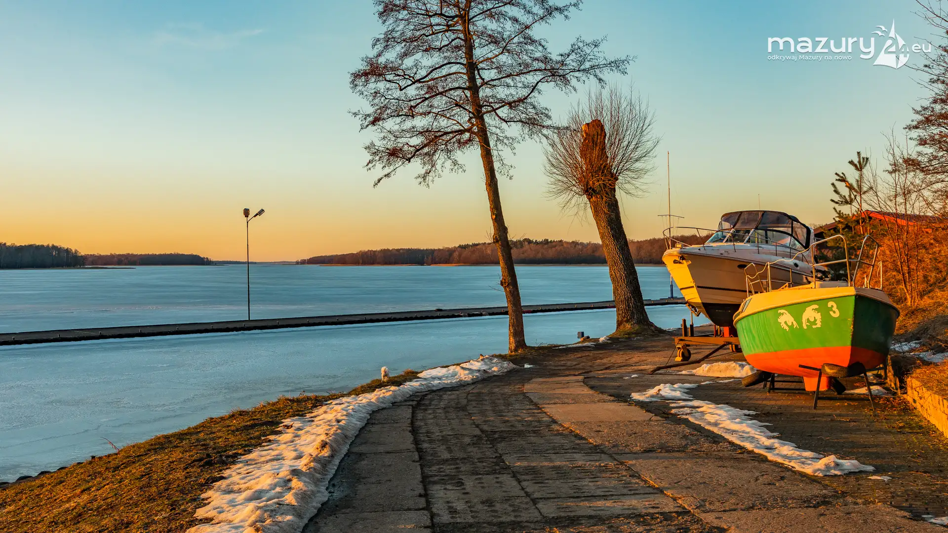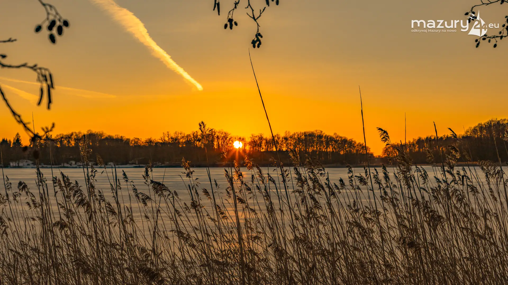 Zachód słońca nad jeziorem Mamry, port Rybaczówka Kal, marzec 2026 r.
