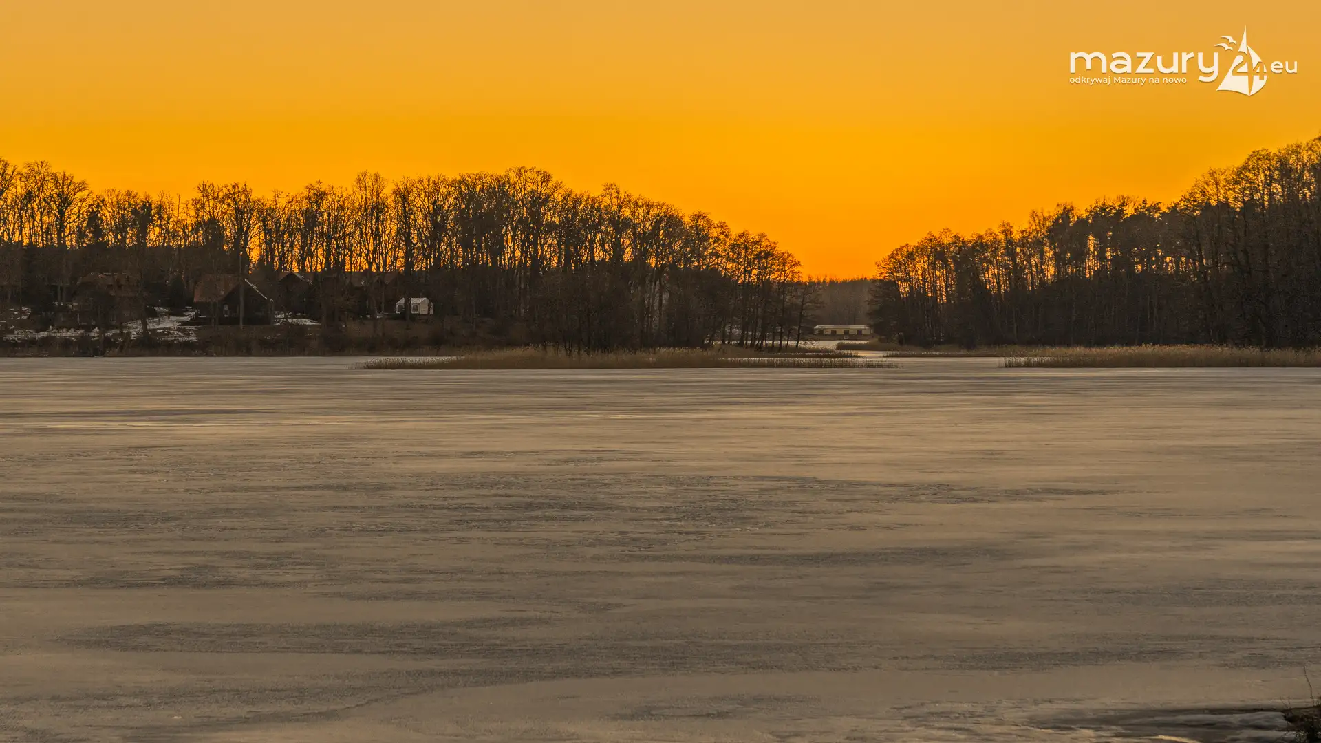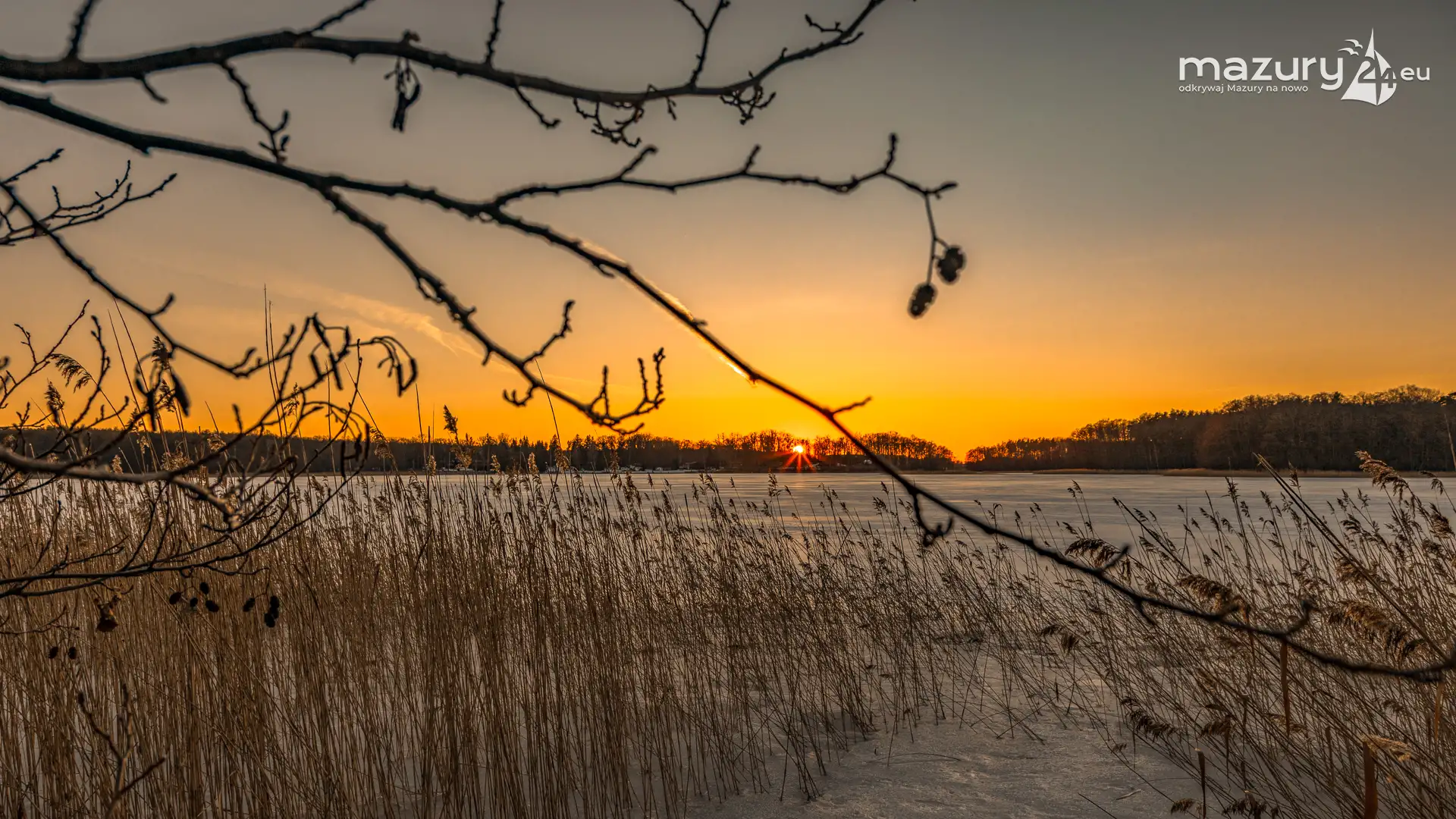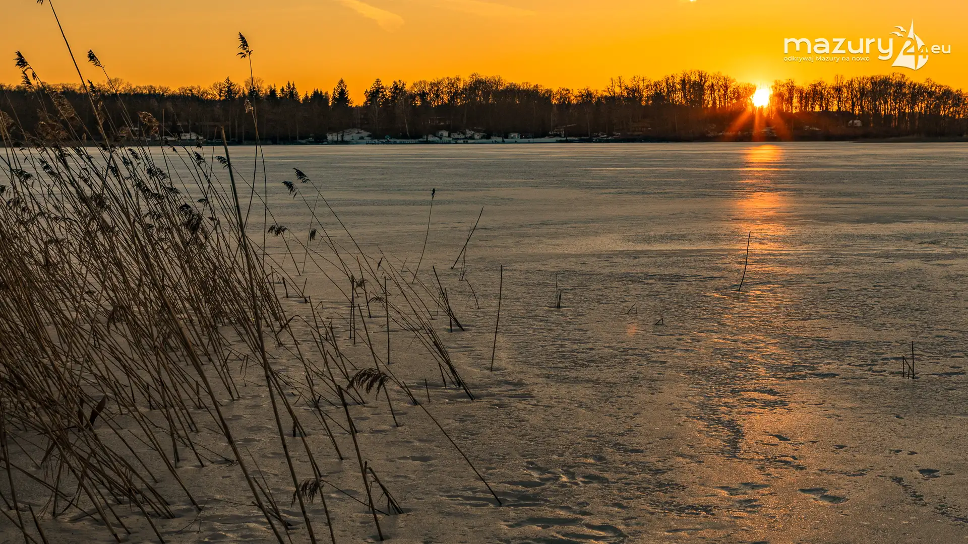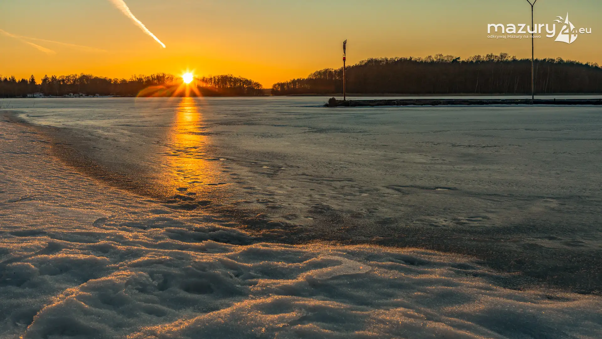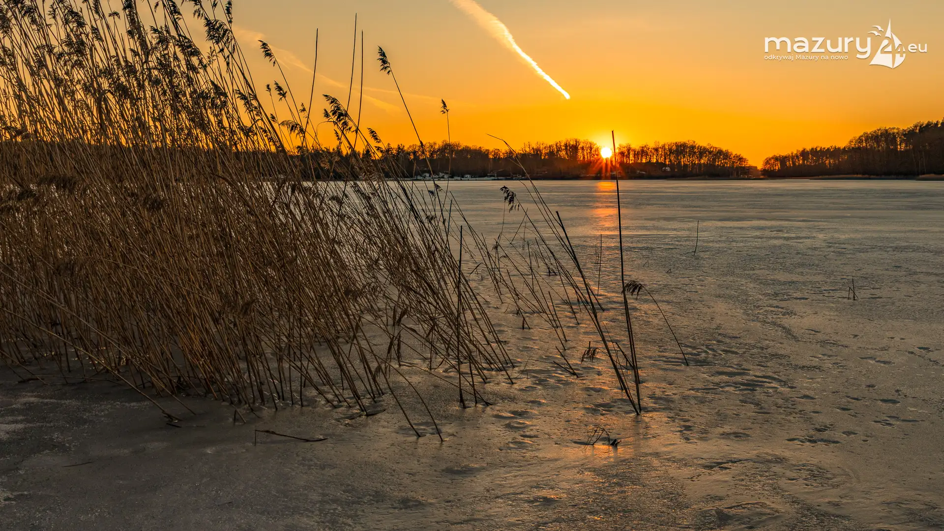 Po ostatnich dniach z wyższą temperaturą, śniegu już praktycznie nie ma. Lód na mazurskich jeziorach ma się dobrze i pewnie za 2 tygodnie przywita z nami wiosnę. Grubość pokrywy lodowej wacha się w zależności od miejsc od 30 do 50 cm. W dzisiejszym zachodzie czuć już było wiosnę, chociaż od zamrożonego jeziora bił wyjątkowy chłód... Zobaczcie jak było na wschodnim brzegu jeziora Kisajno w dawnym Almaturze...
