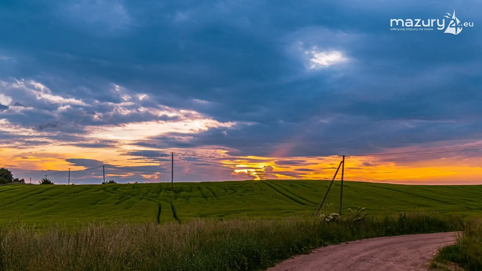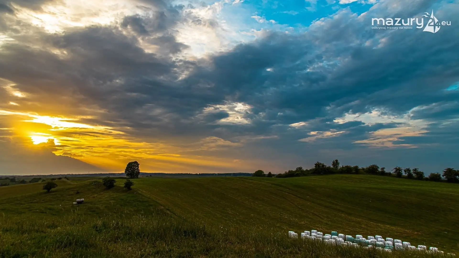 Kolejny zachód, taki normalny mazurski widok, gdzieś z jeziorami w oddali. Ostatnie burzowe chmury i walczące o przenikanie słońce funduje nam takie właśnie widoki. Wykonano w drodze do Upałt Małych.