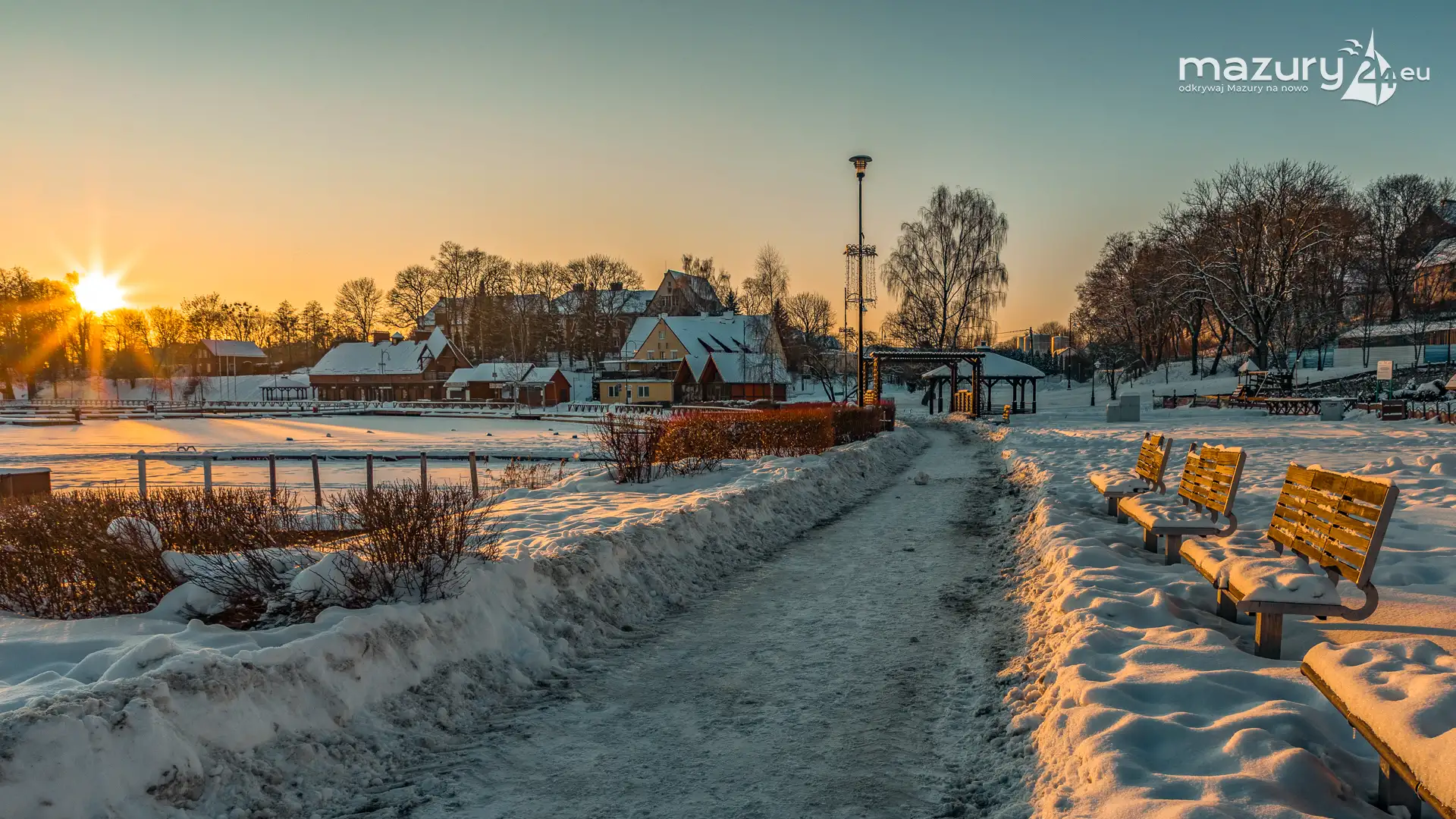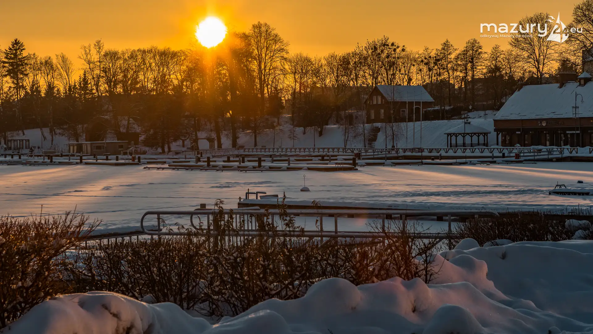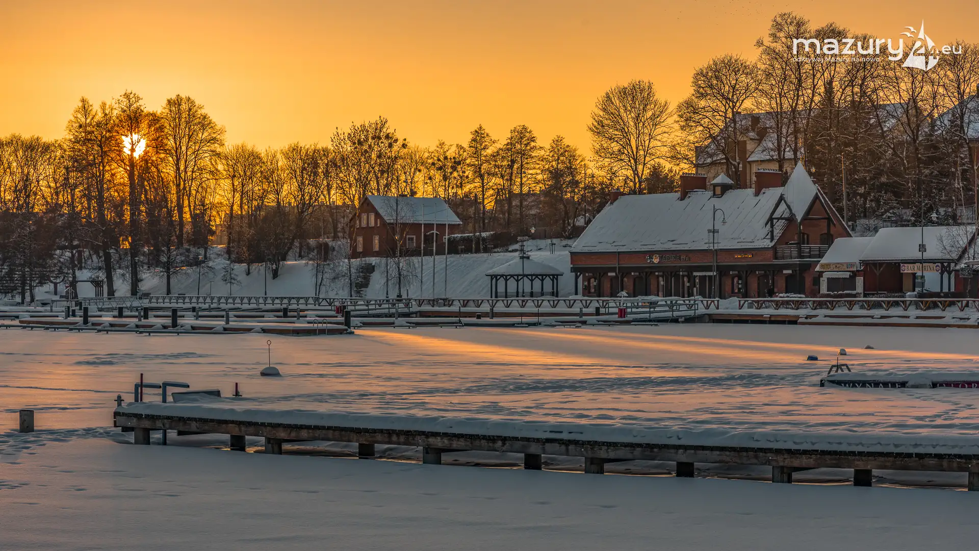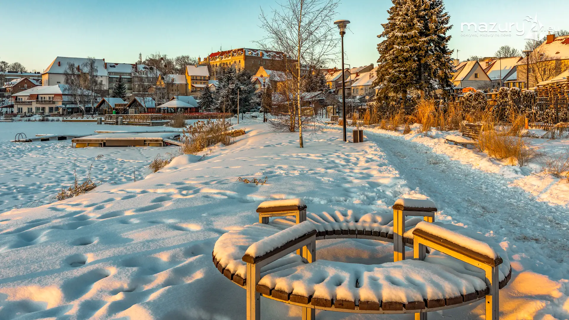 Dzisiejszą foto przygodę z Mazurami zakończyliśmy w Rynie nad jeziorem Ryńskim. Pięknie się nam słońce ułożyło na horyzoncie oświetlając zabudowę miasta i porty leżące na północnym i zachodnim brzegu jeziora. Wkrótce popularny deptak zacznie tętnić życiem, wrócą żeglarze i turyści, a białe kolory zastąpi świeża, nowa zieleń...