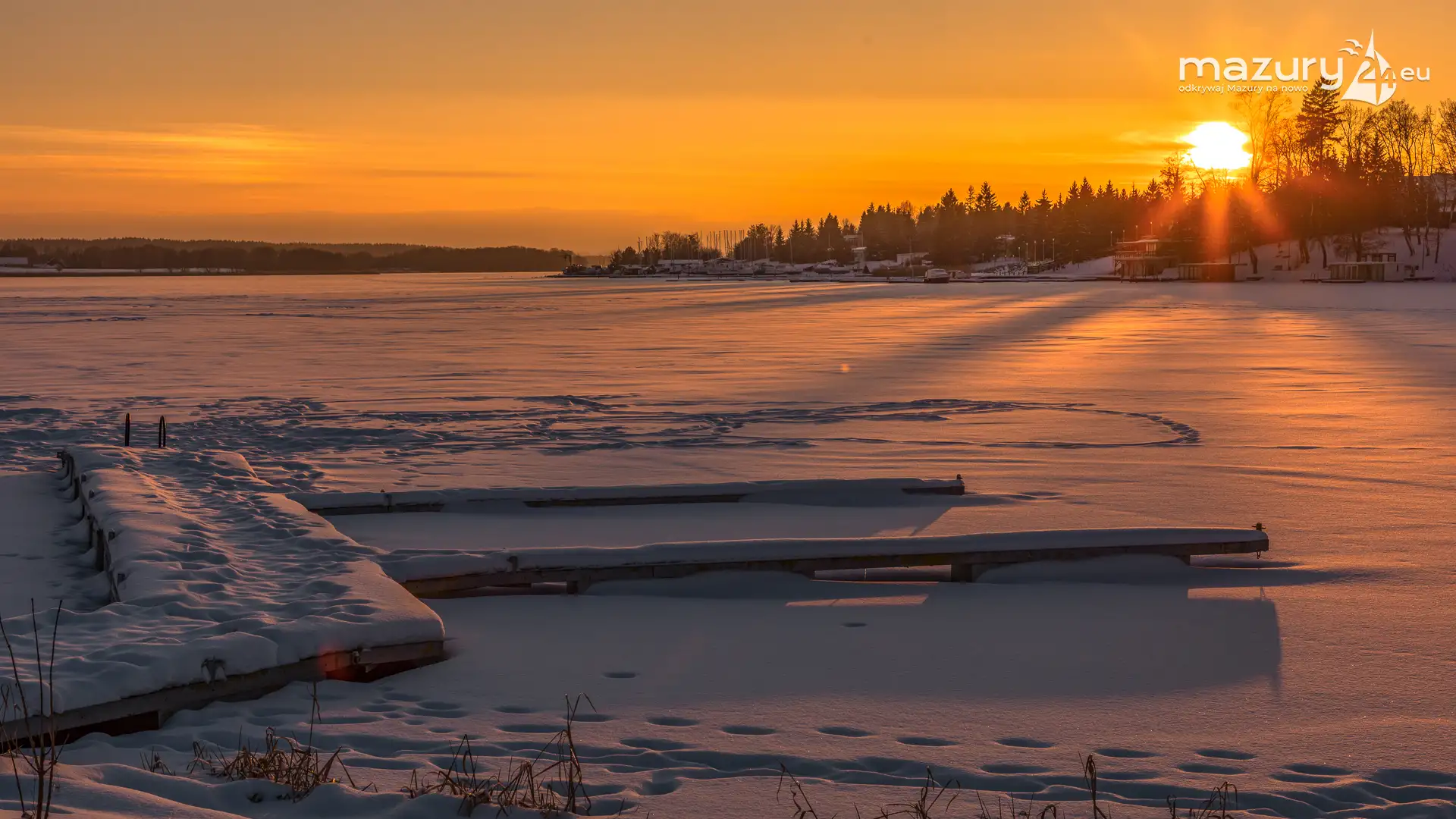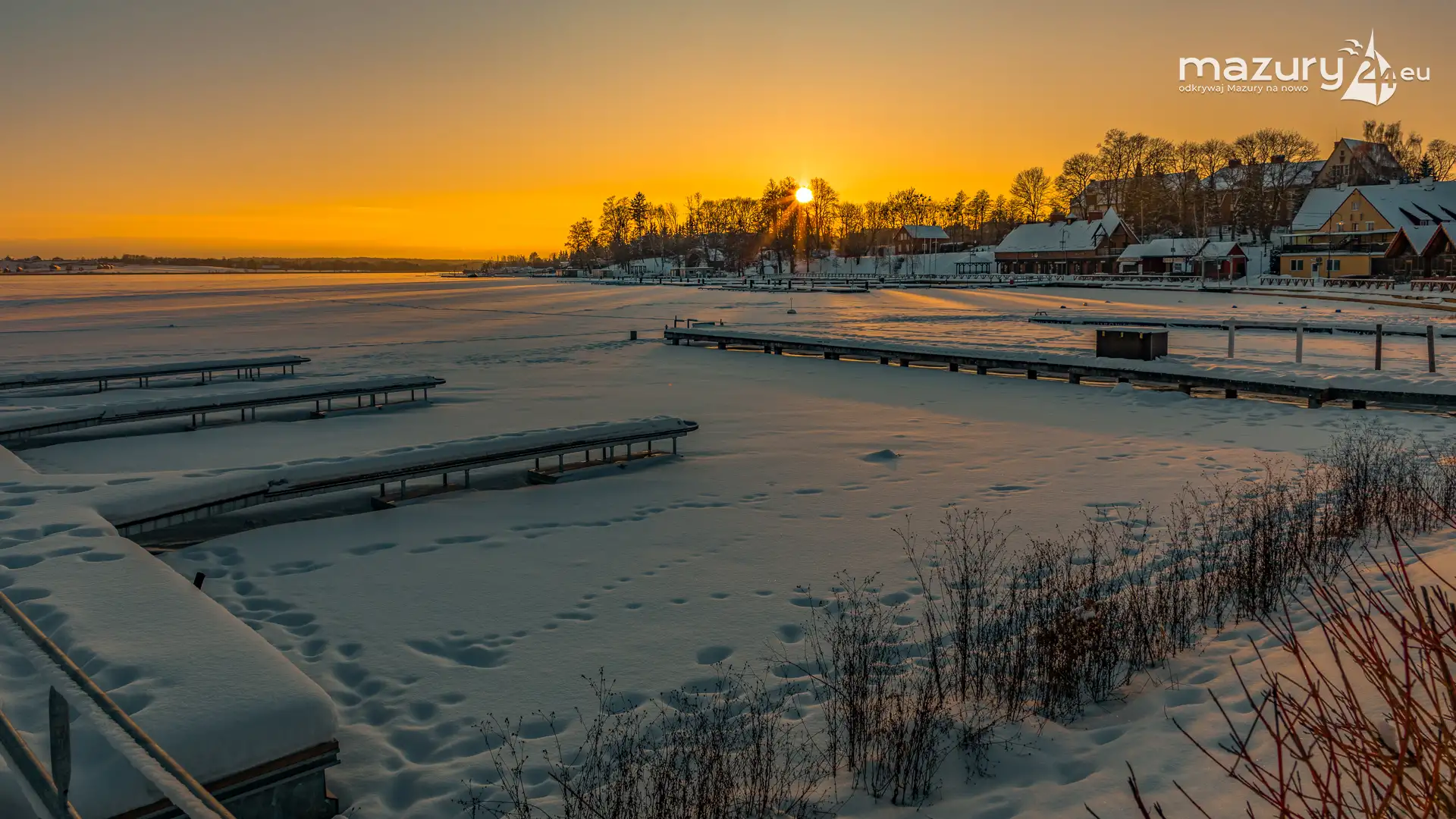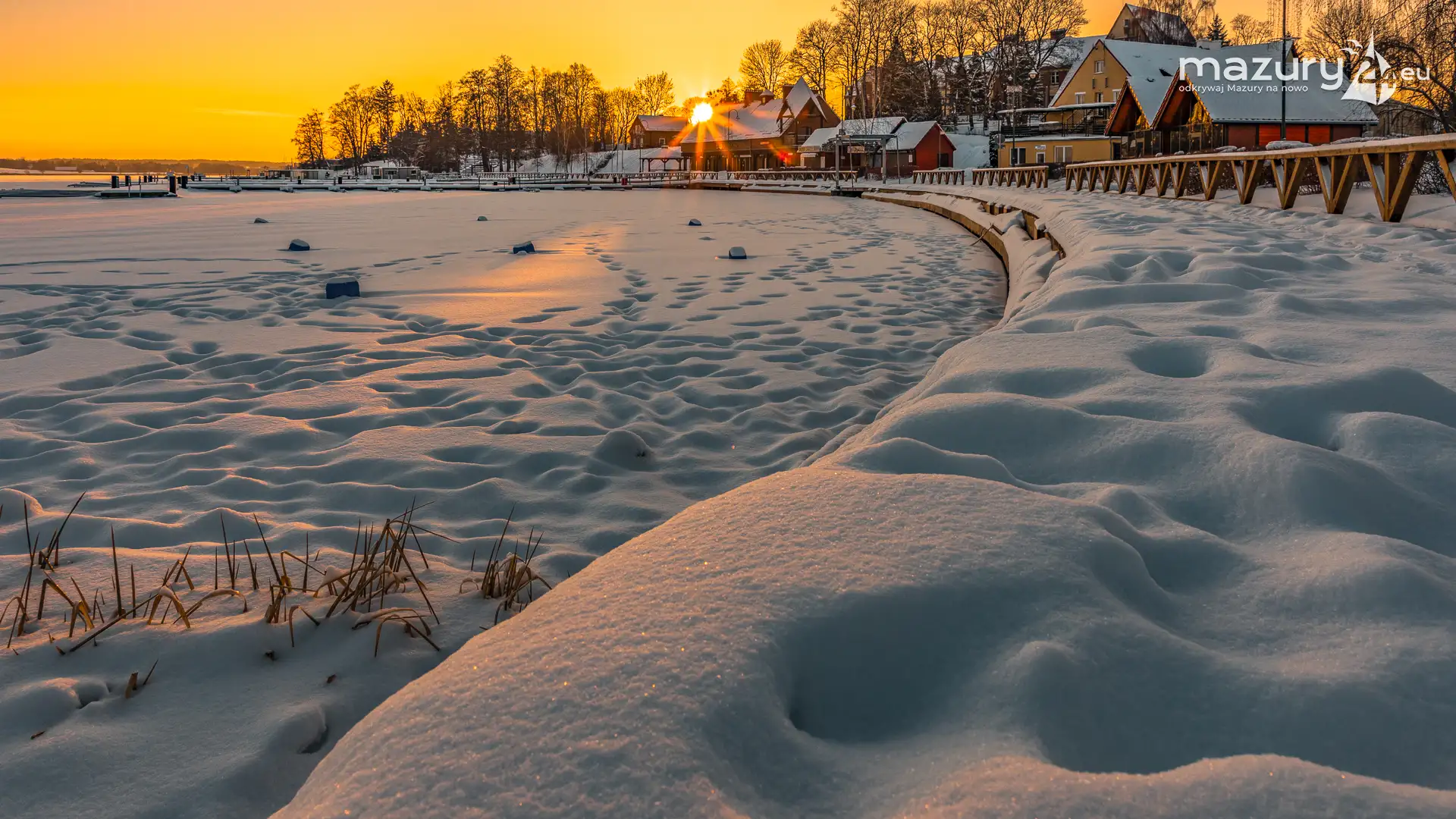 Dzisiejszą foto przygodę z Mazurami zakończyliśmy w Rynie nad jeziorem Ryńskim. Pięknie się nam słońce ułożyło na horyzoncie oświetlając zabudowę miasta i porty leżące na północnym i zachodnim brzegu jeziora. Wkrótce popularny deptak zacznie tętnić życiem, wrócą żeglarze i turyści, a białe kolory zastąpi świeża, nowa zieleń...