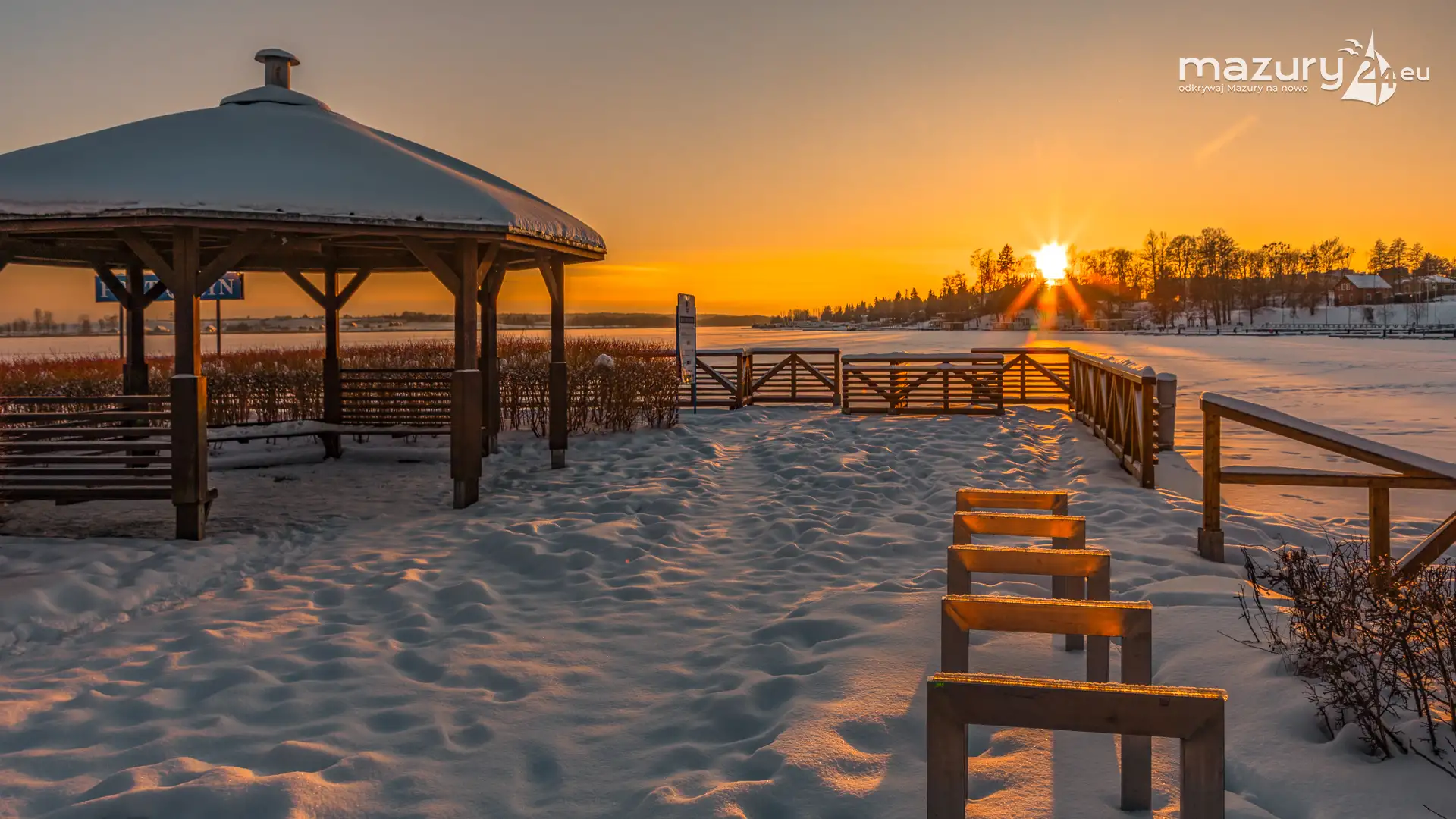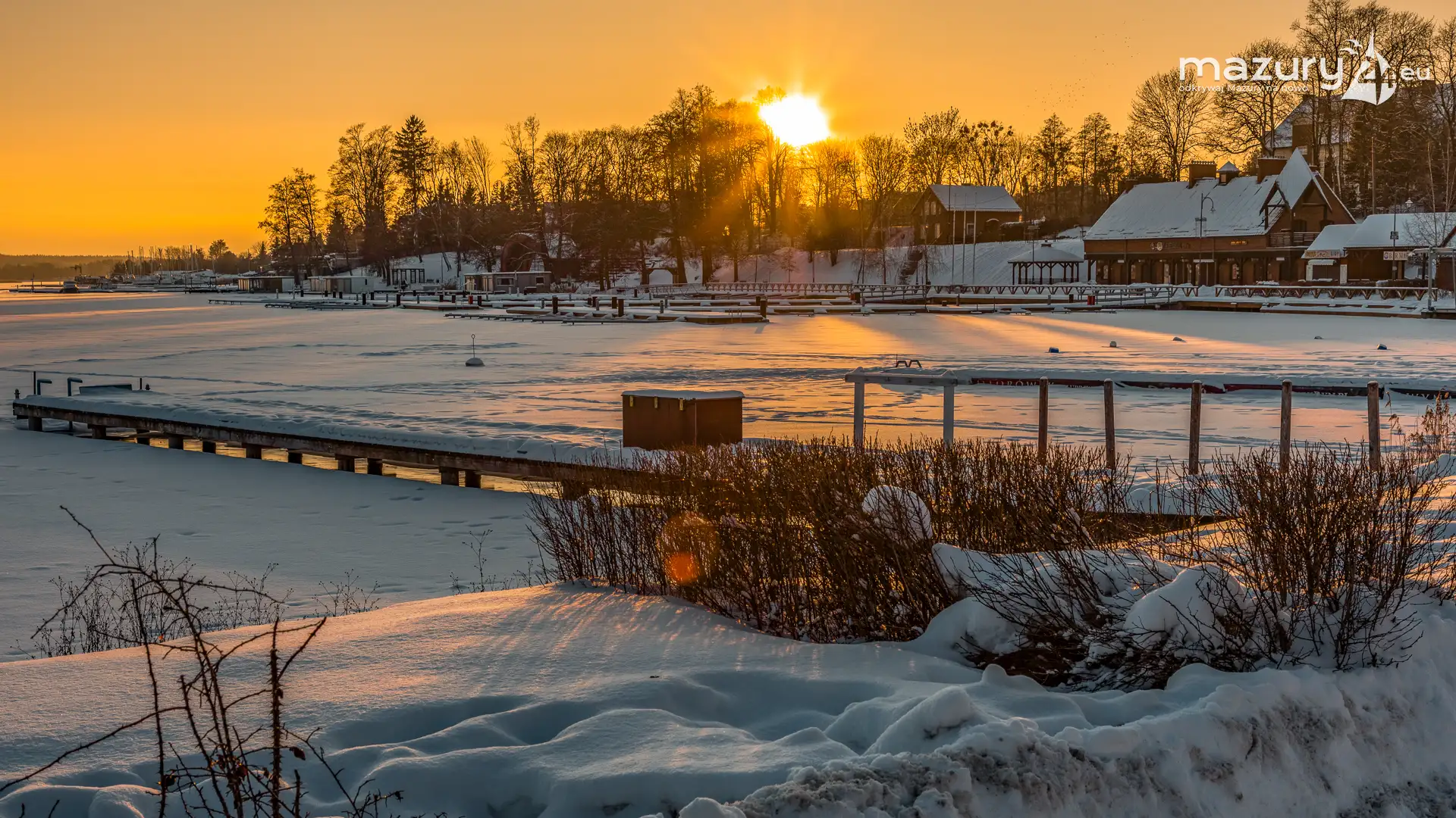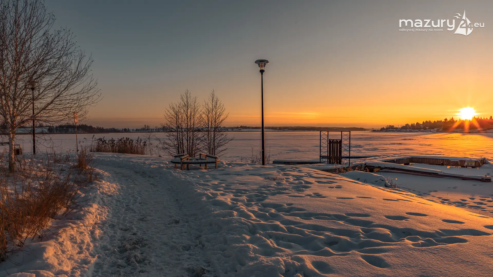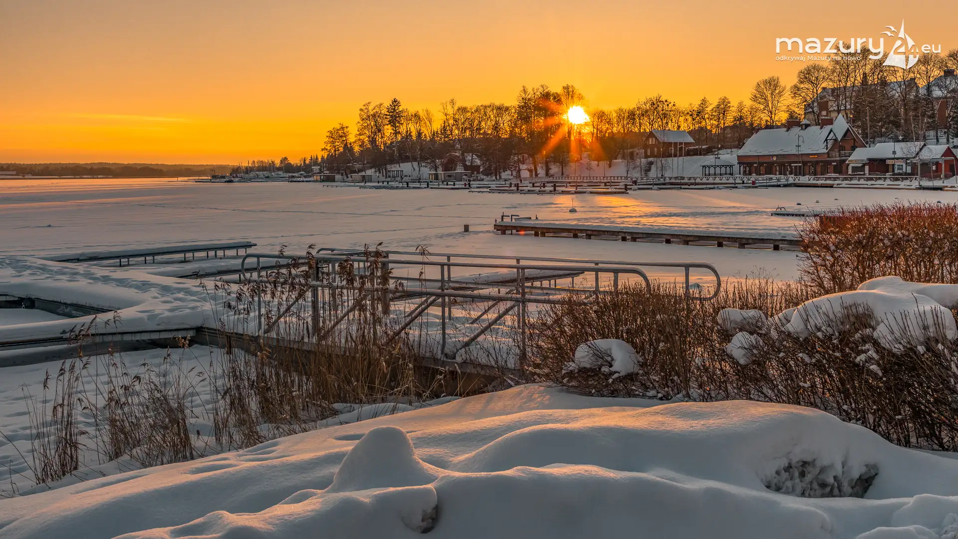 Dzisiejszą foto przygodę z Mazurami zakończyliśmy w Rynie nad jeziorem Ryńskim. Pięknie się nam słońce ułożyło na horyzoncie oświetlając zabudowę miasta i porty leżące na północnym i zachodnim brzegu jeziora. Wkrótce popularny deptak zacznie tętnić życiem, wrócą żeglarze i turyści, a białe kolory zastąpi świeża, nowa zieleń...