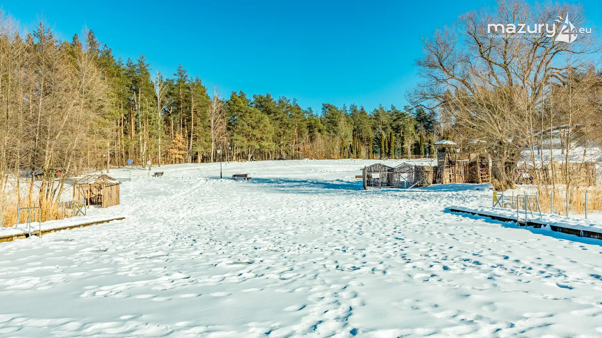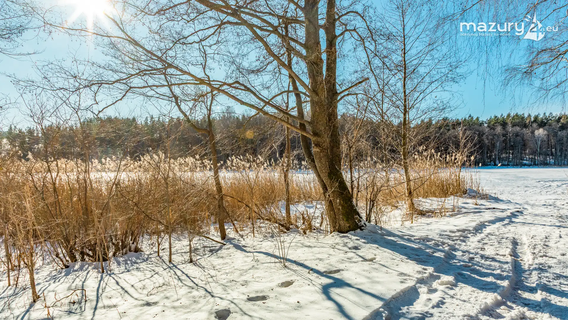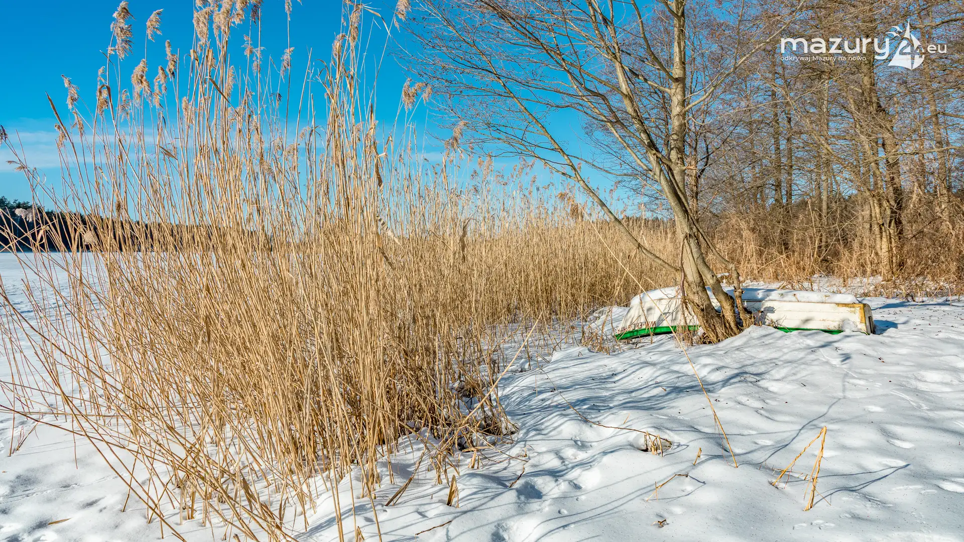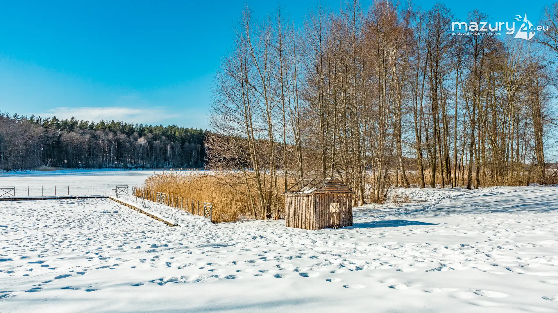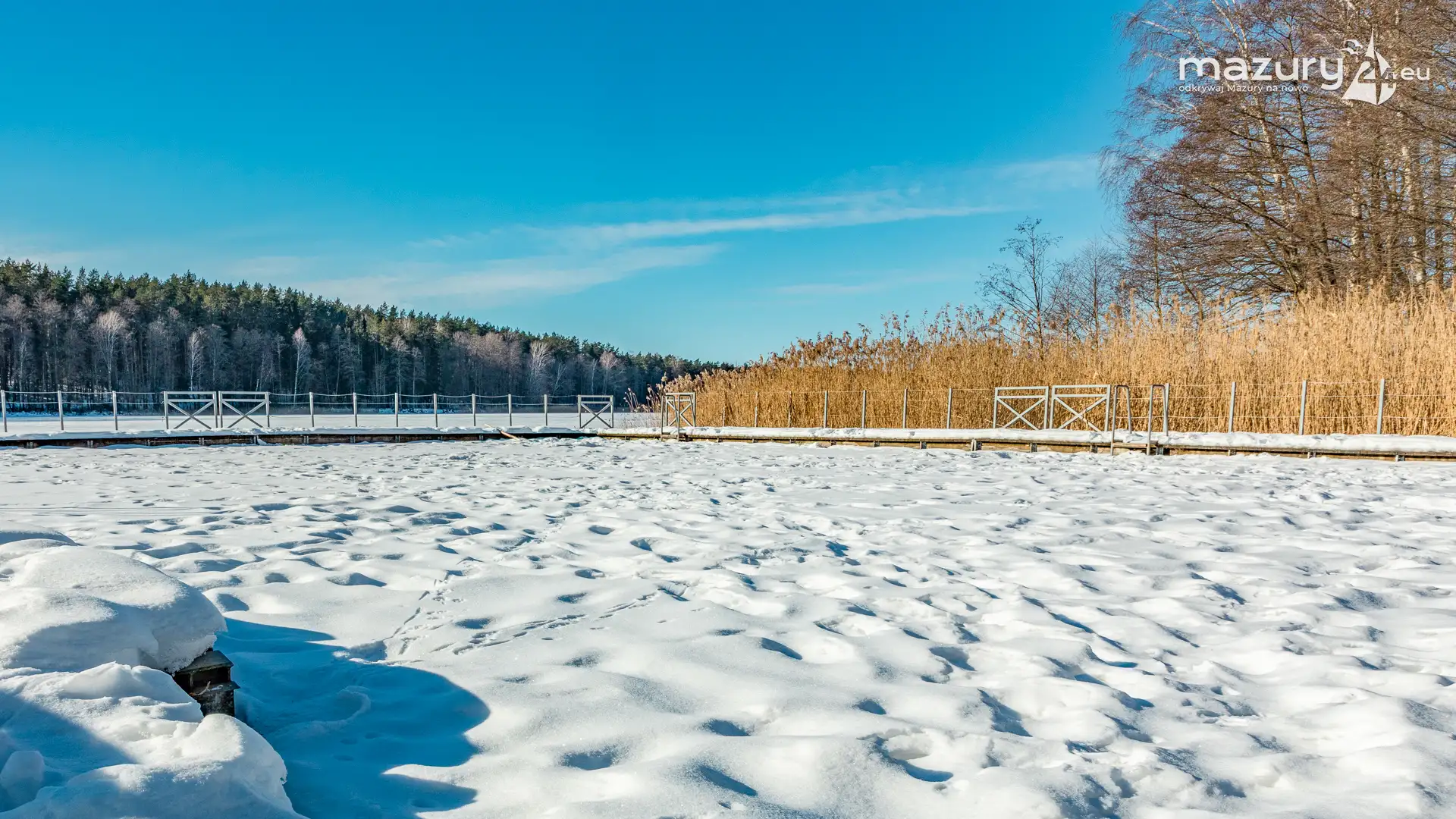 Plaża w Starych Juchach nad jeziorem Jędzelewo, to miejsce tętniące życiem głównie latem. Zimą zmienia się nie do poznania. W zimowy i słoneczny dzień, dominuje biel, niebieski i trzcinowy (chyba nie ma takiego koloru). Można spotkać jednak grupki osób na spacerach, dzieci z sankami i nas - z aparatami w rękach :)