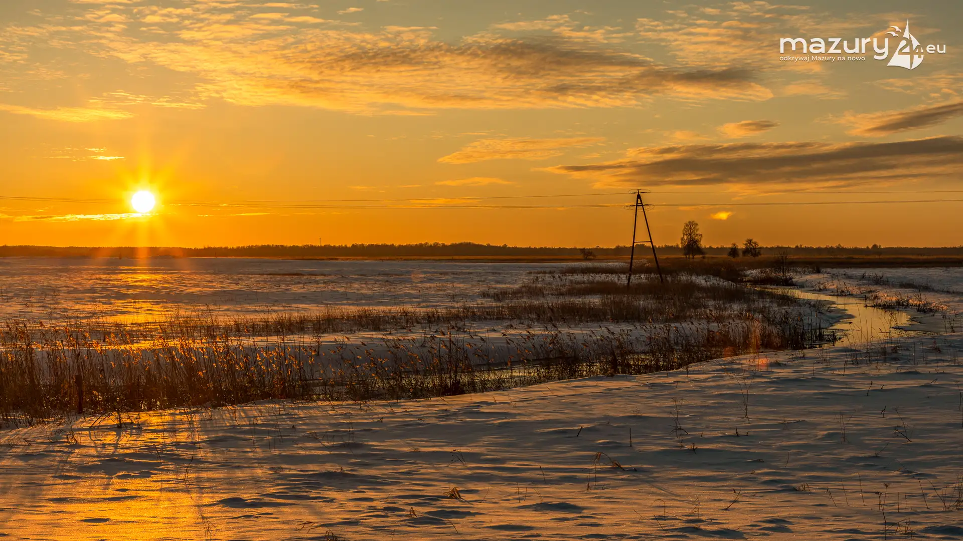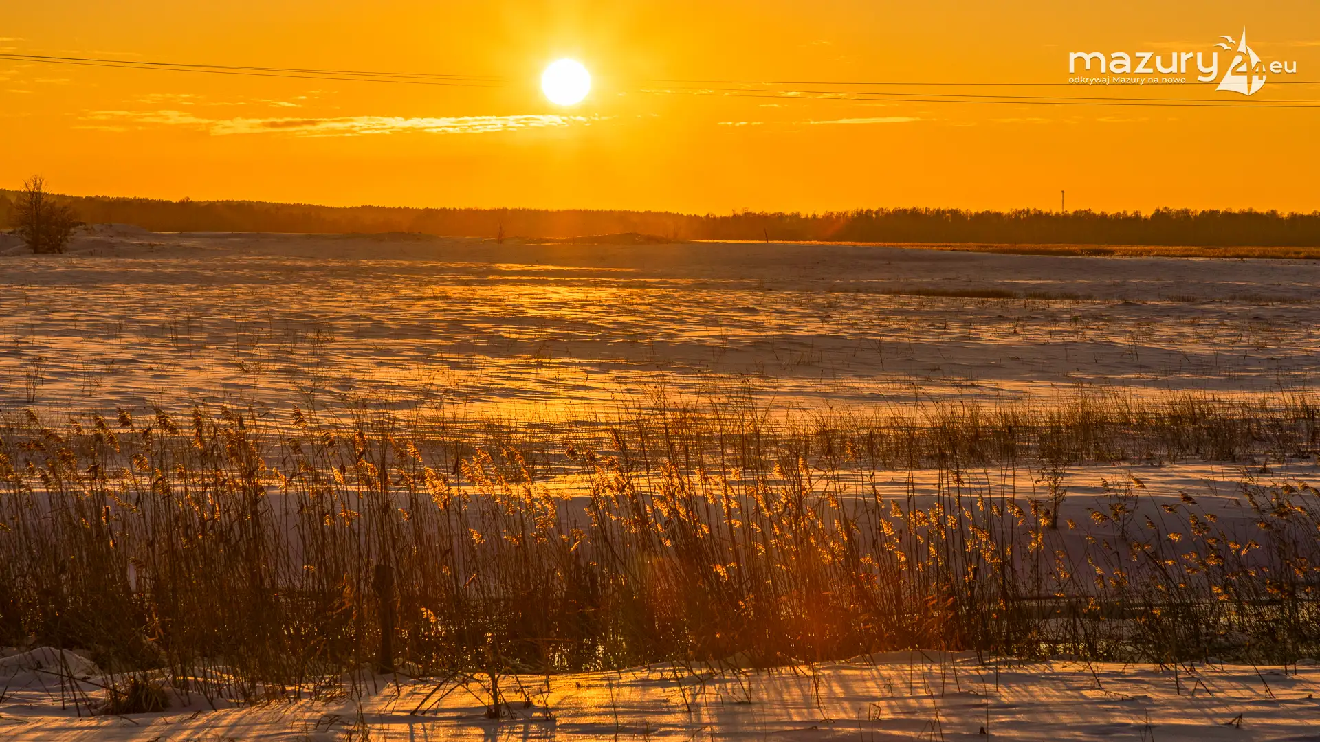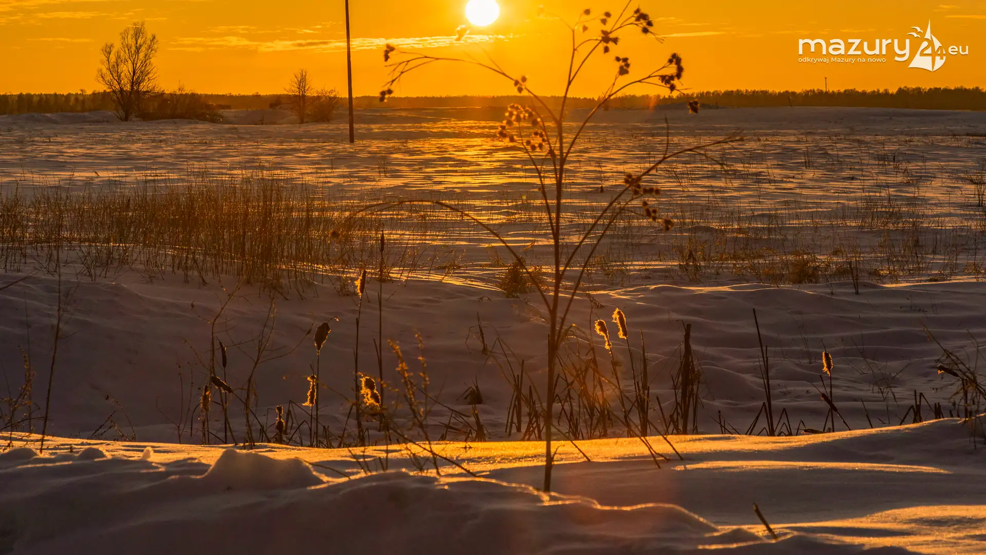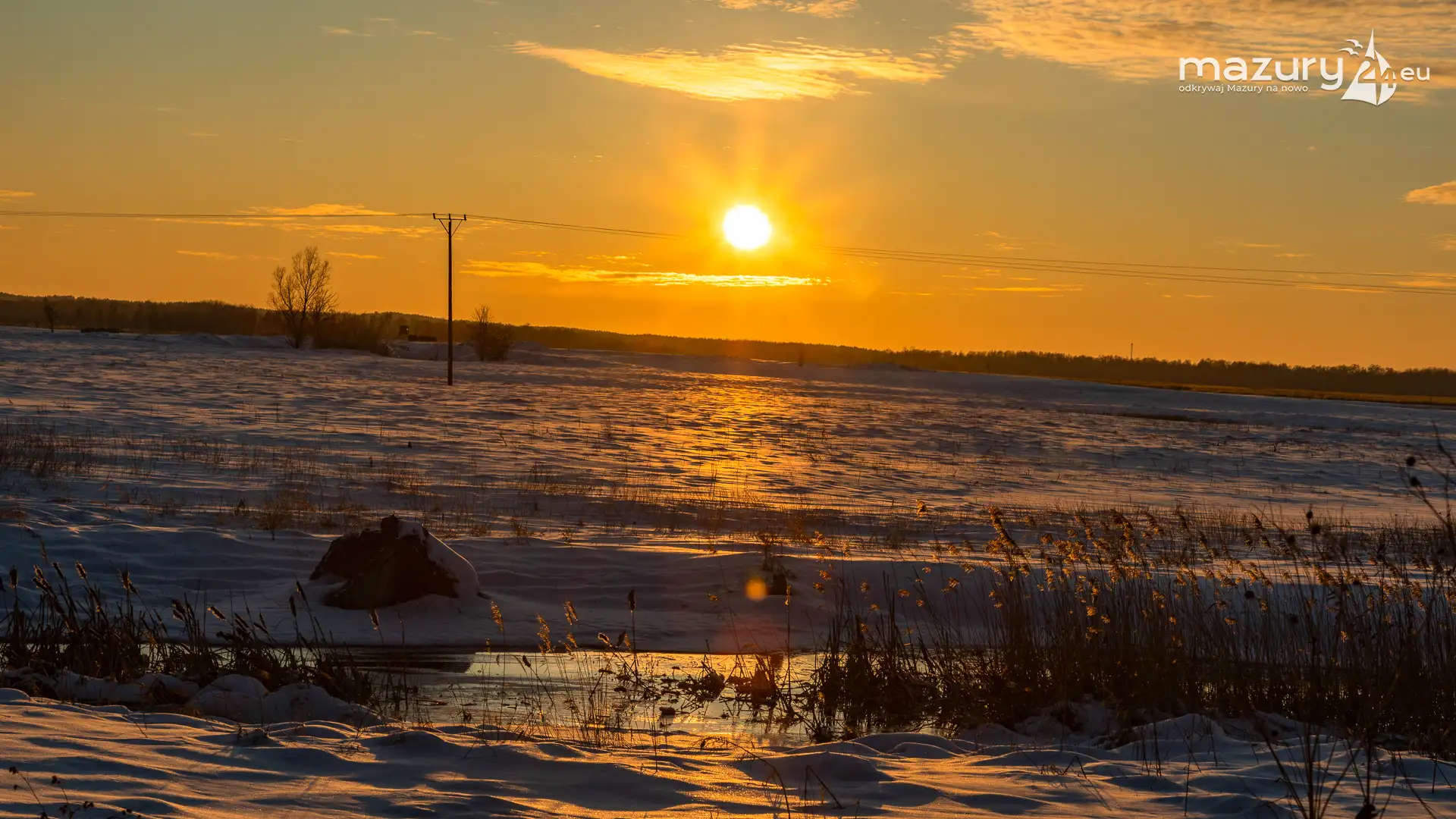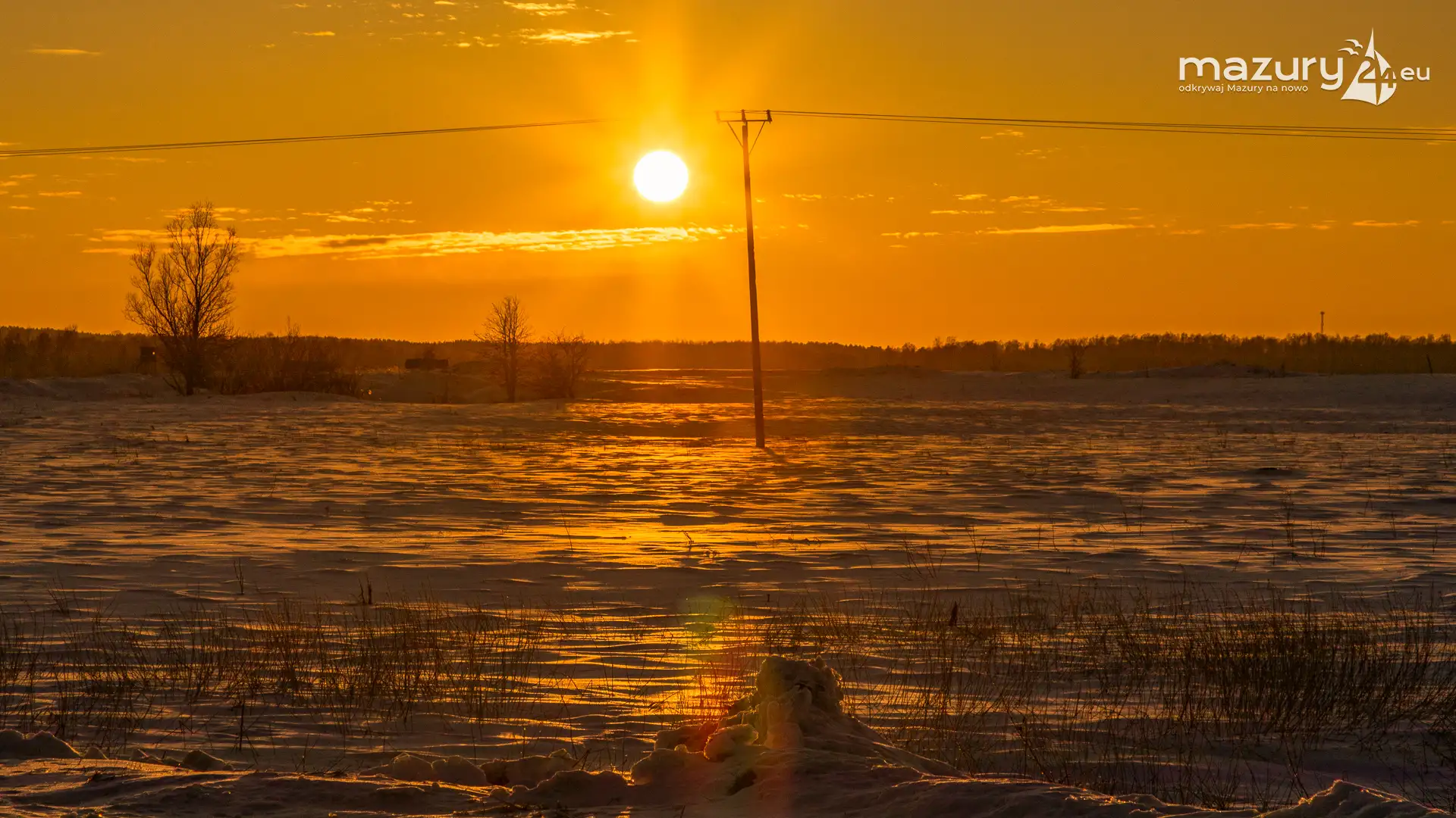 Podczas naszych podróży po Mazurach nie zawsze zachód słońca i horyzont znajdują się nad jeziorem. Latem troszkę szkoda promieni słonecznych które nie odbijają się w wodzie... Ale gdy Mazury zamarzają i jeziora oraz pola wyglądają podobnie biało - nie ma już takiej różnicy. Zobaczcie fotki złapane między Cierzpiętami a Marcinową Wolą.
