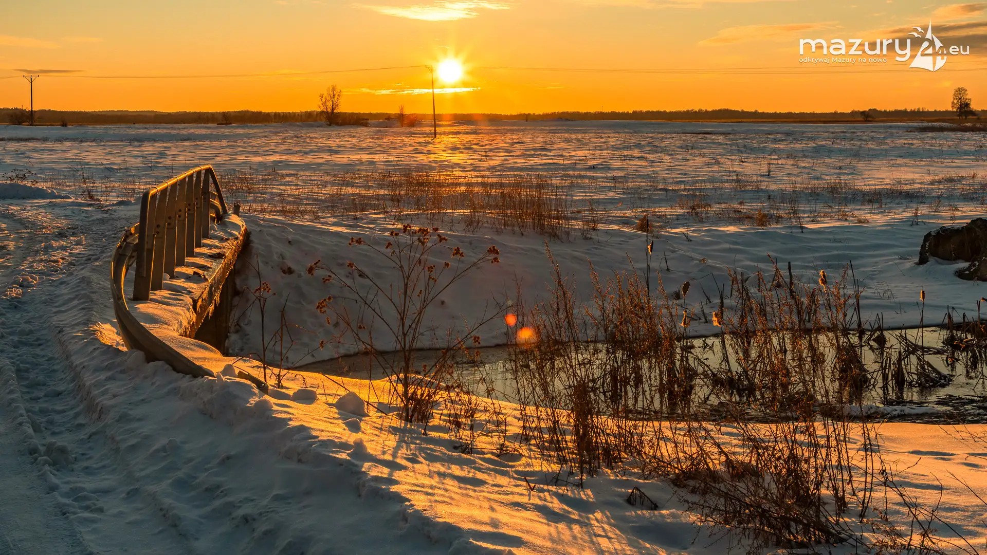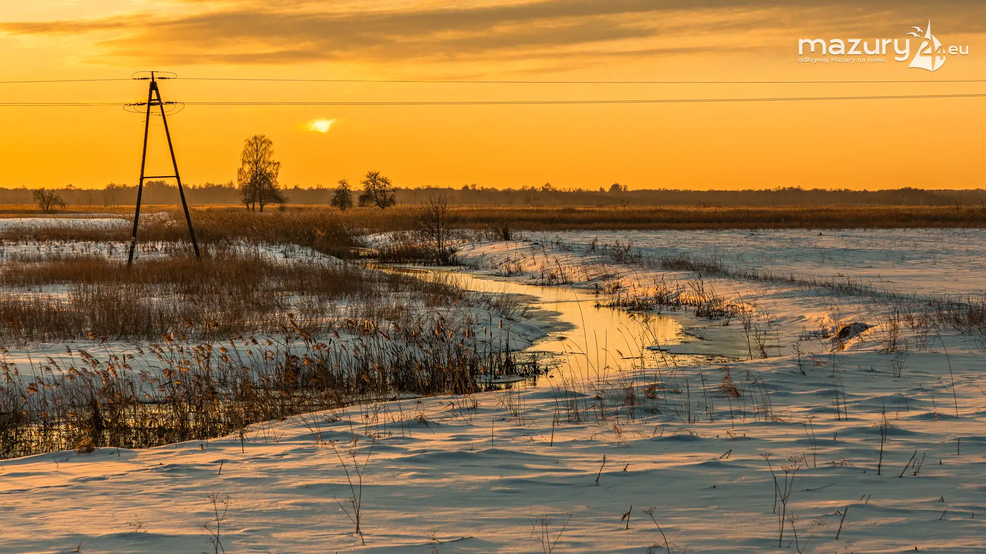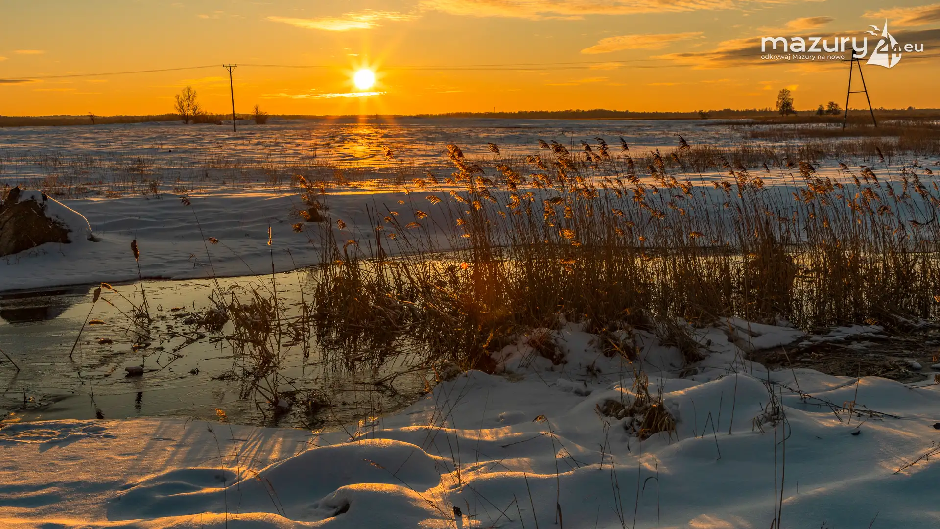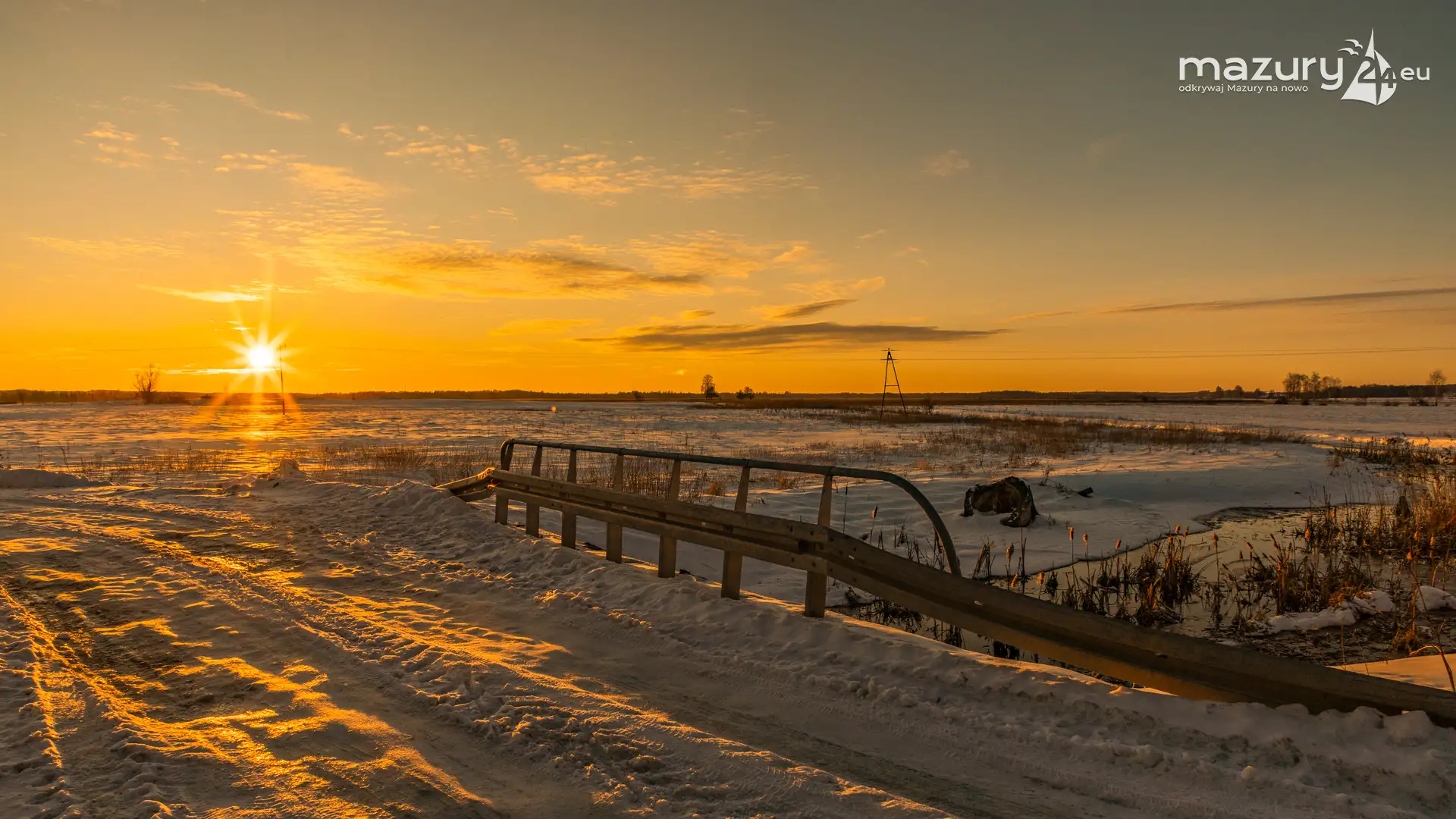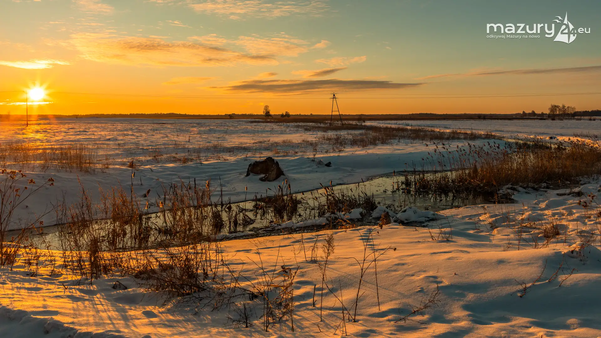 Podczas naszych podróży po Mazurach nie zawsze zachód słońca i horyzont znajdują się nad jeziorem. Latem troszkę szkoda promieni słonecznych które nie odbijają się w wodzie... Ale gdy Mazury zamarzają i jeziora oraz pola wyglądają podobnie biało - nie ma już takiej różnicy. Zobaczcie fotki złapane między Cierzpiętami a Marcinową Wolą.
