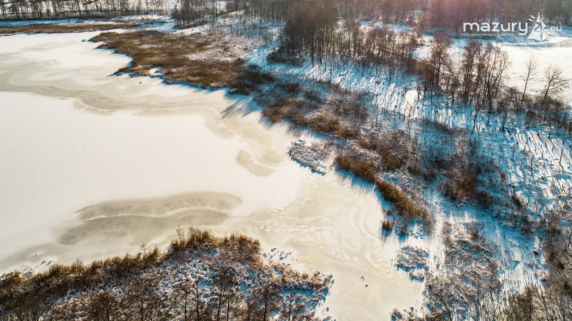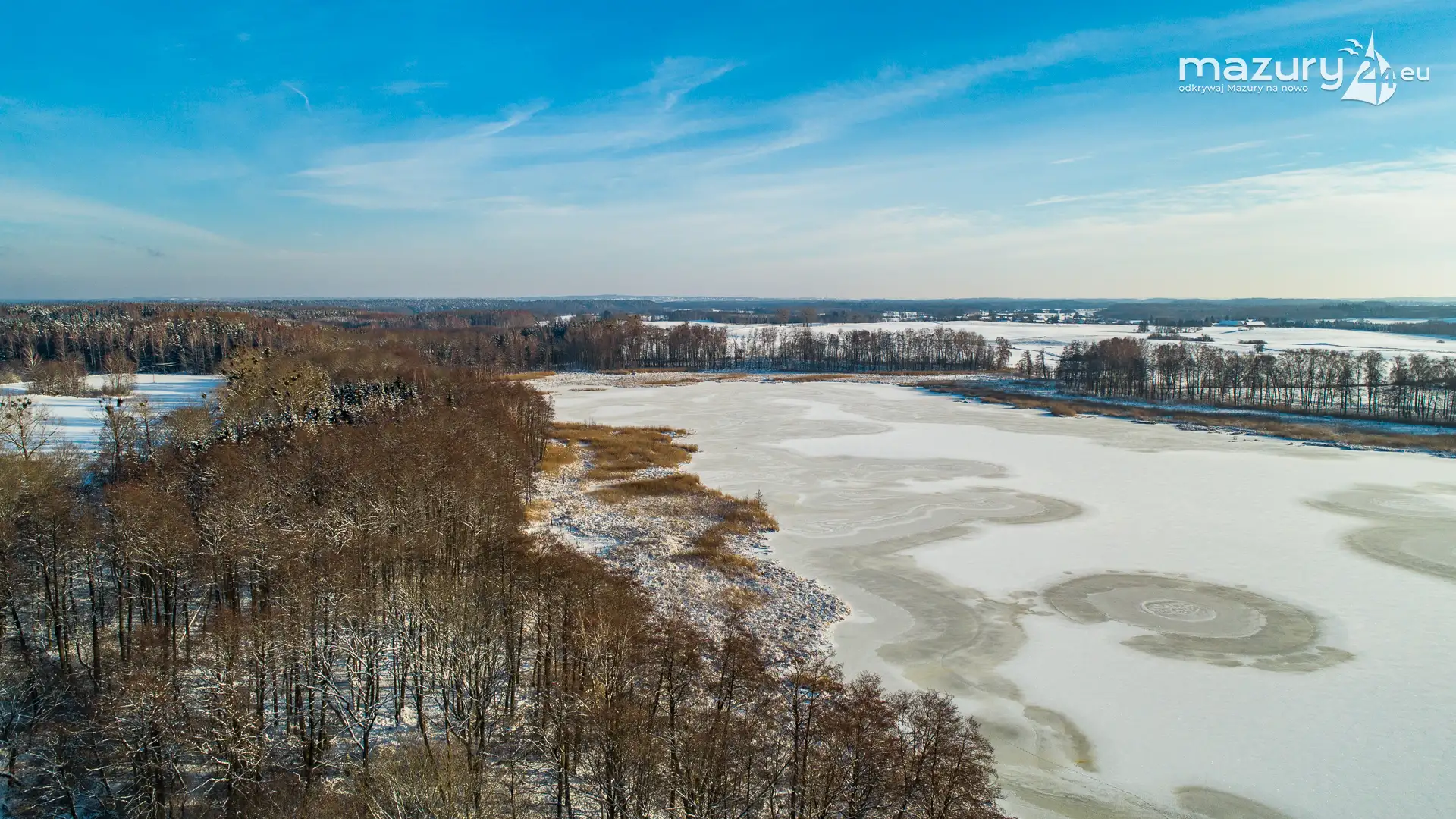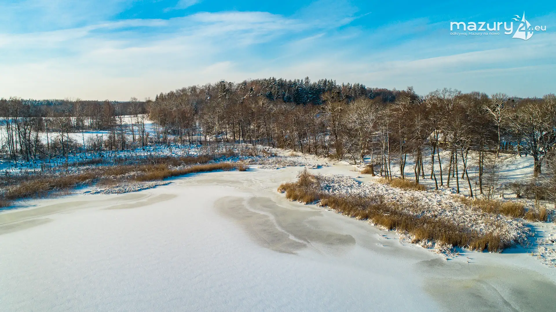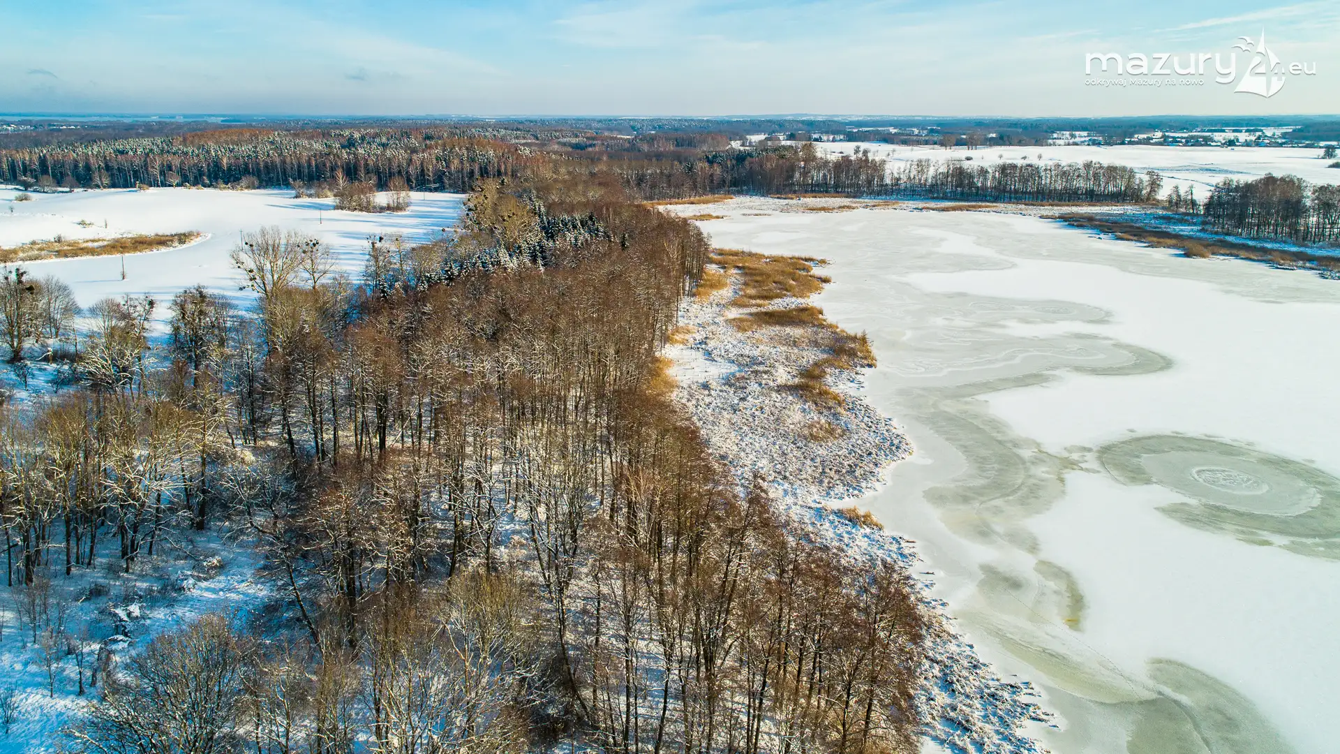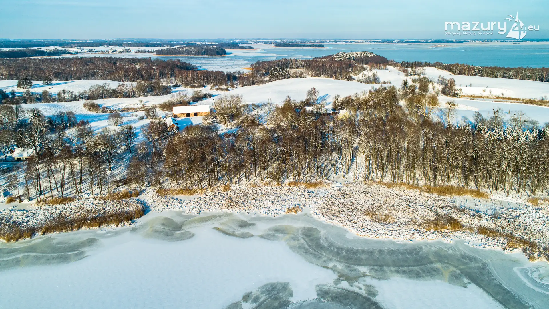 Różne miejsca na Mazurach na zimowych zdjęciach z drona, styczeń 2024 r.