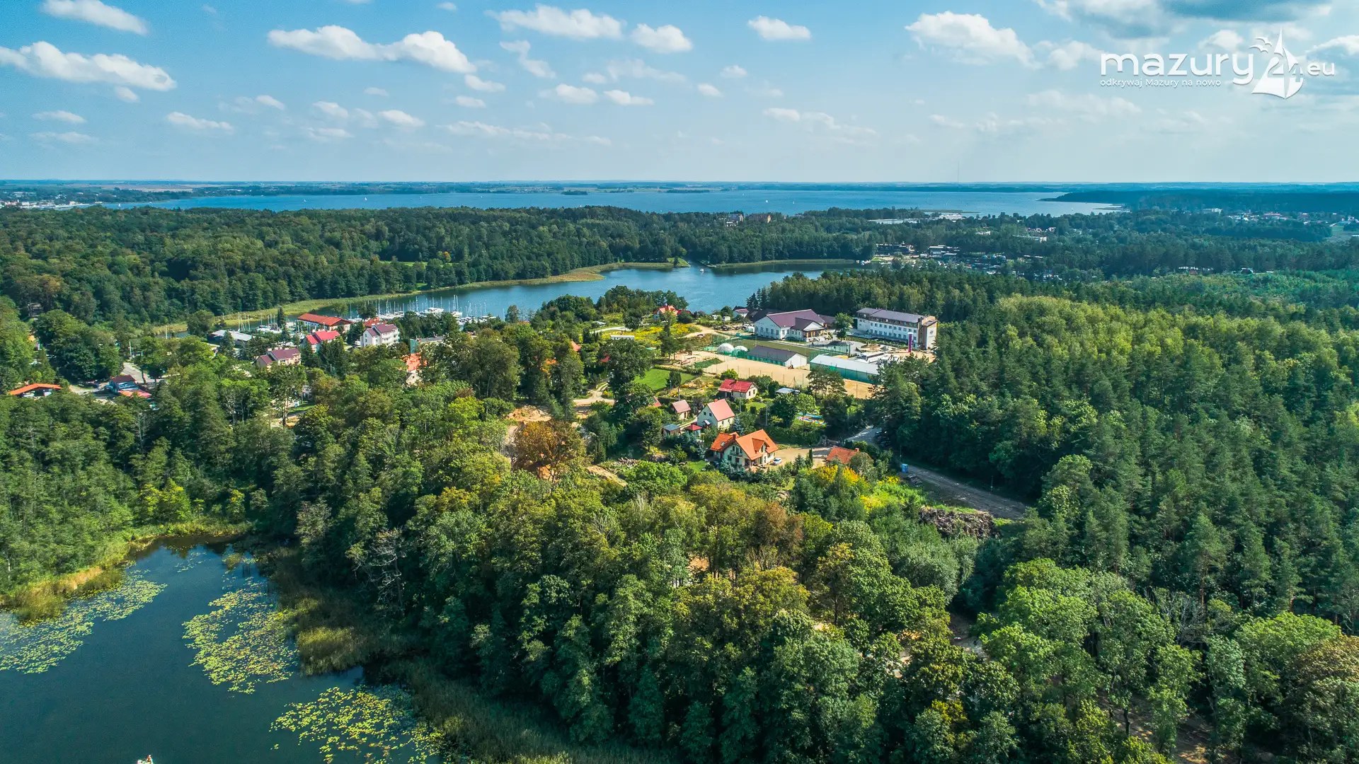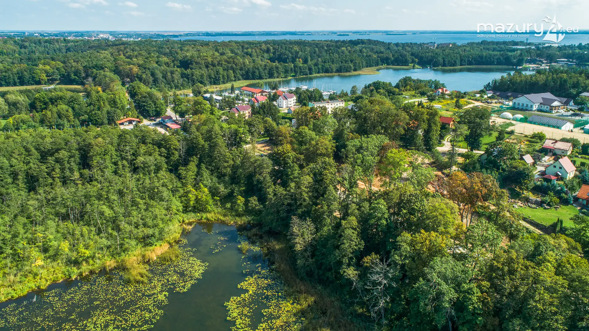 Pod Dębem nad jeziorem Nidzkim z lotu ptaka, sierpień 2025 r.