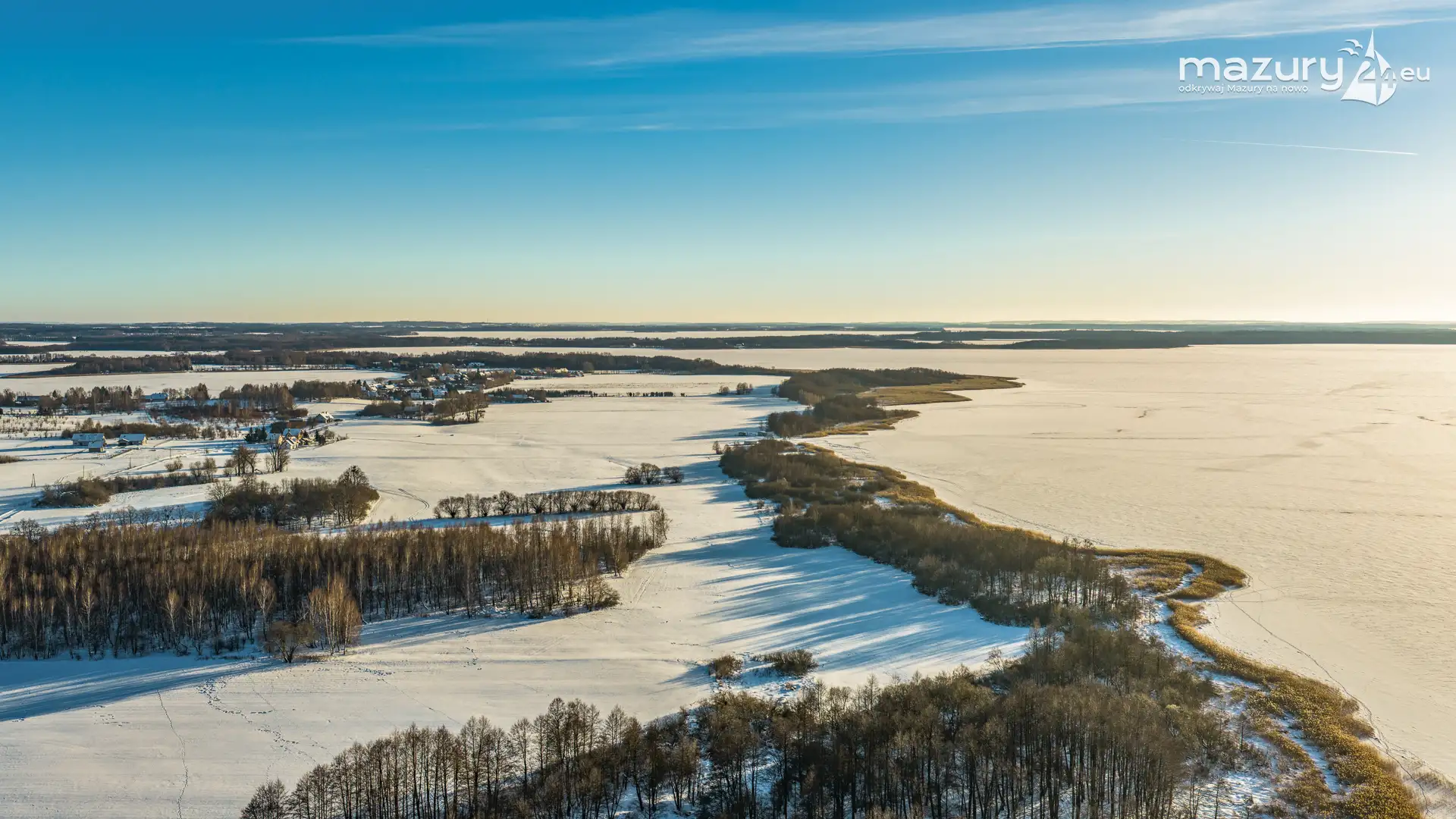Ostatni dzień stycznia to piękna, zimowa aura z dużą przejrzystością powietrza. Wzbiliśmy się nad plażę miejską przy wejściu na rzekę Węgorapa z Mamr i... złapaliśmy w kadr sporą część okolicy. Na fotkach Mamry, Węgorzewo, Węgorapa, zakryte śniegiem jezioro Święcajty. Na kilku fotkach widać elementy Mazurskiego krajobrazu oddalone o kilkadziesiąt kilometrów, np. wiatraki przy Kętrzynie, Dargin, Giżycko... Taką zimę lubimy...