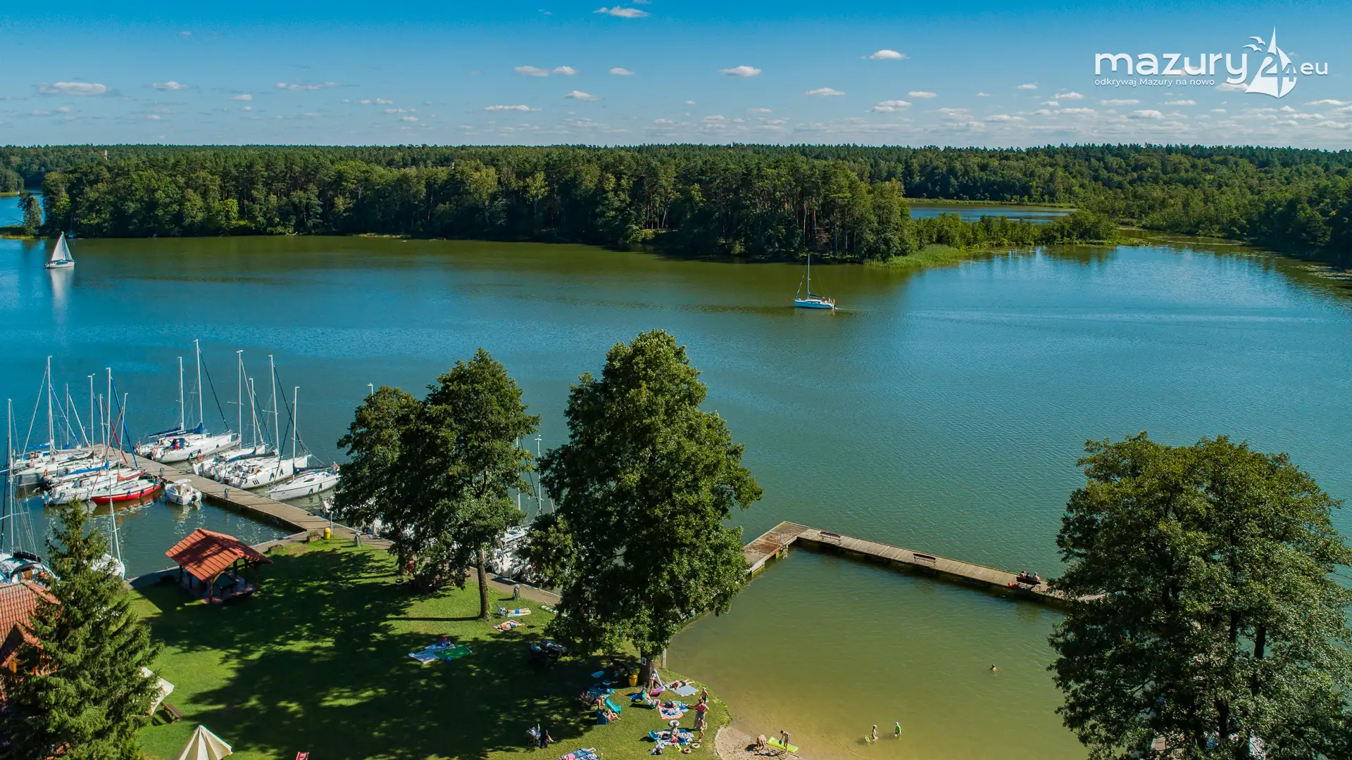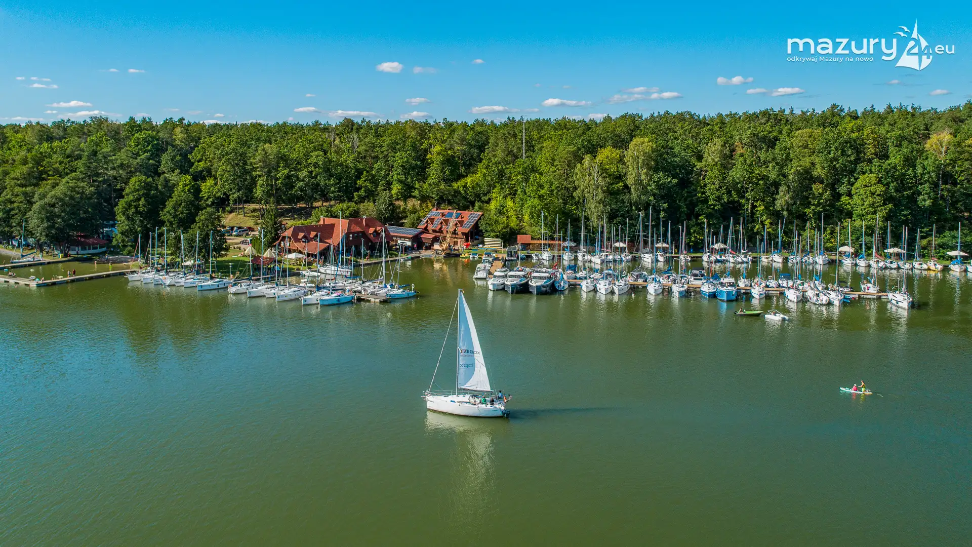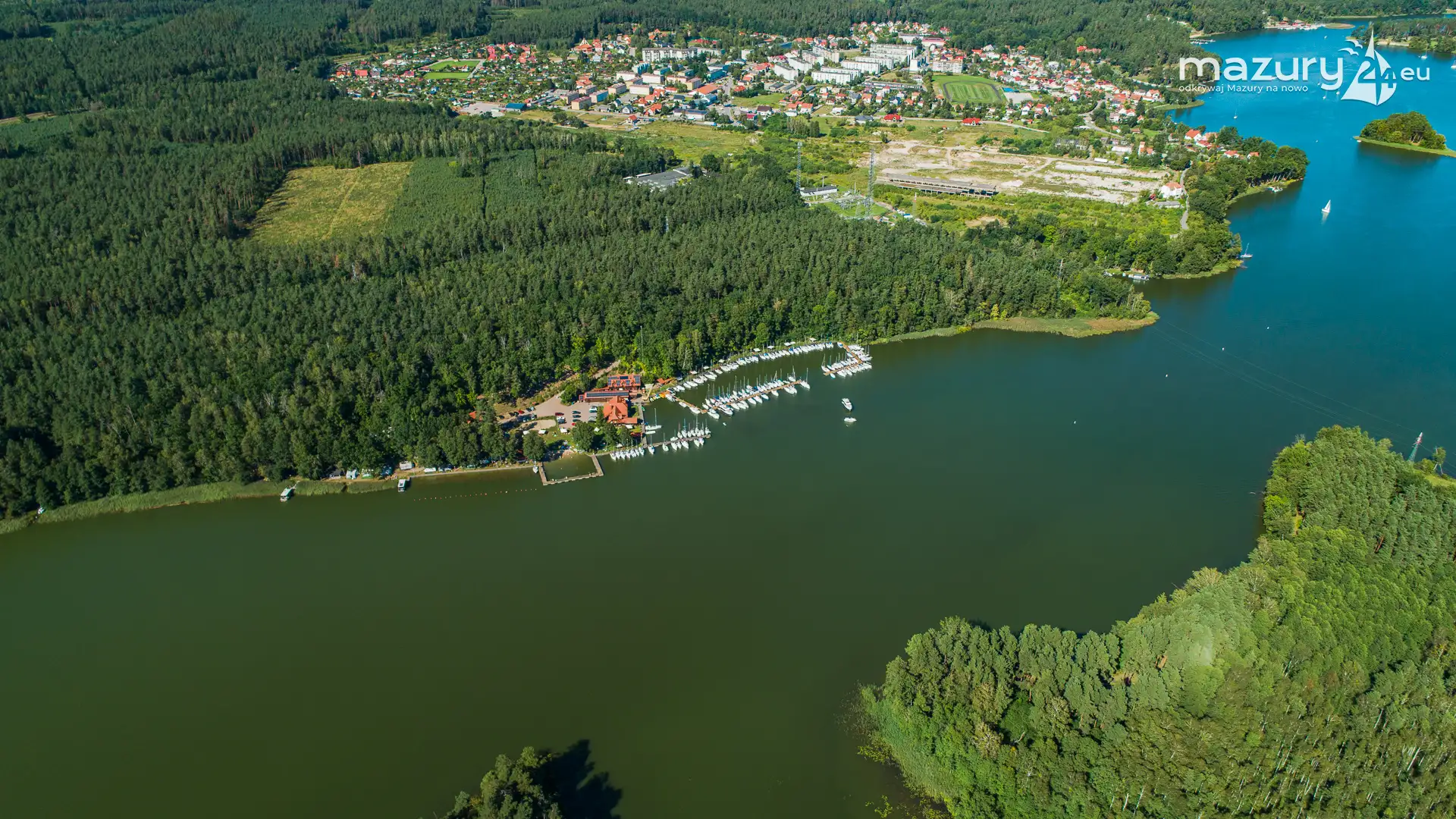 Jezioro Kisajno i port Łabędzi Ostrów na początku września 2025 r. z drona