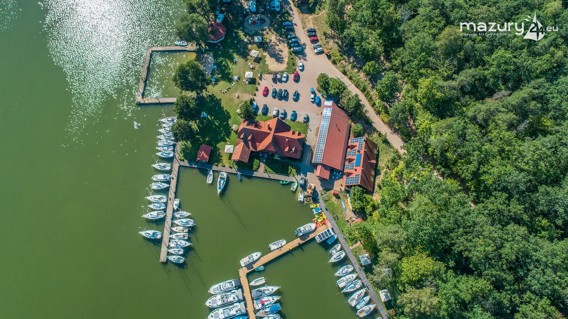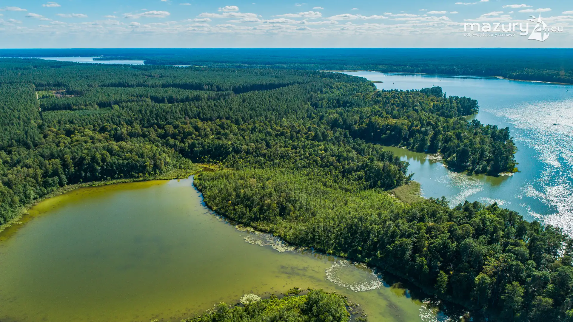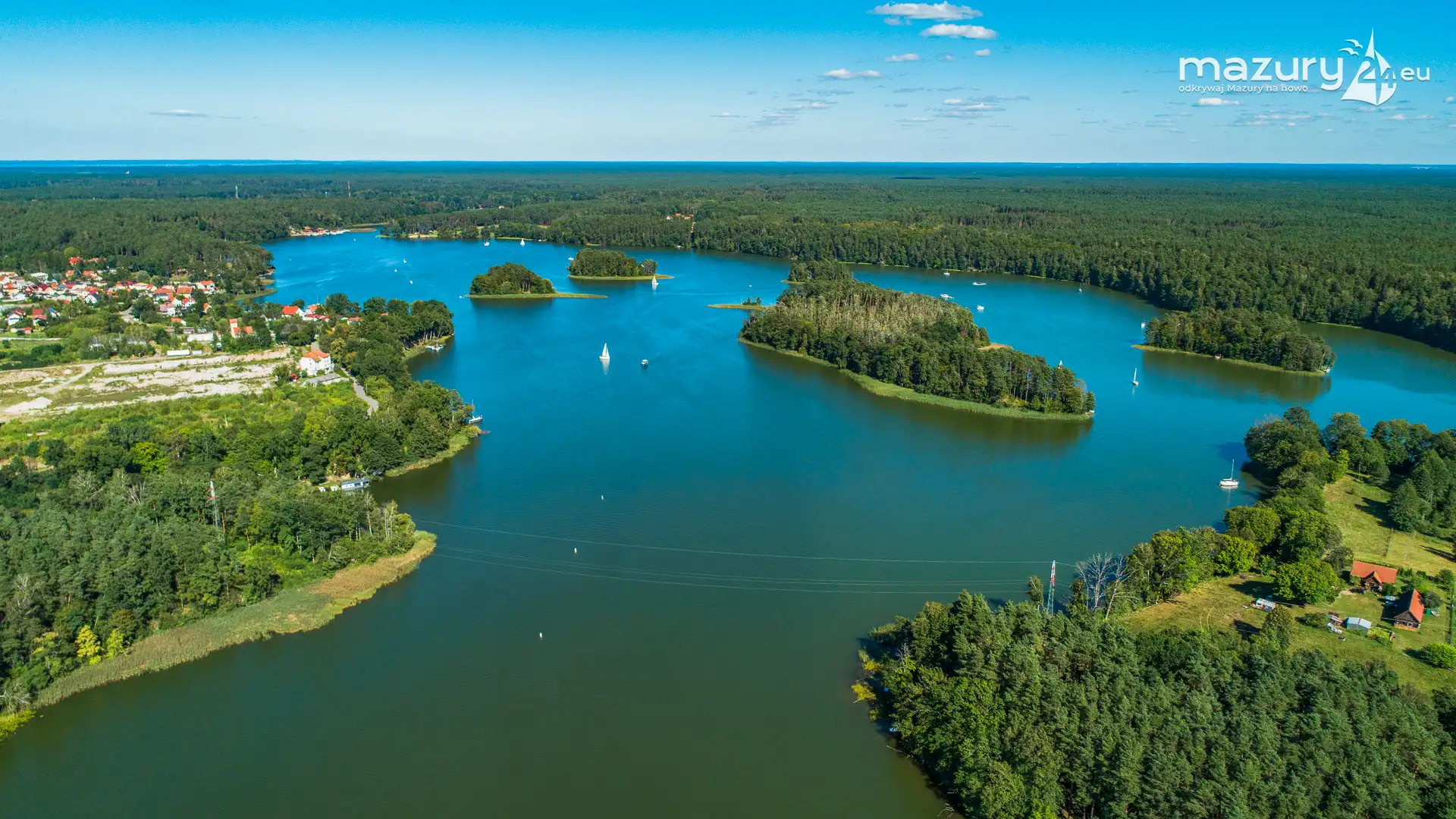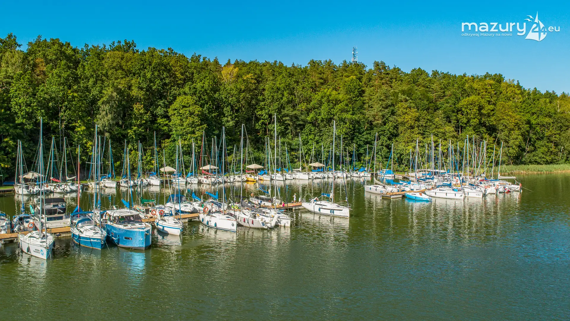 Jezioro Kisajno i port Łabędzi Ostrów na początku września 2025 r. z drona
