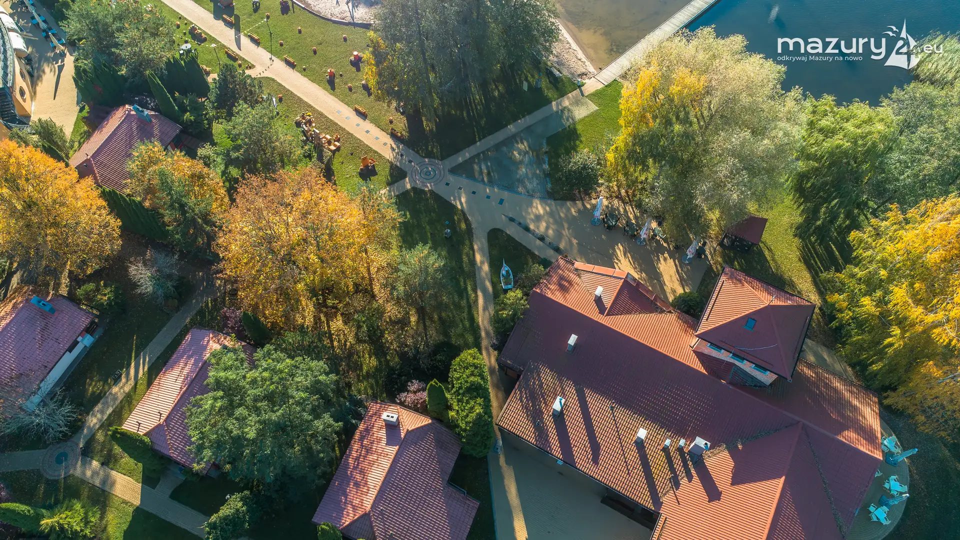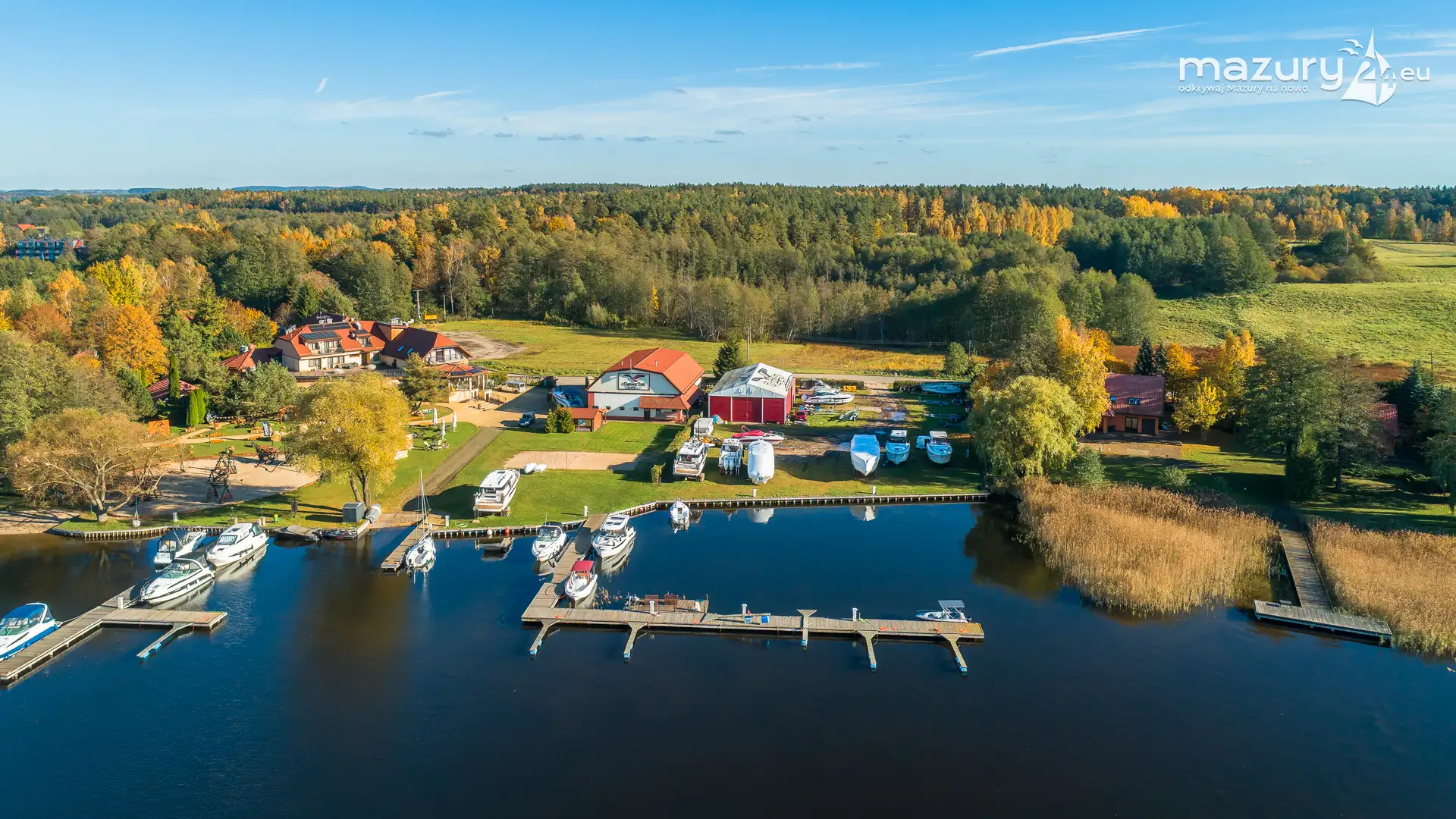 Kolejnym miejscem które złapaliśmy "z góry" podczas wybuchu jesiennych kolorów jest jezioro Święcajty i port Ognisty Ptak, leżący na północnej części szlaków WJM. Niby nic takiego, pokazywaliśmy Wam to miejsce wiele razy, w końcu udało nam się jednak złapać jesienną paletę barw. Piękne te Mazury jesienią...