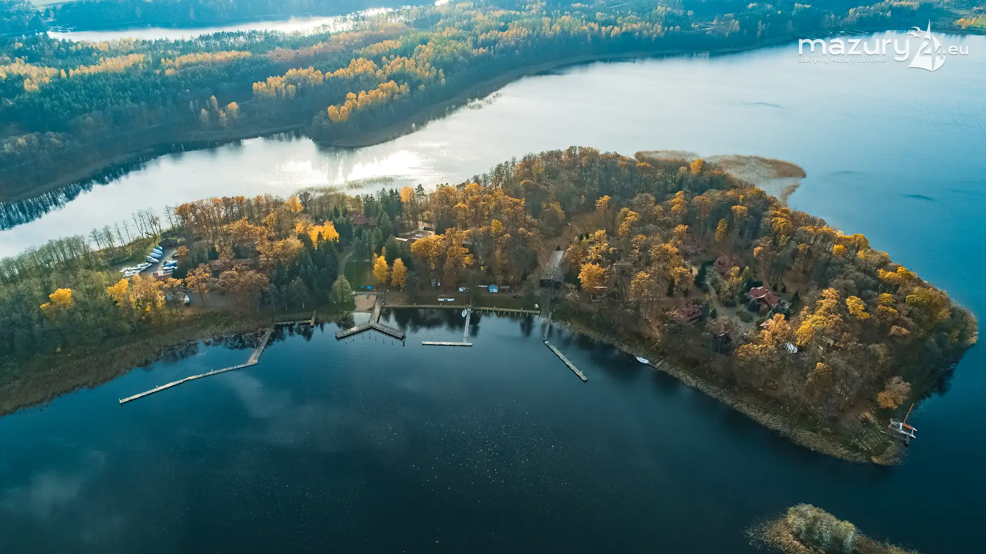 Gdzie byśmy nie byli na Mazurach, pod nogami wszędzie szeleszczą żółte i czerwone liście... Jezioro Kisajno i wyspy na nim są pełne liściastych drzew. Zobaczcie Mazury w kolorach jesieni z lotu ptaka, pięknie nie? Na zdjęciach wspomniane jezioro, Piękna Góra, Łabędzi Szlak i port Łabędzi Ostrów. Na kilku zdjęciach również Wilkasy i jezioro Niegocin.