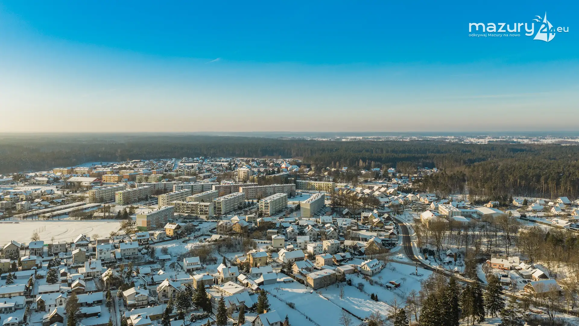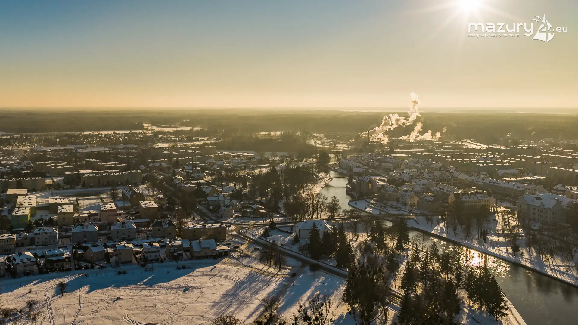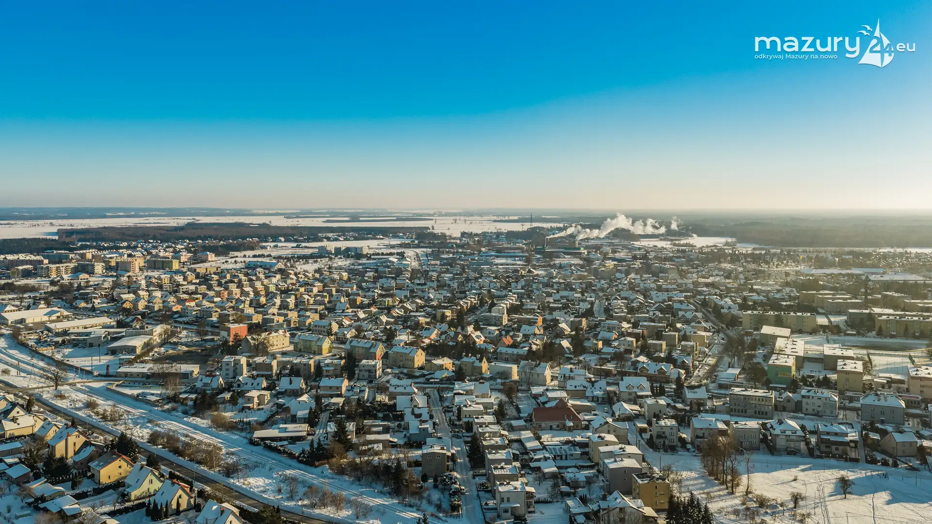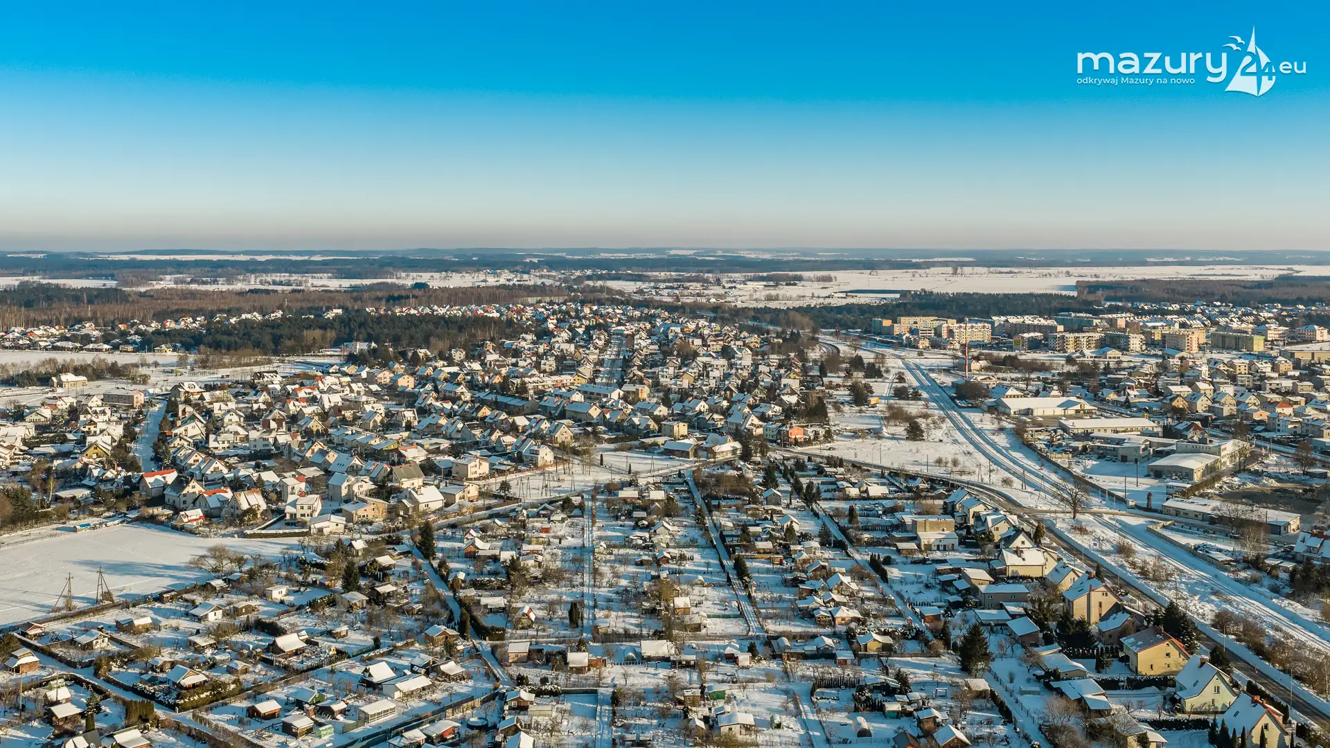 Przedwiośnie w Ełku z drona, okolice ulicy Zamkowej, marzec 2026 r.