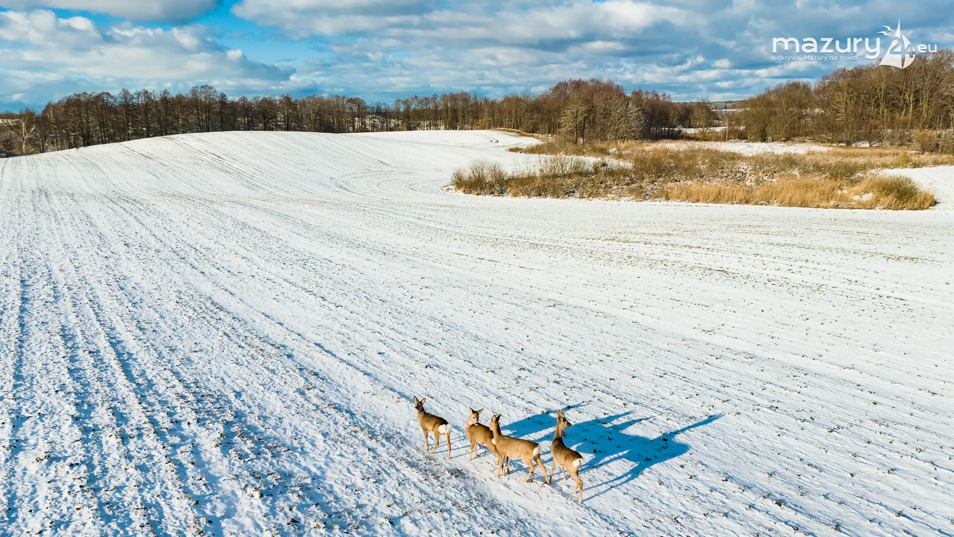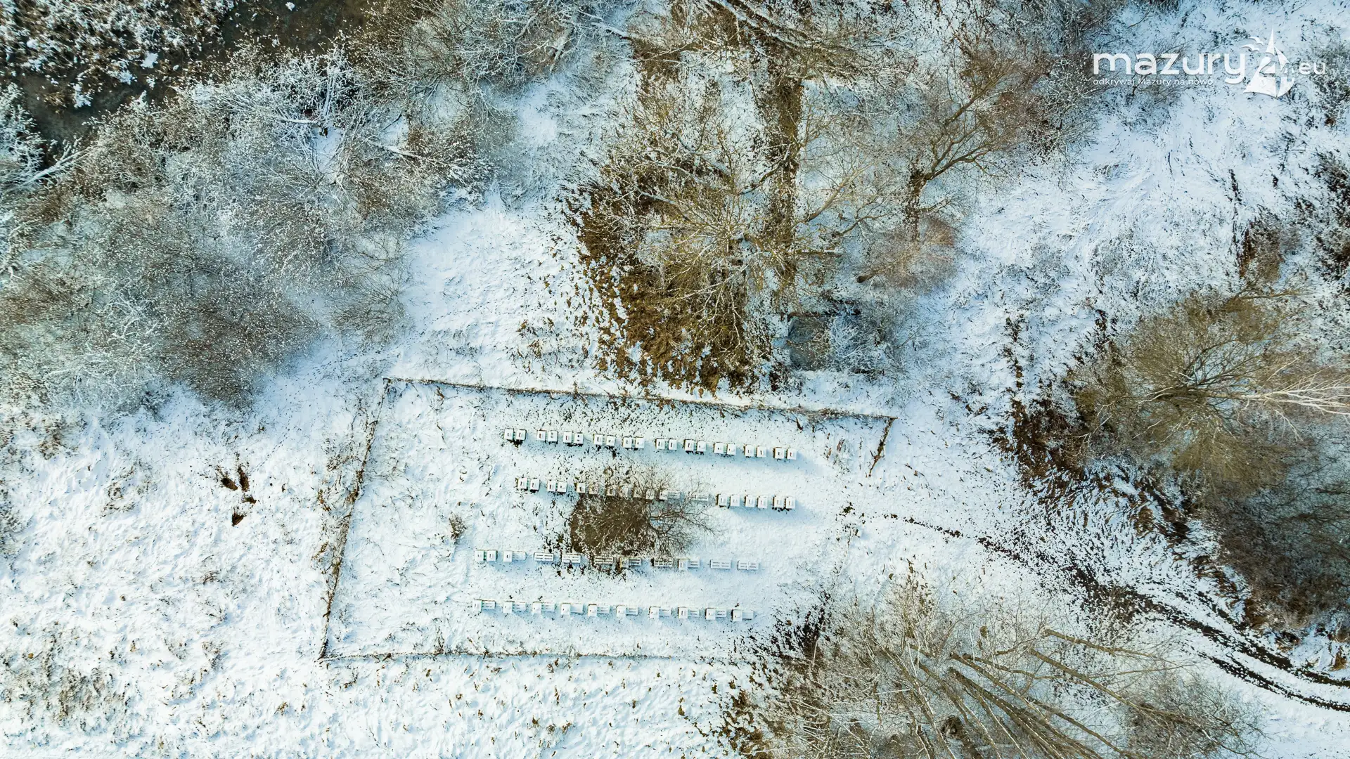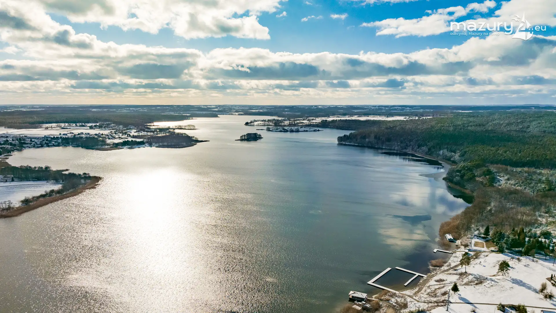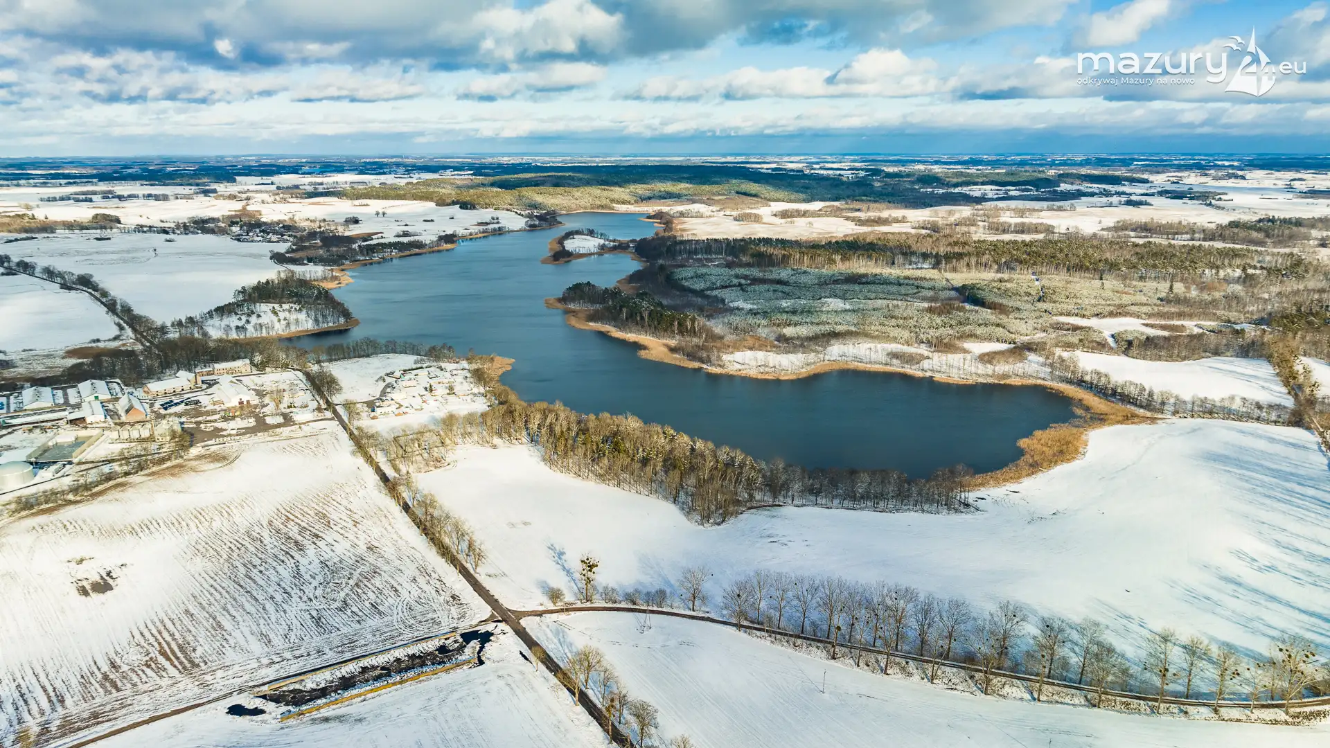 Zimowe Mrągowo, nad jeziorem Czos, okolice amfiteatru z drona