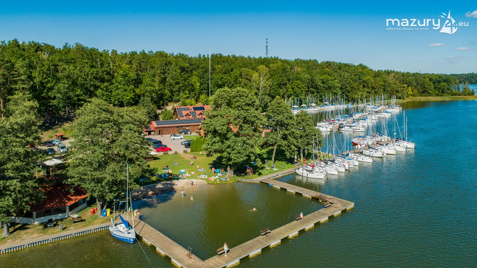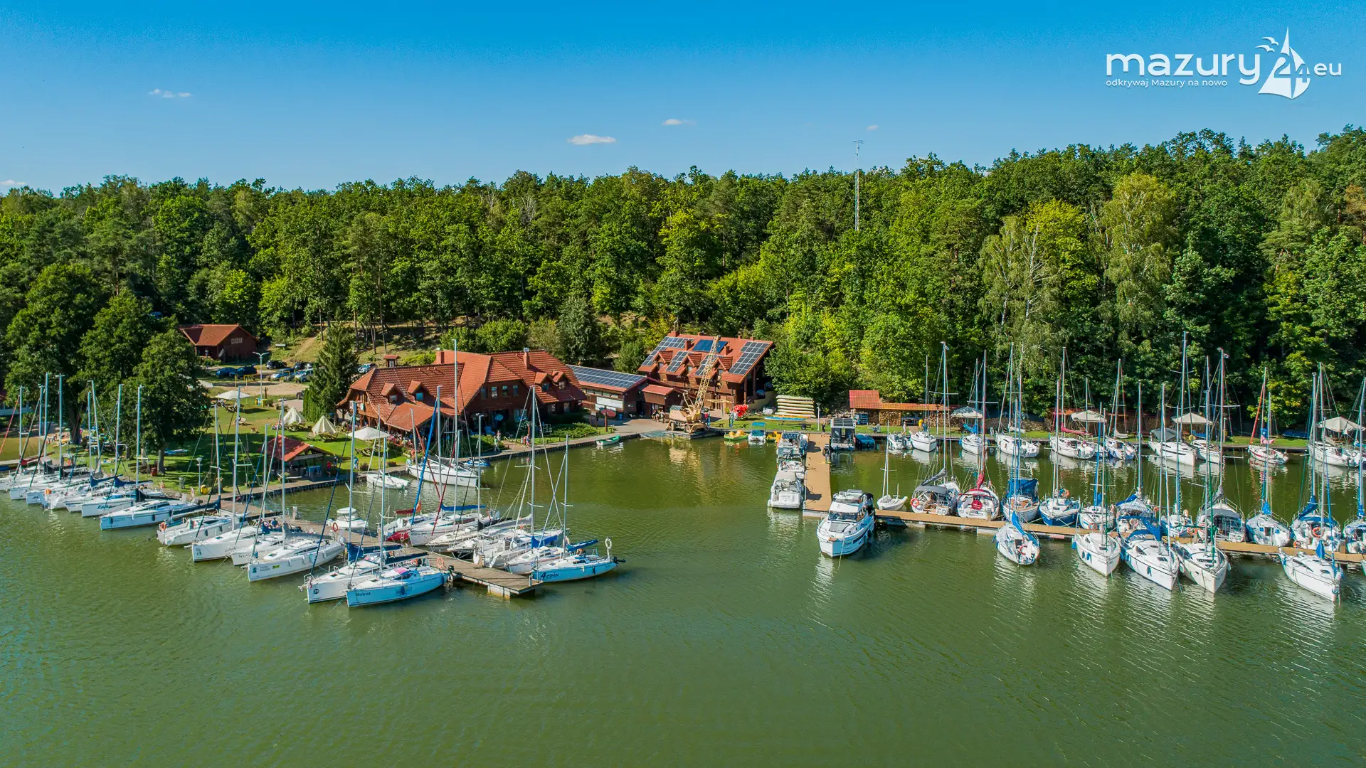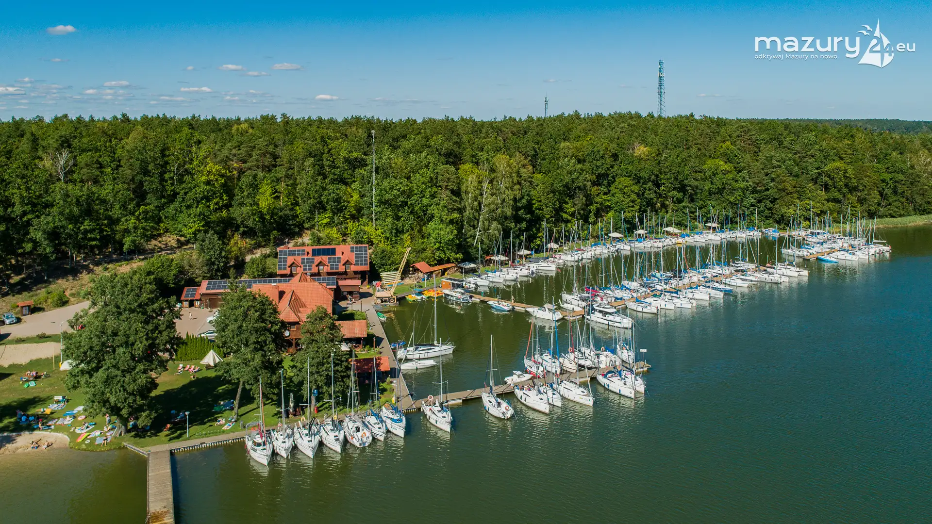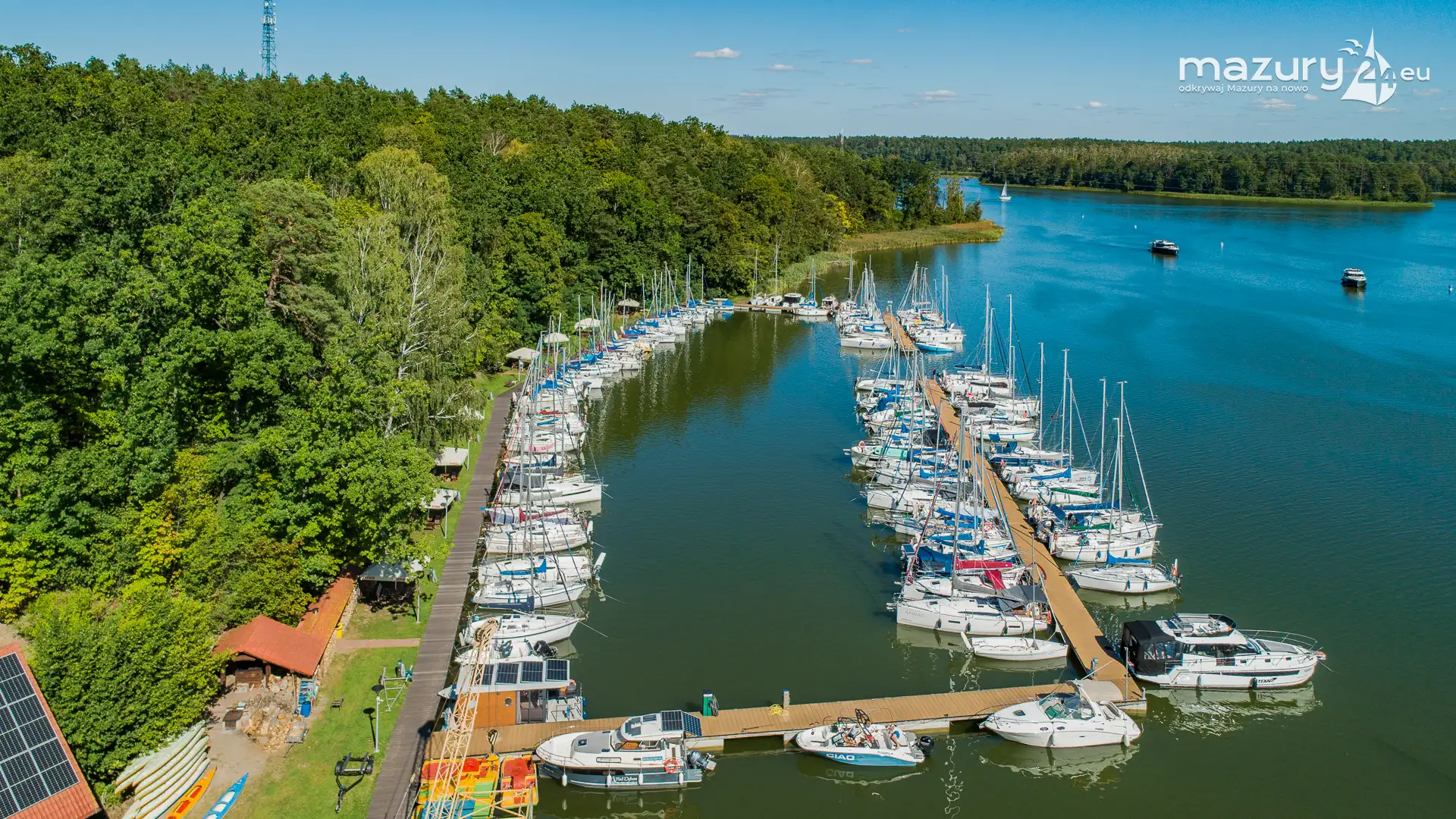 W drugiej połowie sierpnia 2025 wzbiliśmy się nad jezioro Nidzkie by w kadry złapać jedną z piękniejszych, mazurskich marin. Jest to też miejsce, które oddziela żeglarską od motorowodnej części jeziora Nidzkiego. Polecamy to miejsce na wypoczynek, cumowanie, urlop, czy... wynajem sprzętu wodnego lub czarteru.