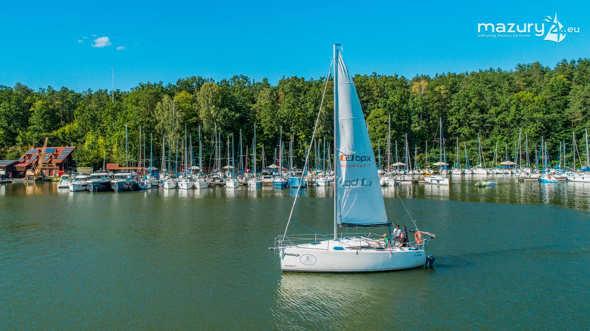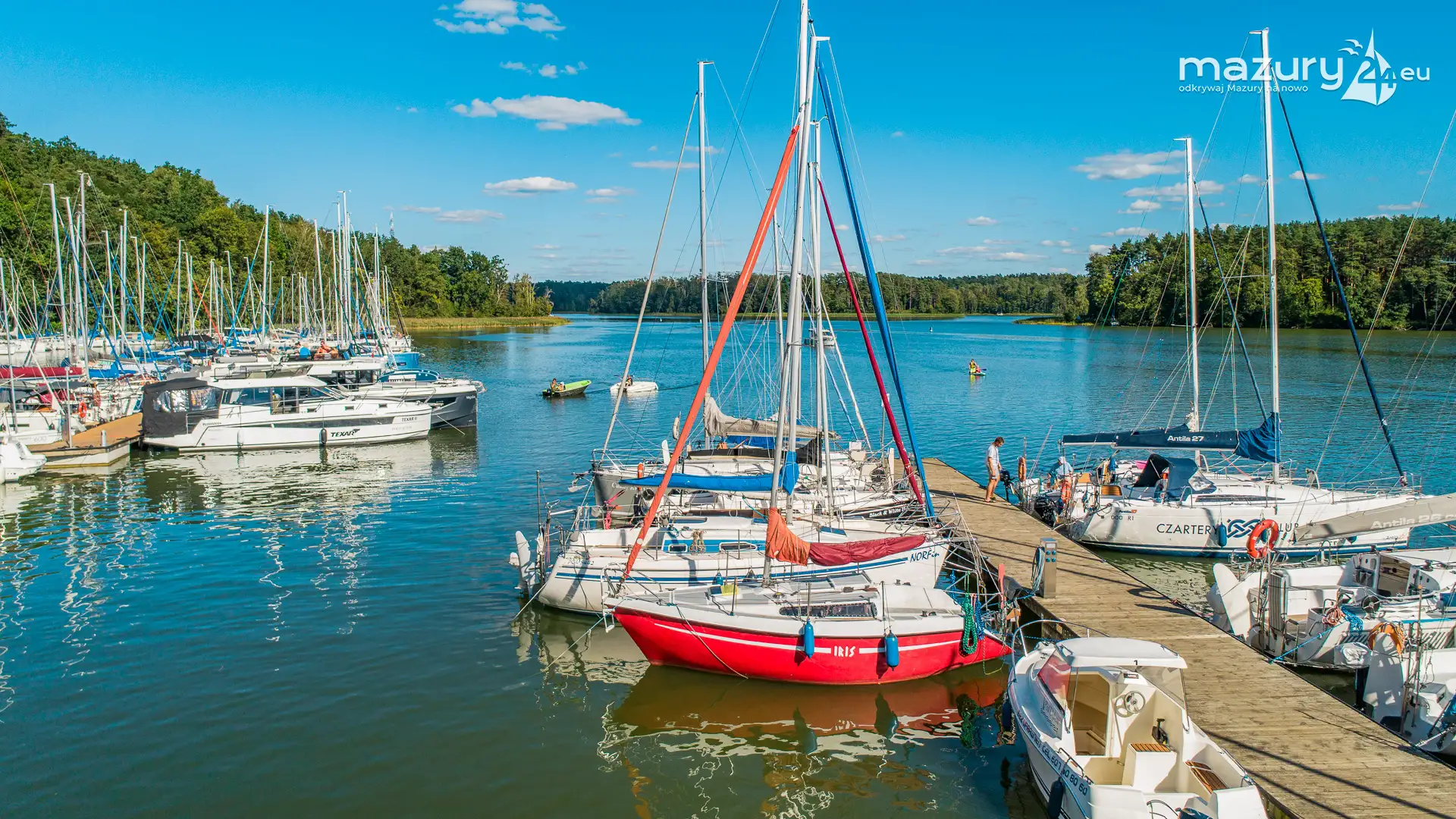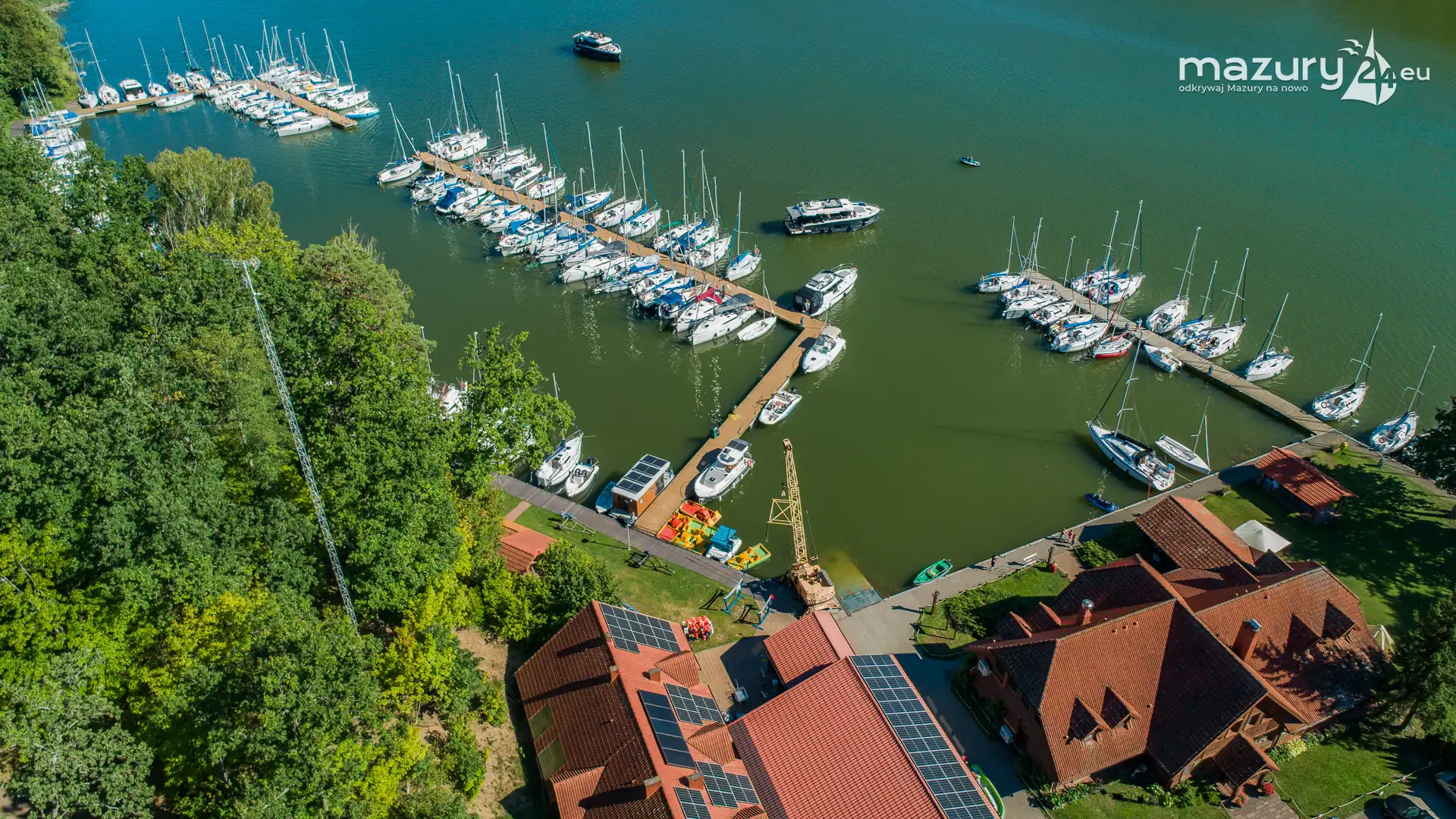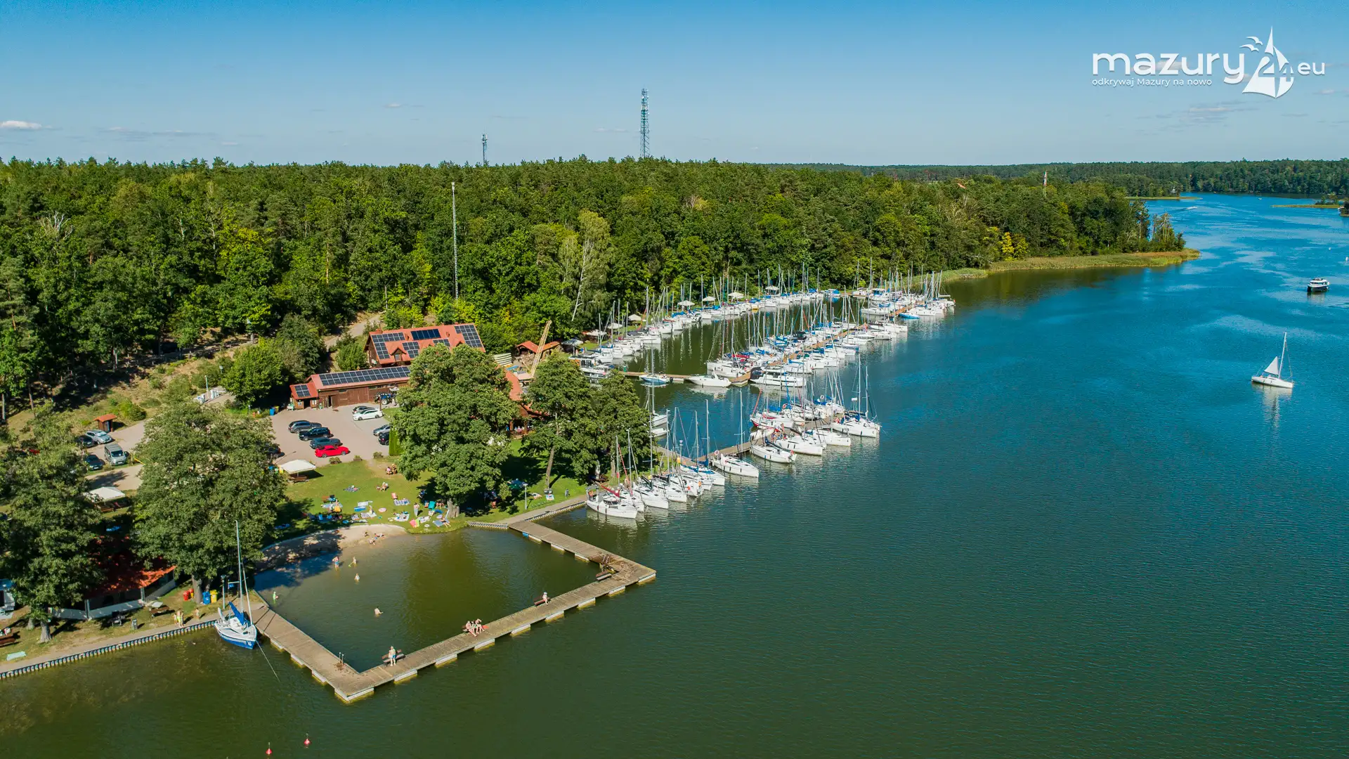 W drugiej połowie sierpnia 2025 wzbiliśmy się nad jezioro Nidzkie by w kadry złapać jedną z piękniejszych, mazurskich marin. Jest to też miejsce, które oddziela żeglarską od motorowodnej części jeziora Nidzkiego. Polecamy to miejsce na wypoczynek, cumowanie, urlop, czy... wynajem sprzętu wodnego lub czarteru.