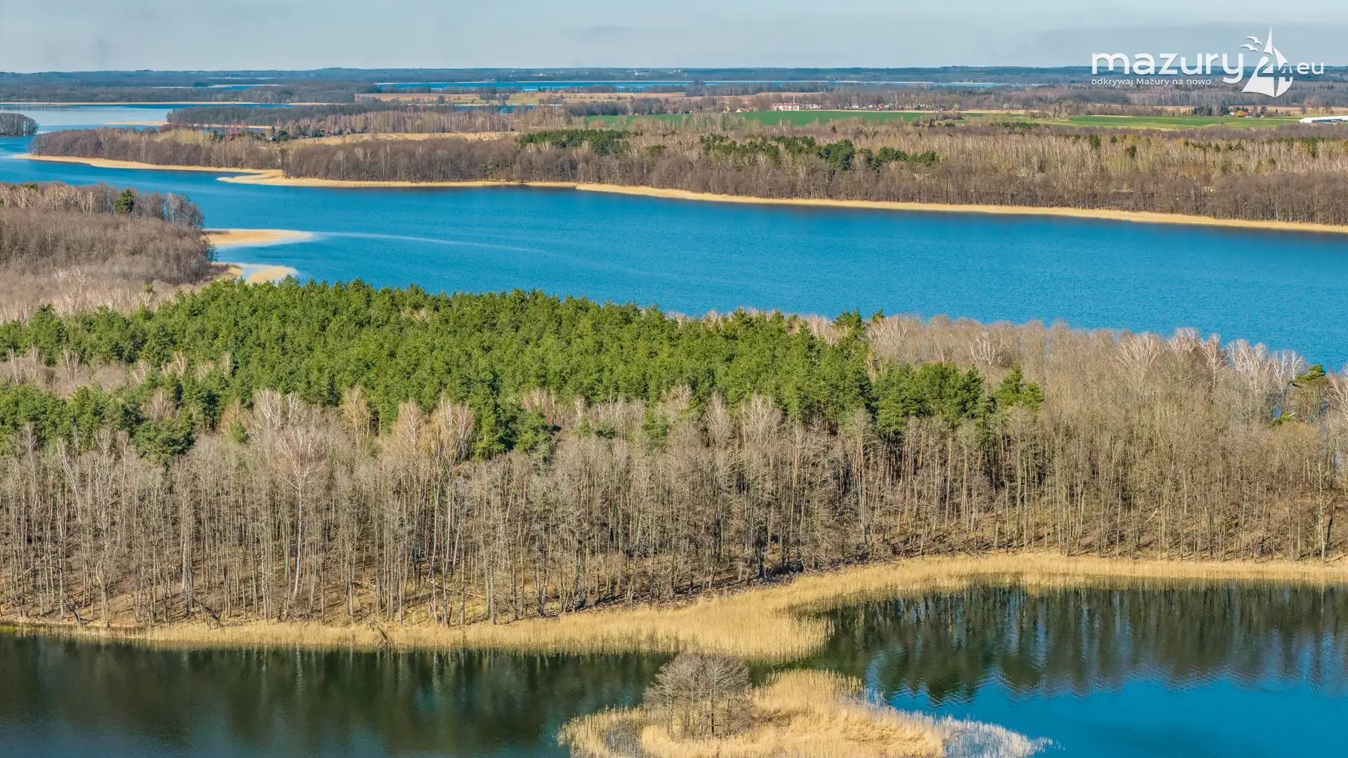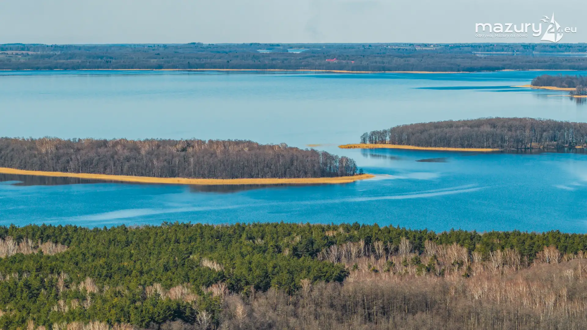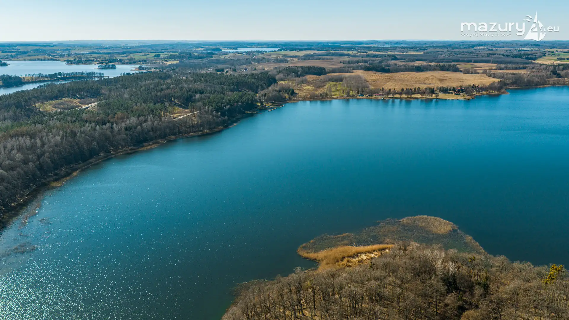 Wiosenne Śniardwy i Niedźwiedzi Róg z lotu ptaka, kwiecień 2026 r.