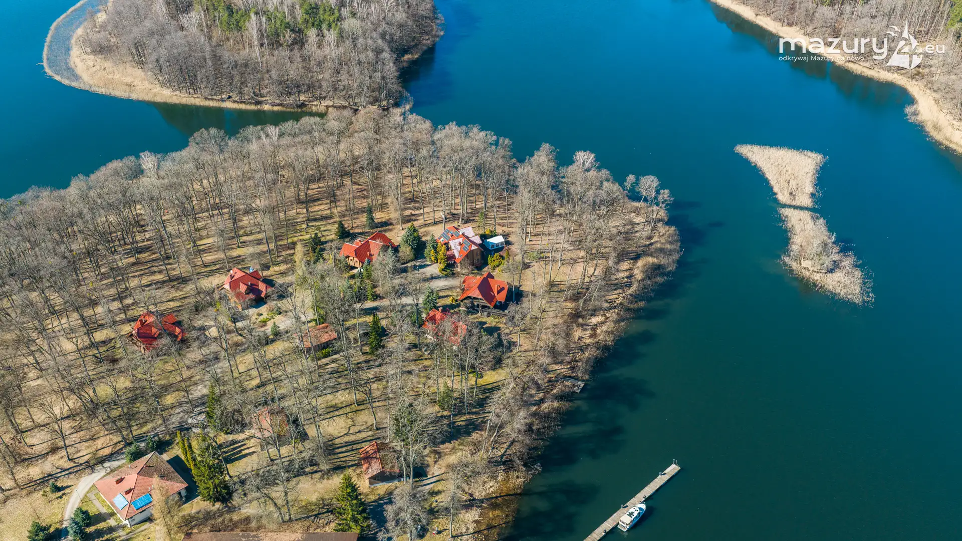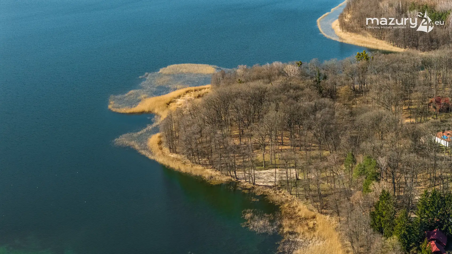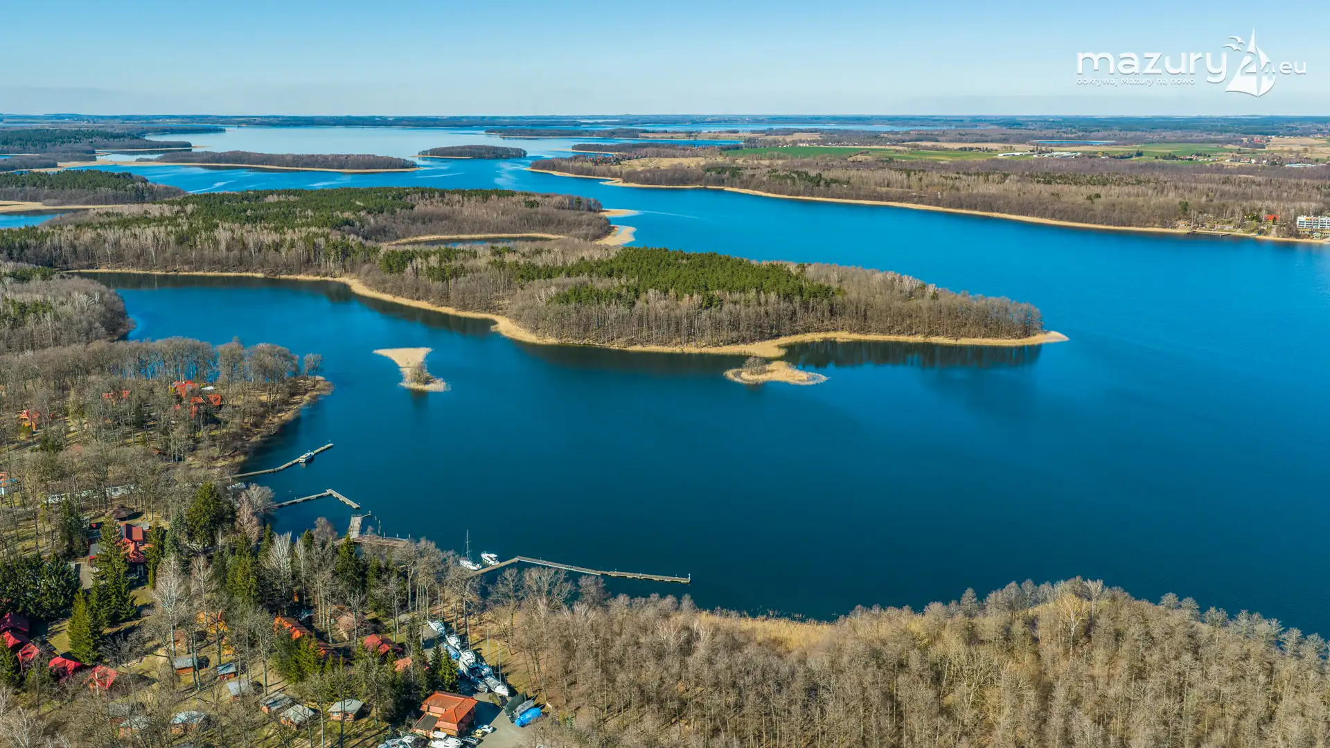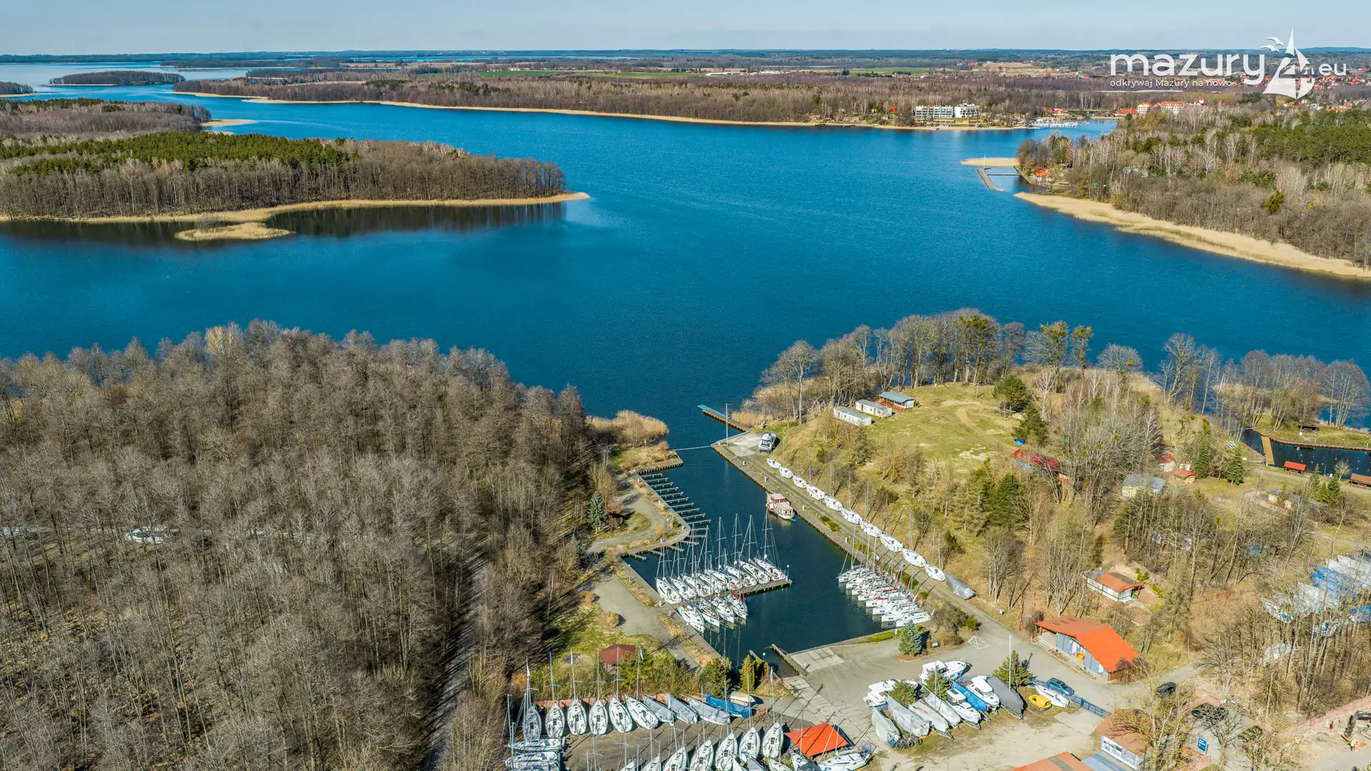 Wiosenne Śniardwy i Niedźwiedzi Róg z lotu ptaka, kwiecień 2026 r.