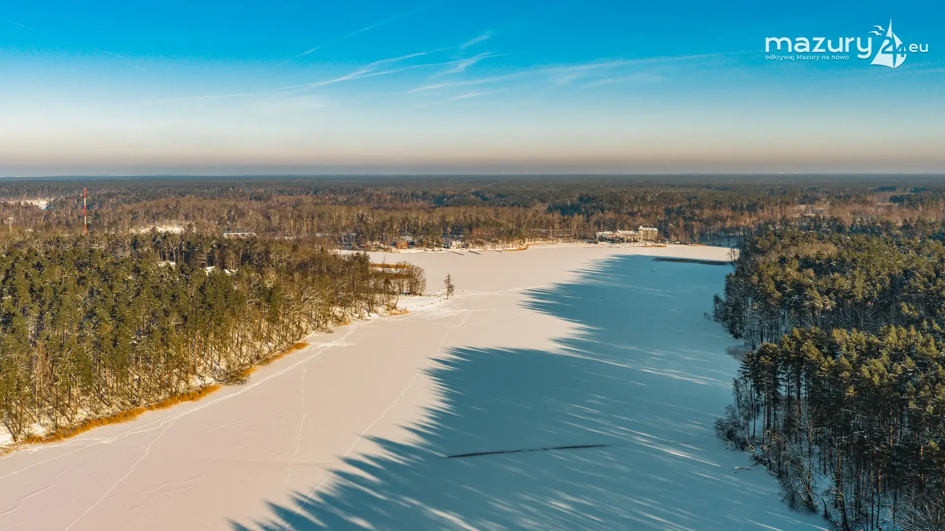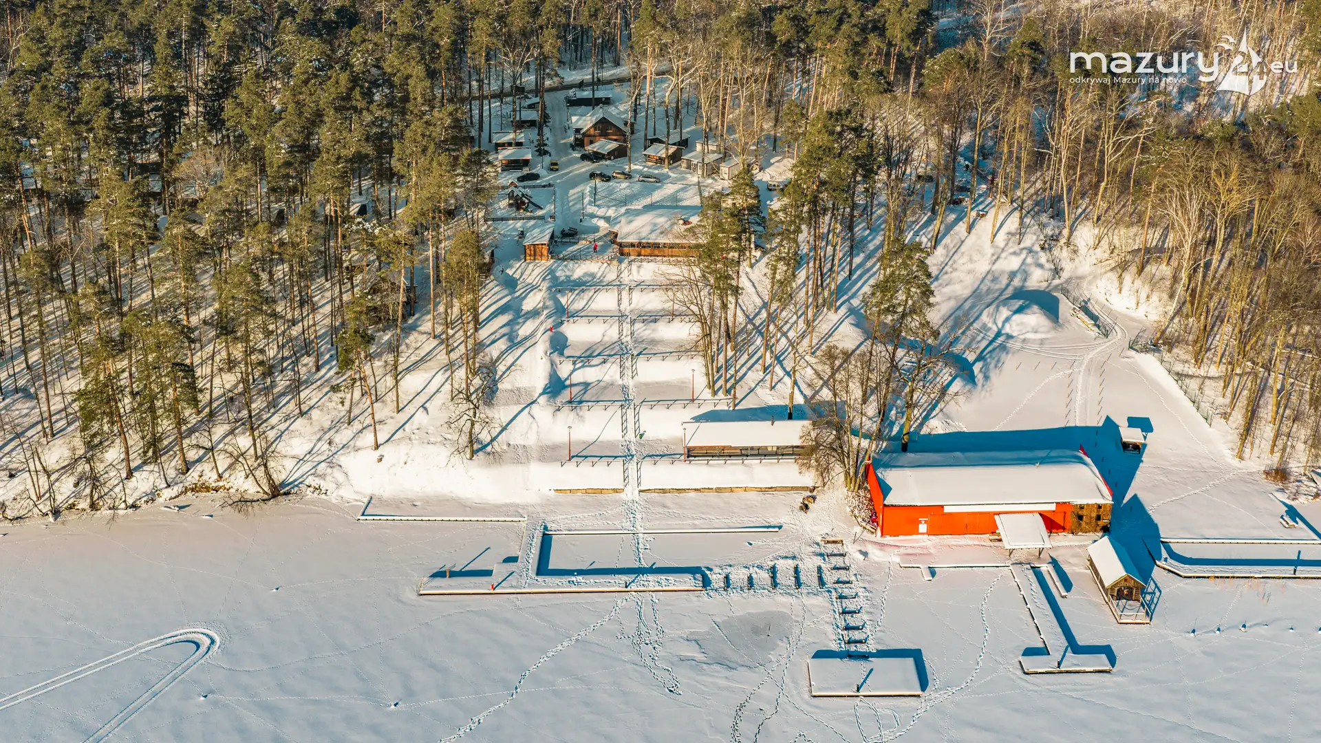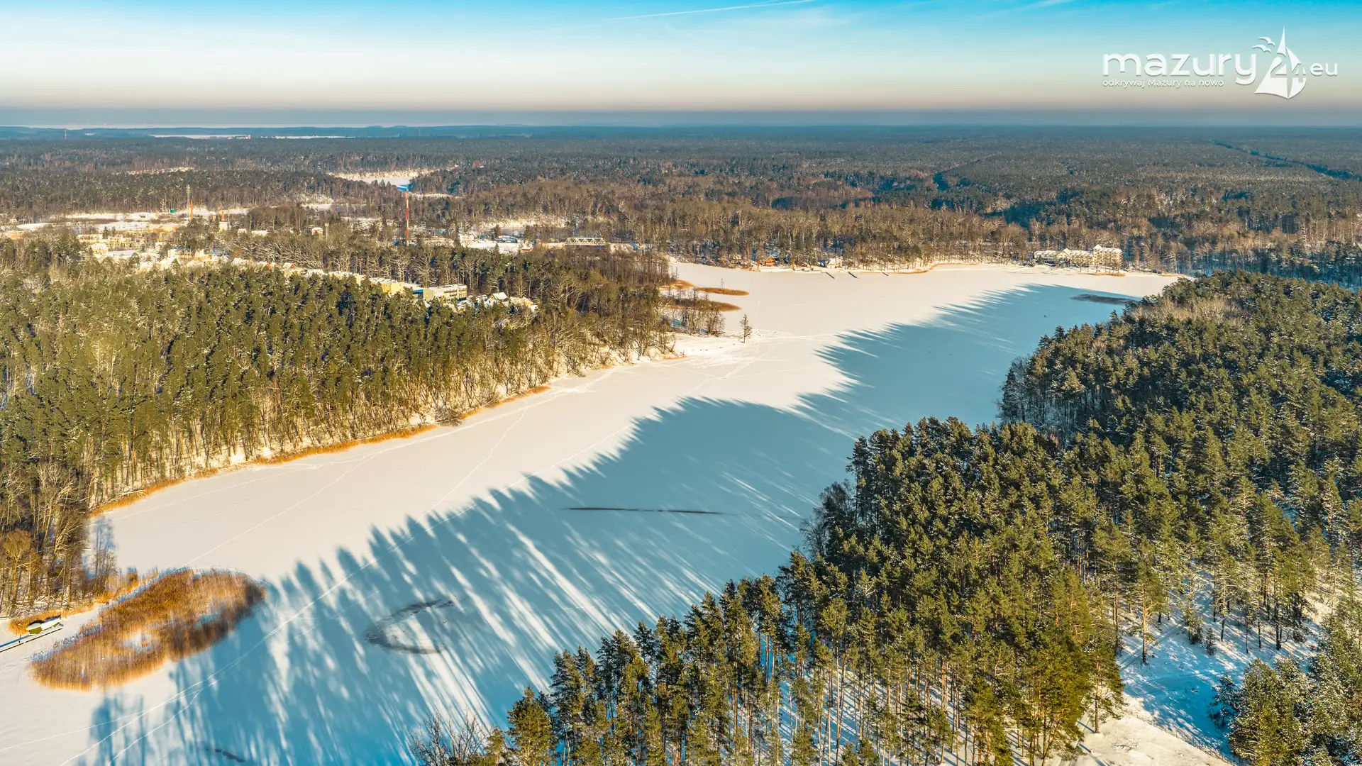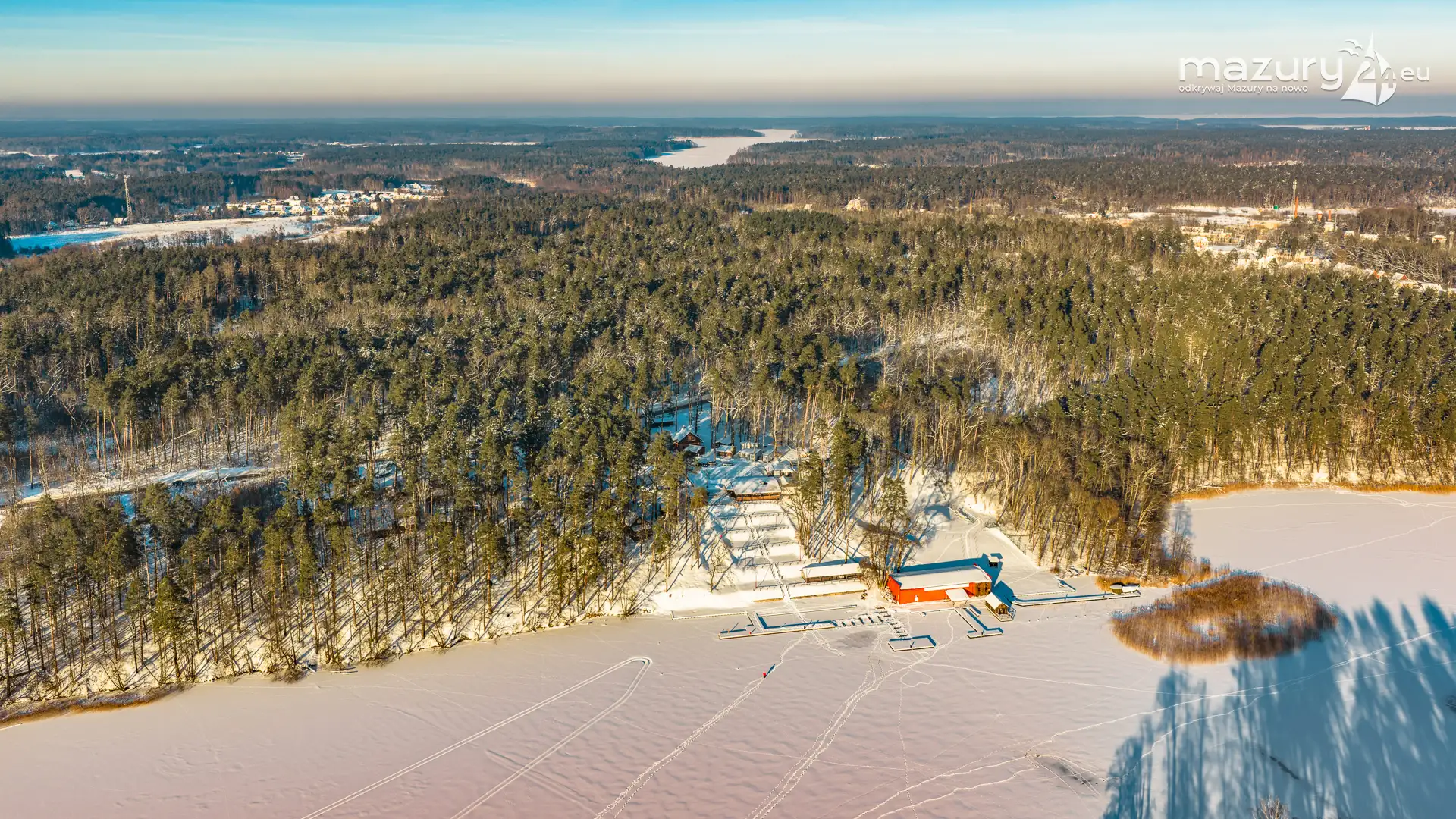 Kolejna, zimowa odsłona jeziora Nidzkiego, Rucianego-Nidy oraz naszego portu partnerskiego OW Wodnik z lotu ptaka. Mazury skąpane w śniegu, z zamarzniętymi jeziorami mają zupełnie inne kolory, a nawet kształty... Nie wyglądają jak kraina tysiąca jezior... tylko jak kraina tysiąca pól i łąk otoczonych lasami, schowanych mocno pod śniegiem...