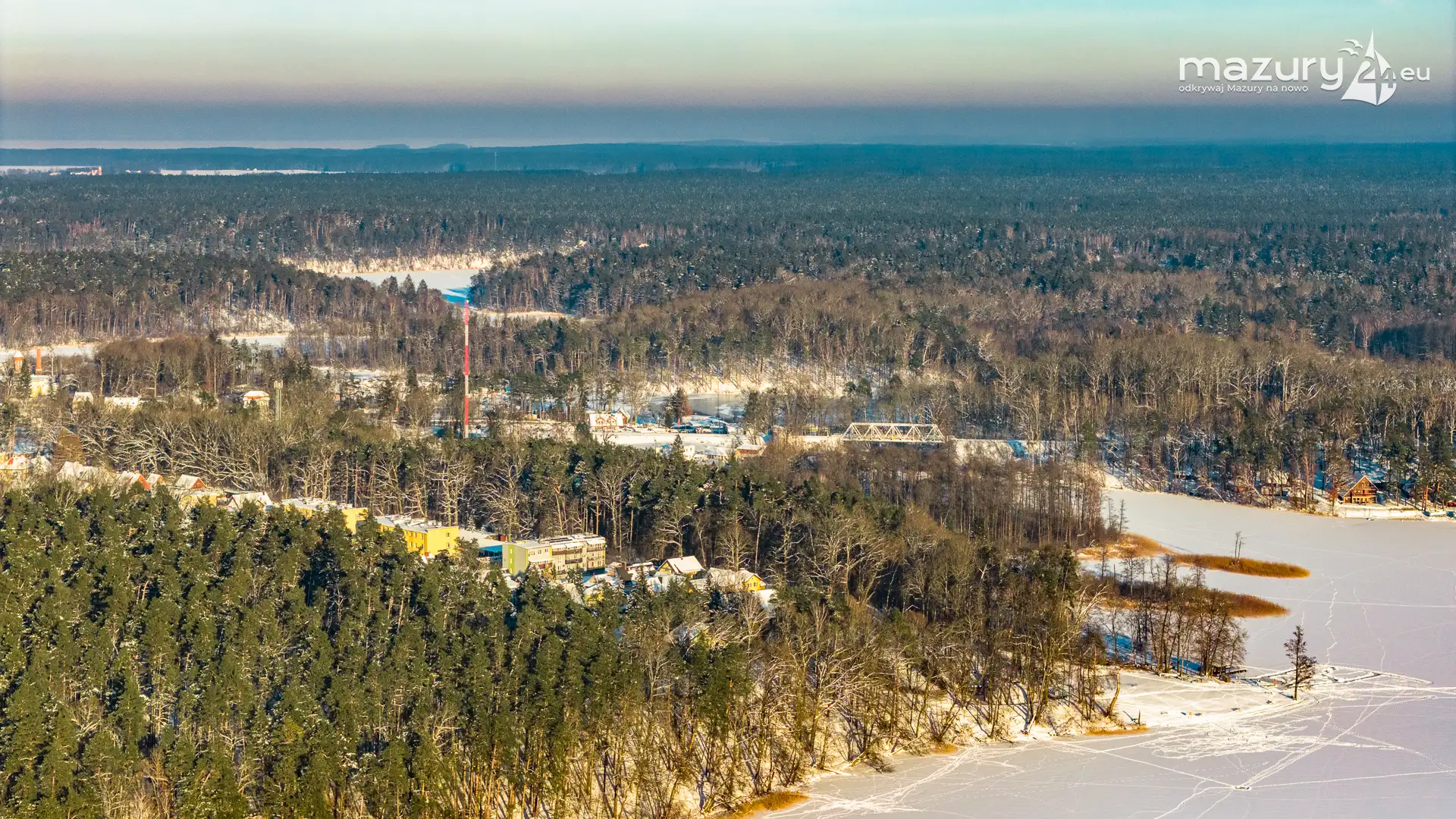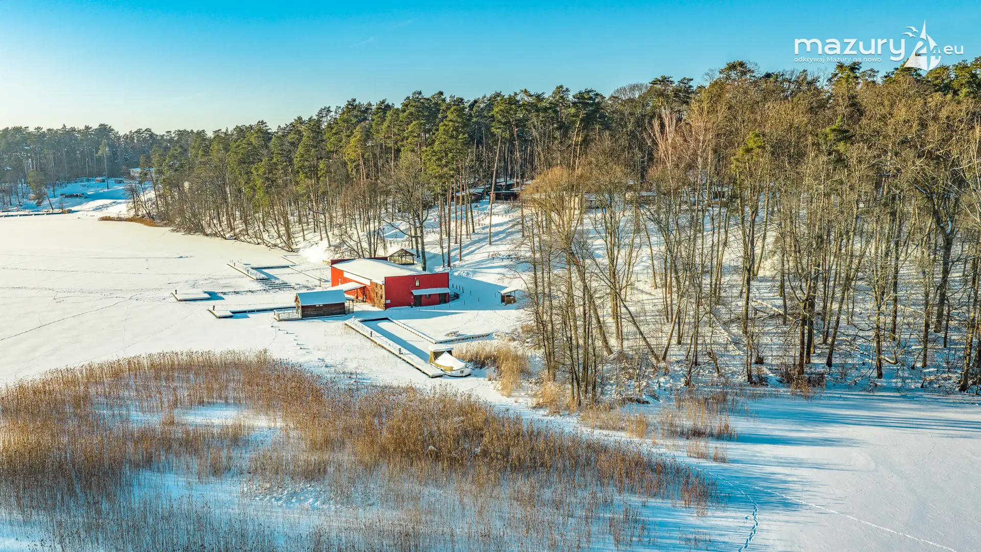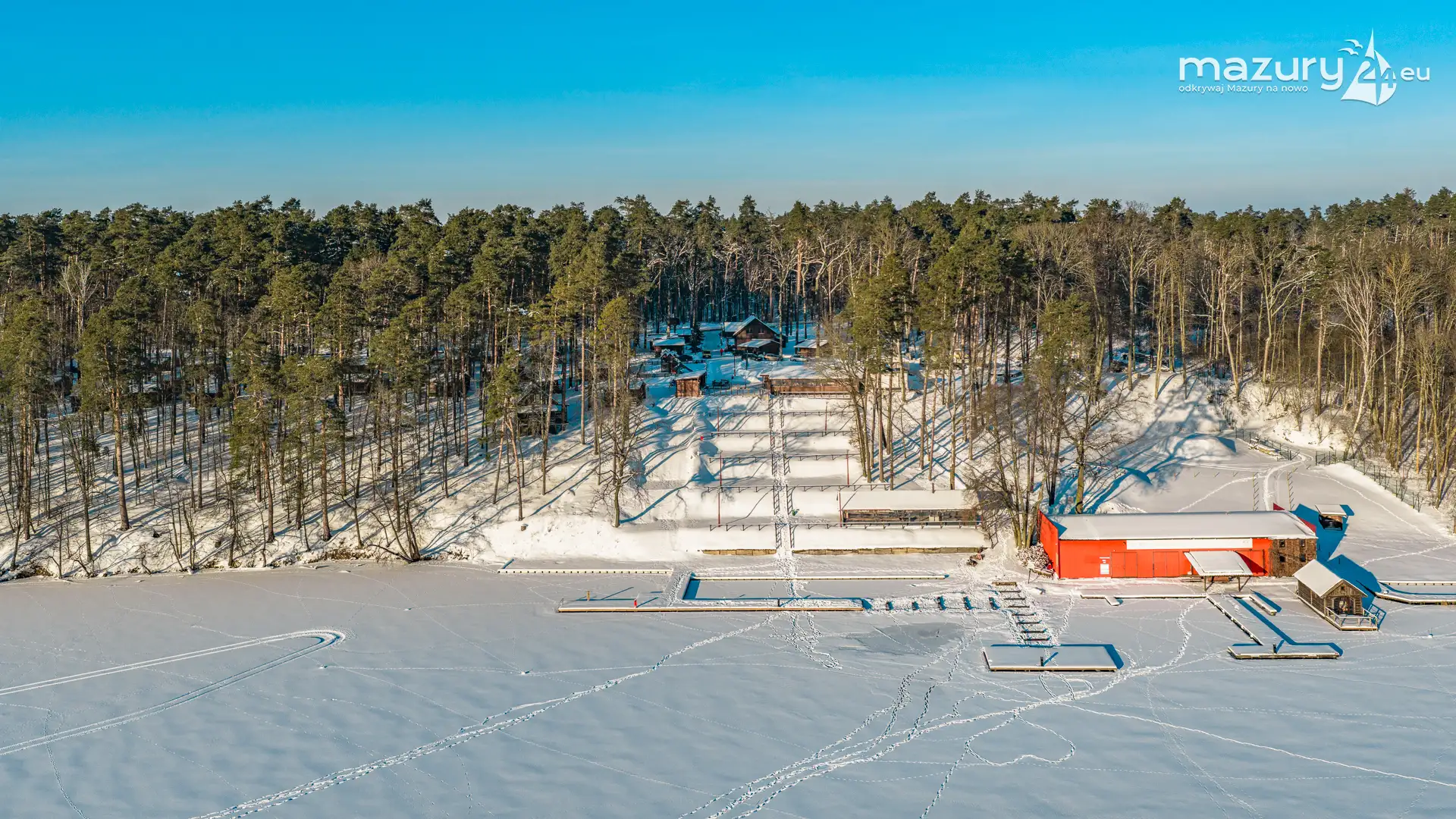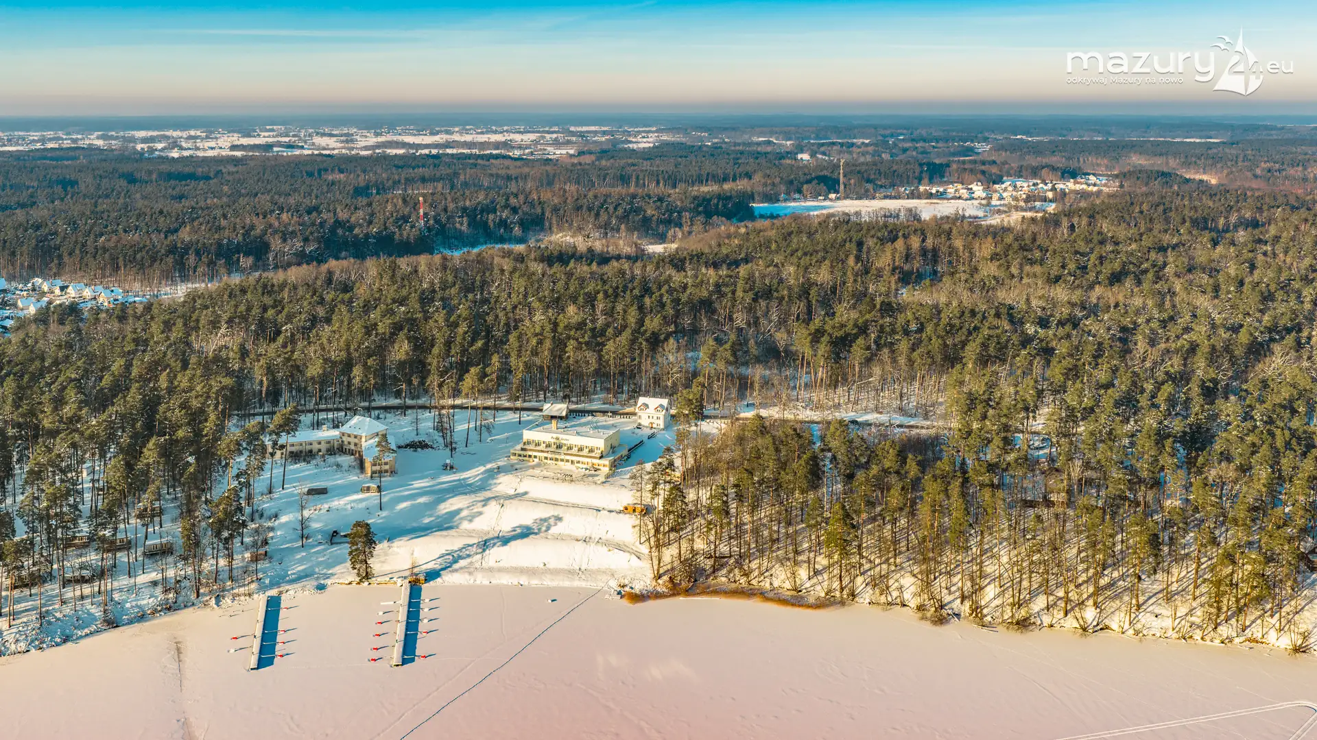 Kolejna, zimowa odsłona jeziora Nidzkiego, Rucianego-Nidy oraz naszego portu partnerskiego OW Wodnik z lotu ptaka. Mazury skąpane w śniegu, z zamarzniętymi jeziorami mają zupełnie inne kolory, a nawet kształty... Nie wyglądają jak kraina tysiąca jezior... tylko jak kraina tysiąca pól i łąk otoczonych lasami, schowanych mocno pod śniegiem...