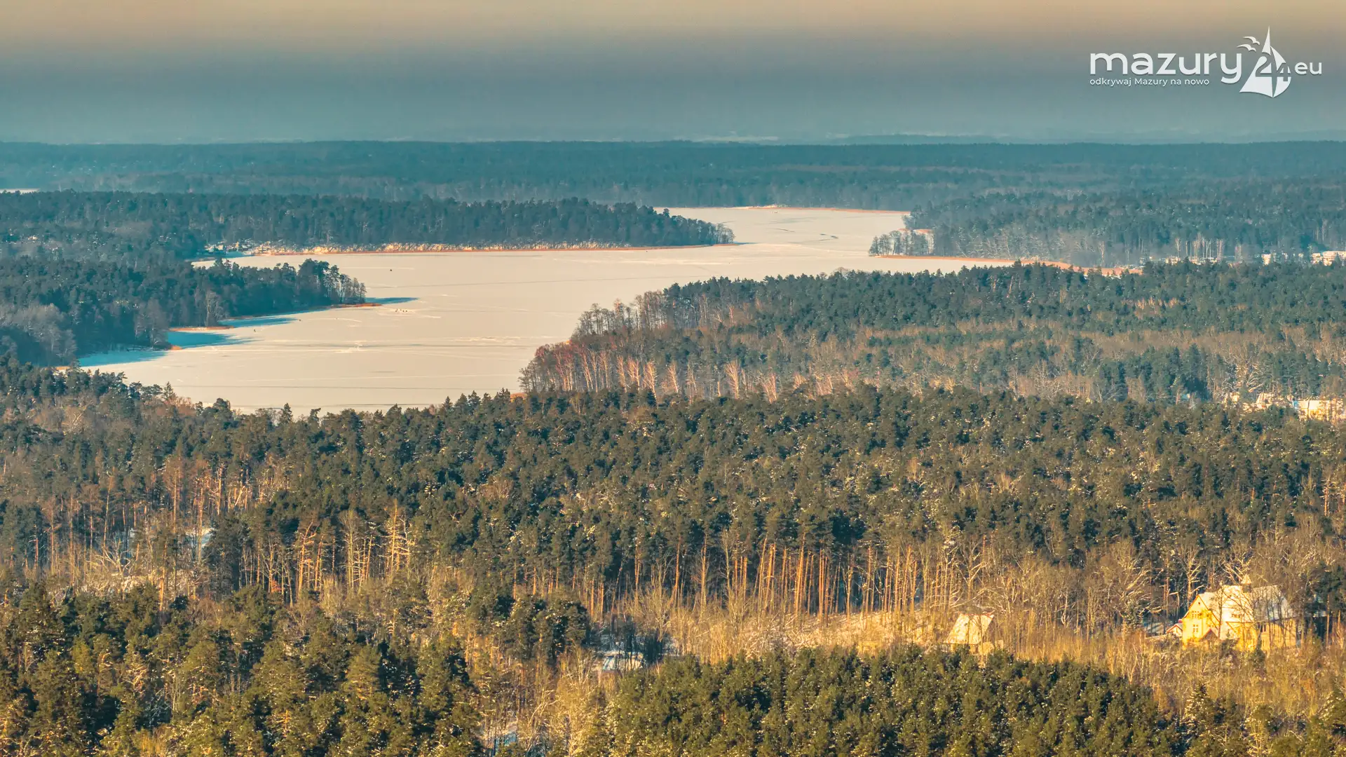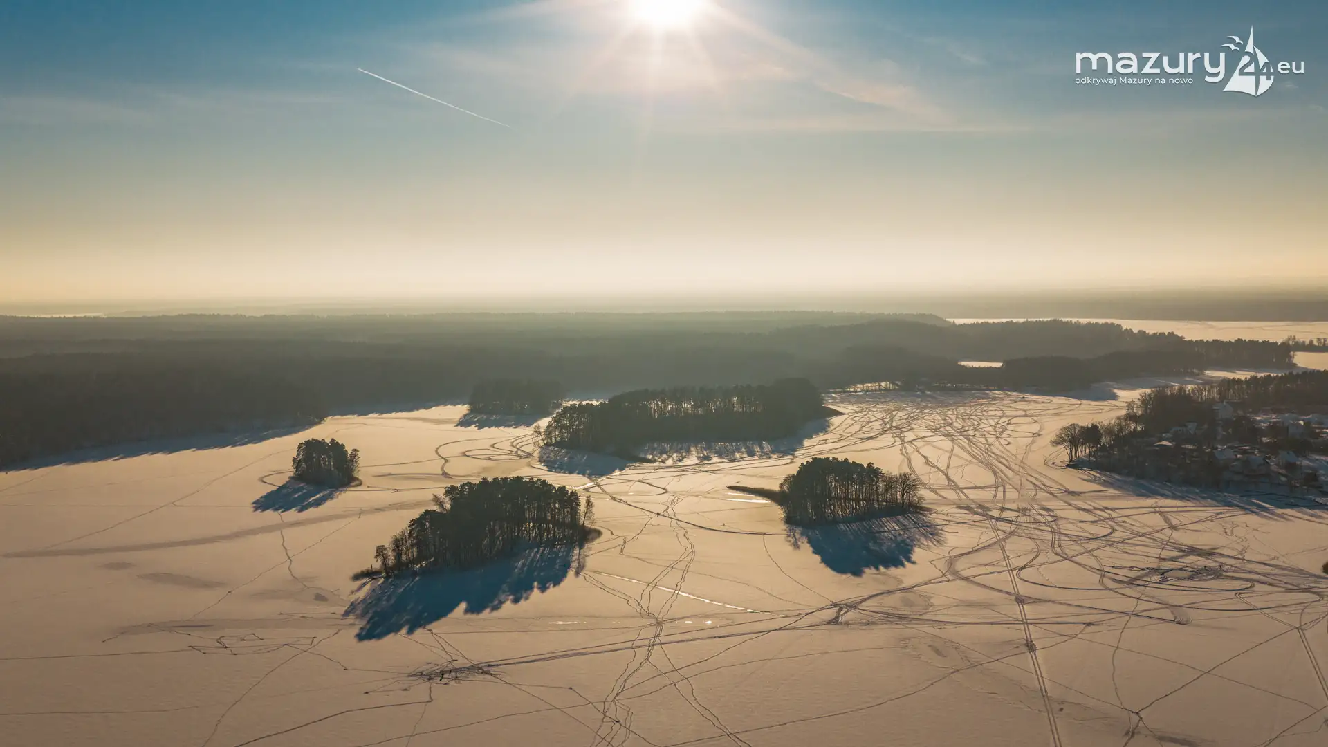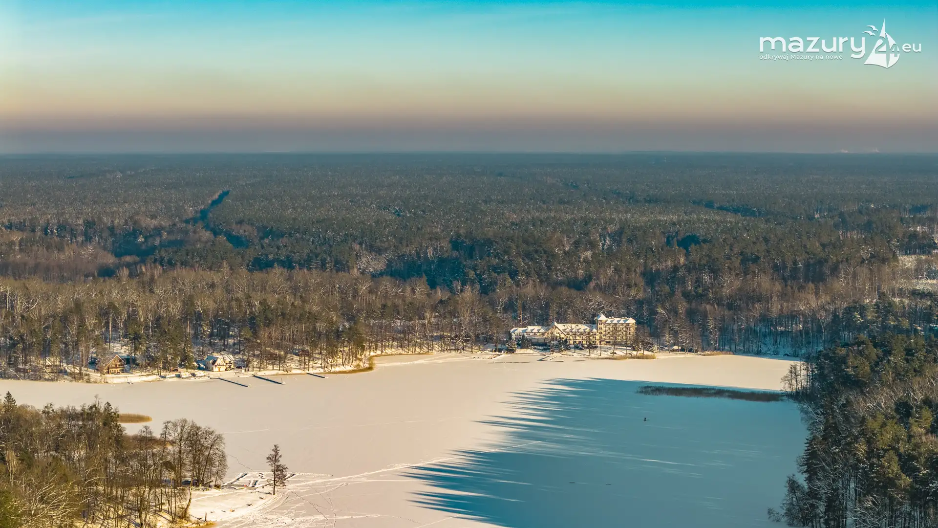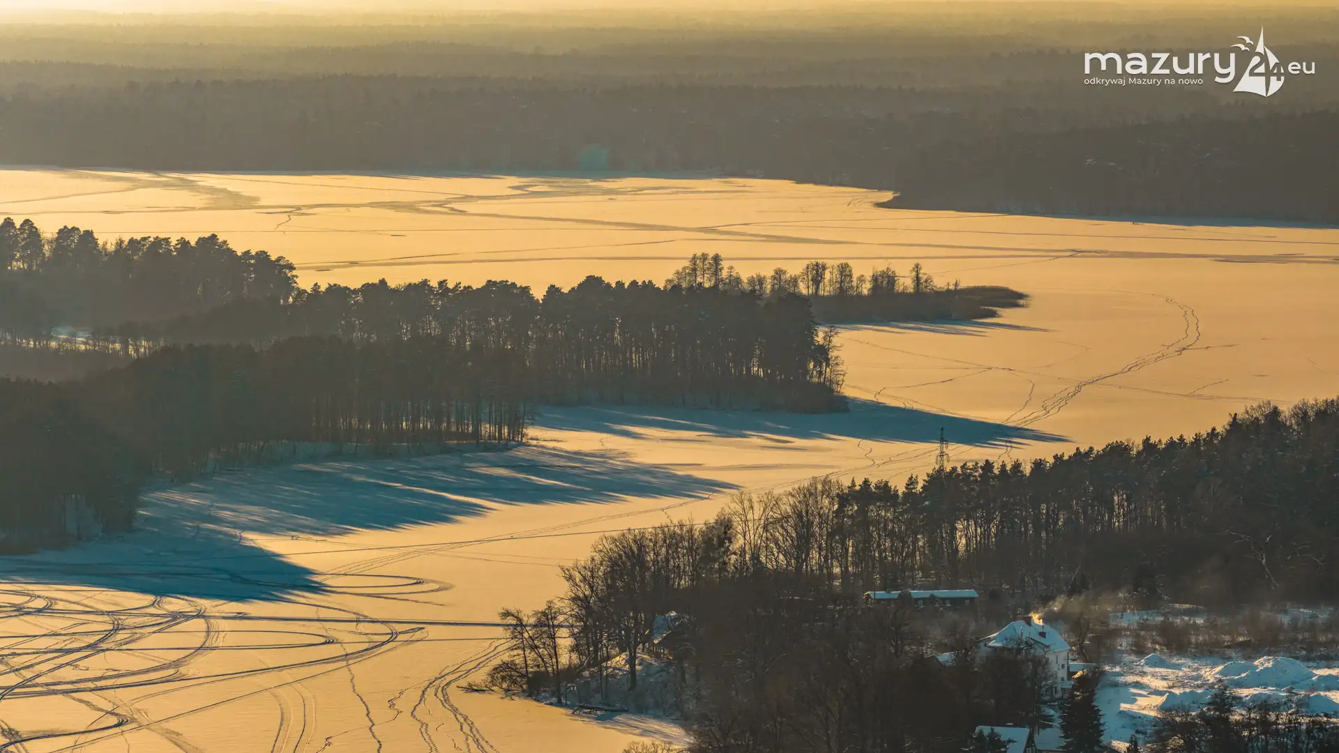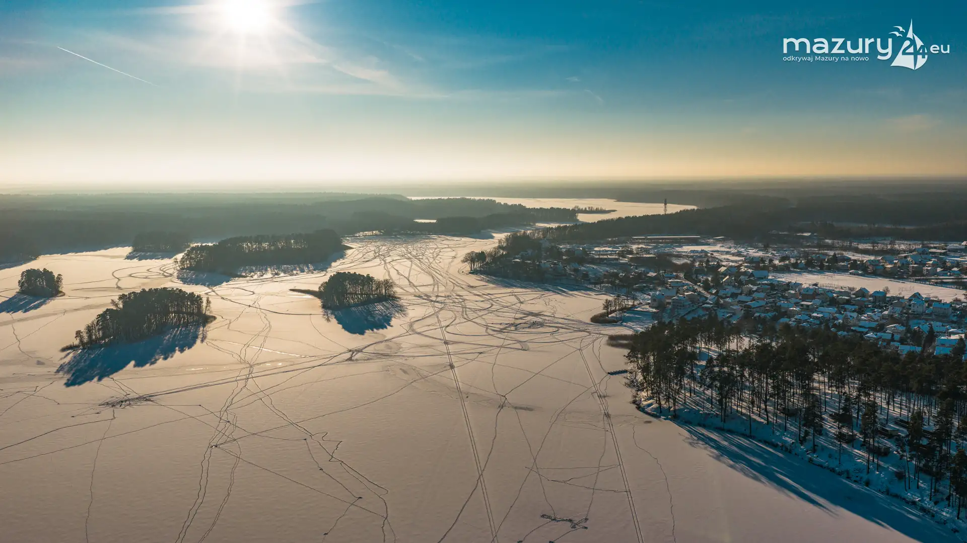 Zachód słońca nad jeziorem Śniardwy z drona, styczeń 2026 r.