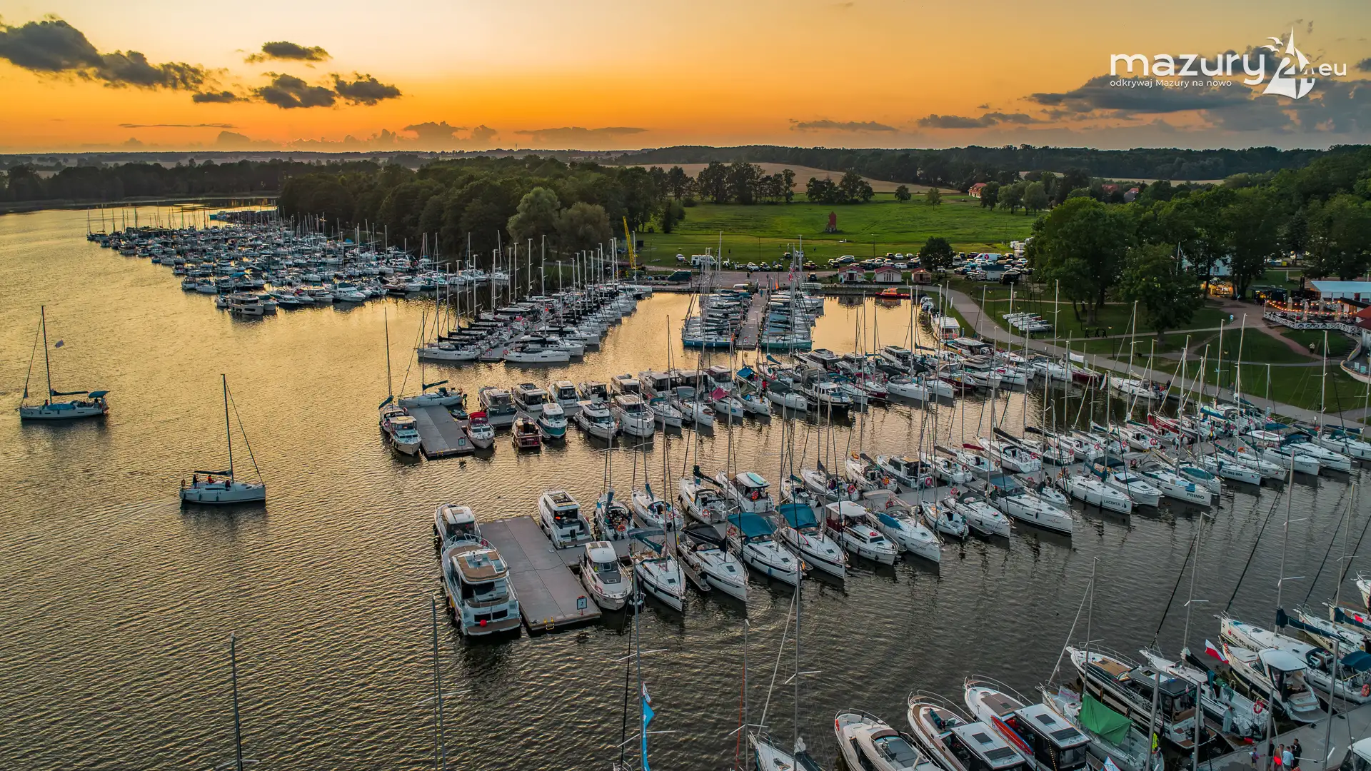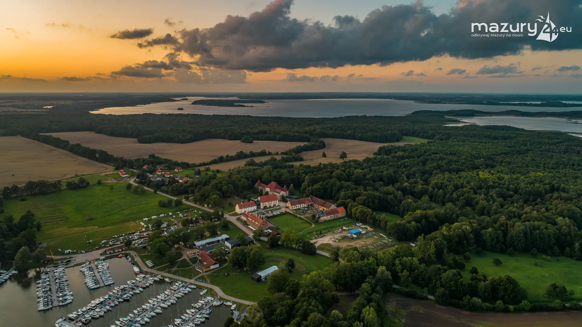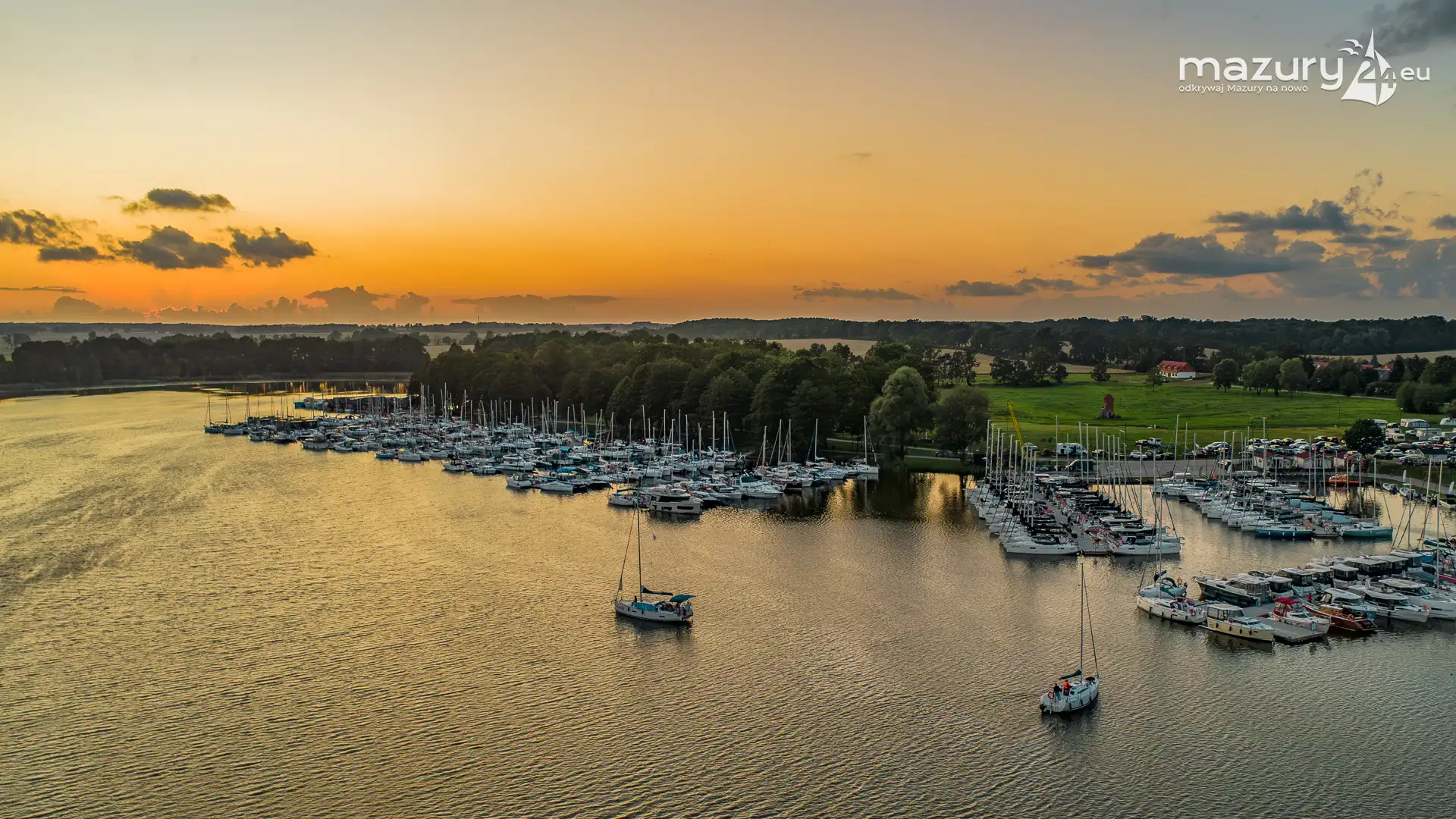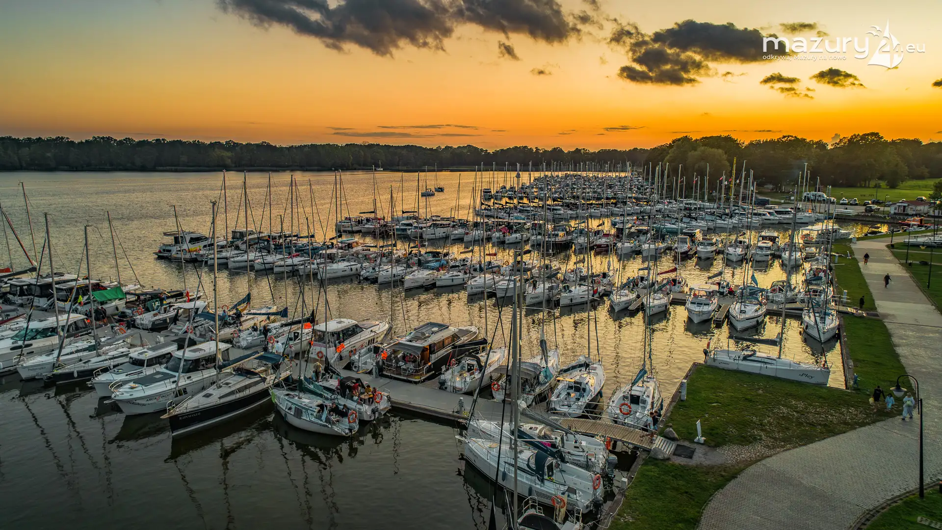 Port PTTK o zachodzie słońca z drona, sierpień 2025 r.