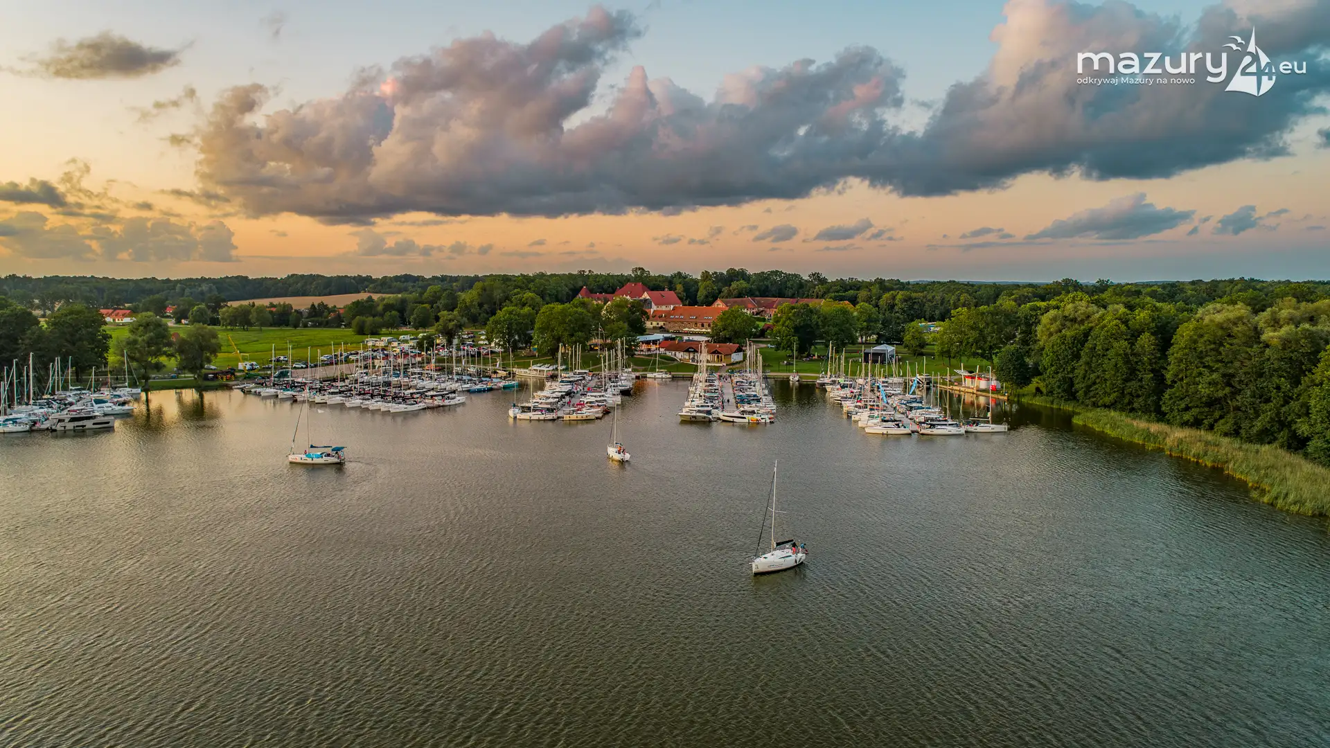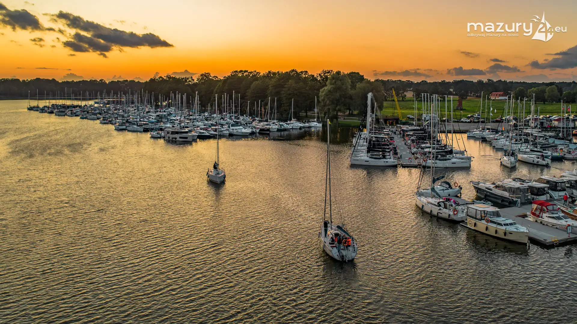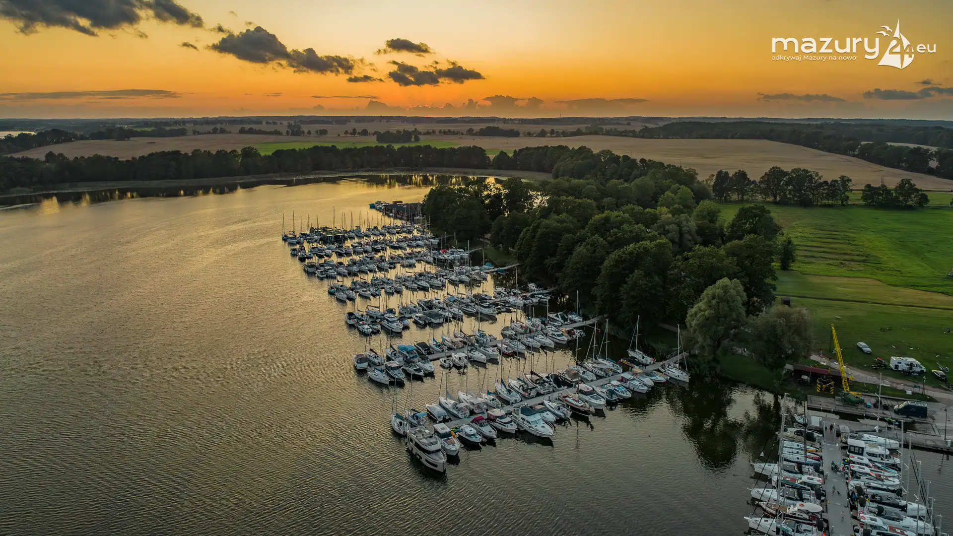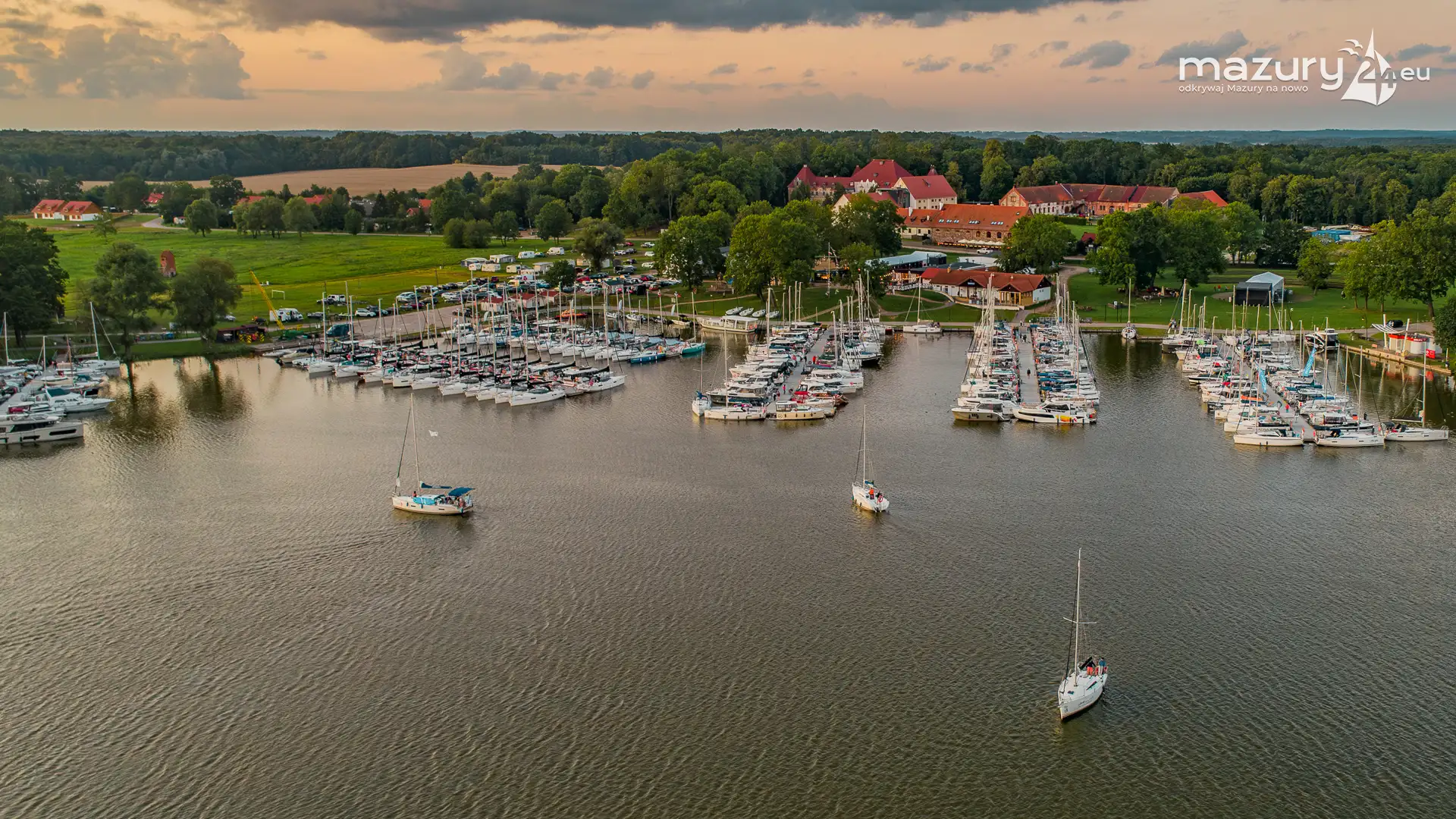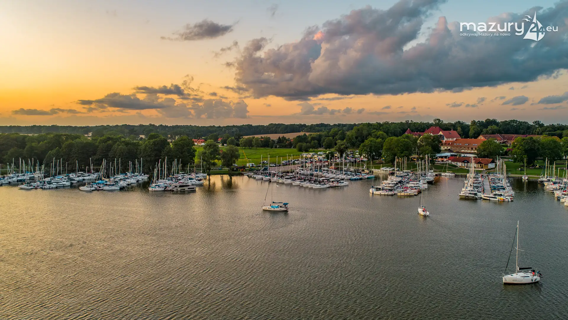Port PTTK o zachodzie słońca z drona, sierpień 2025 r.