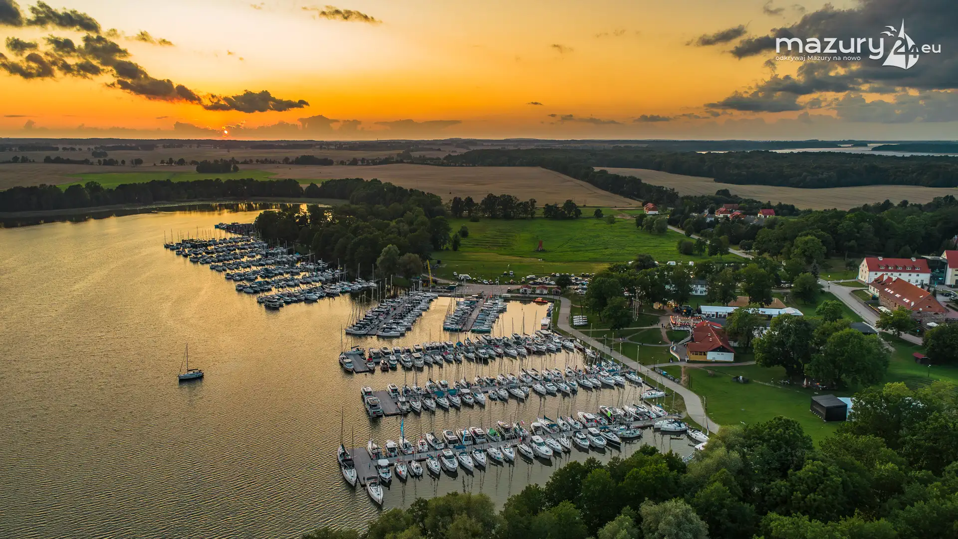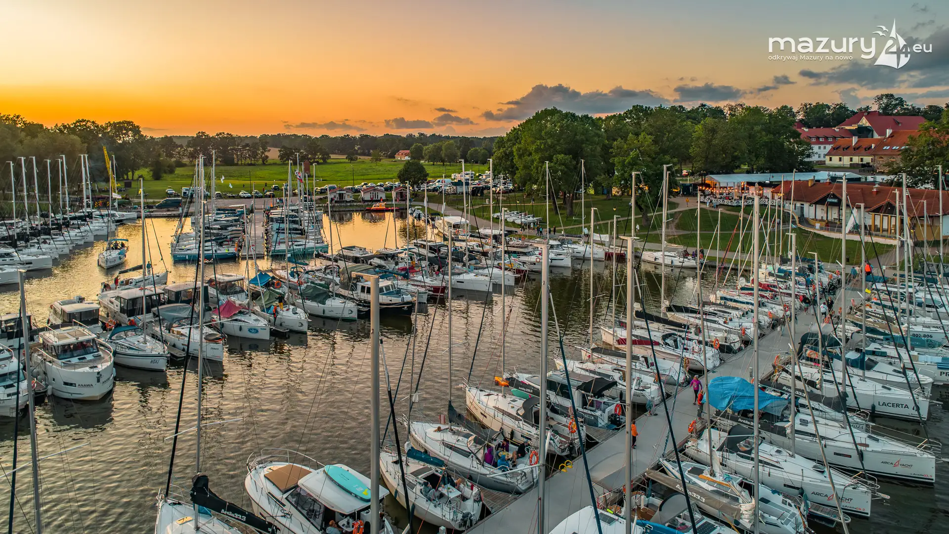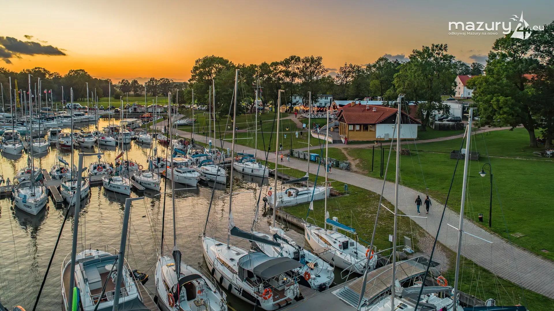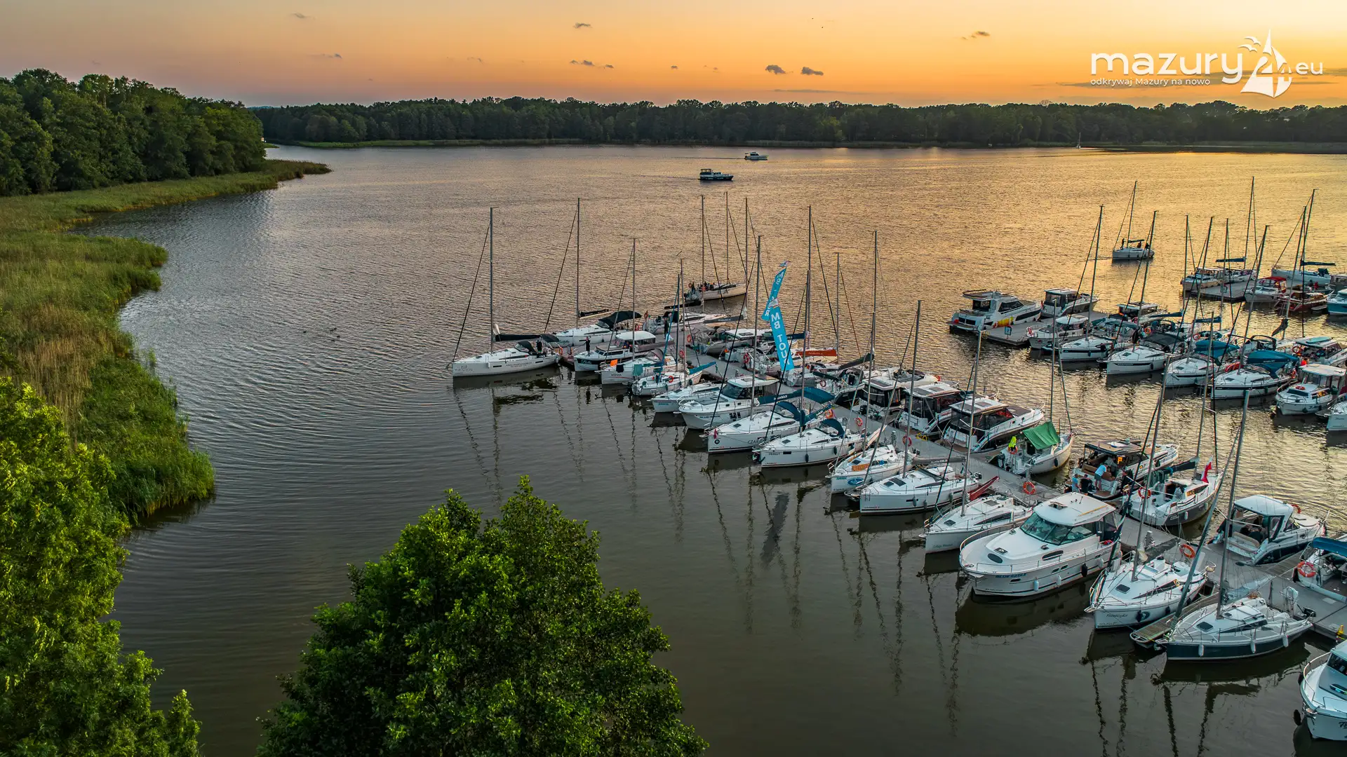 Port PTTK o zachodzie słońca z drona, sierpień 2025 r.