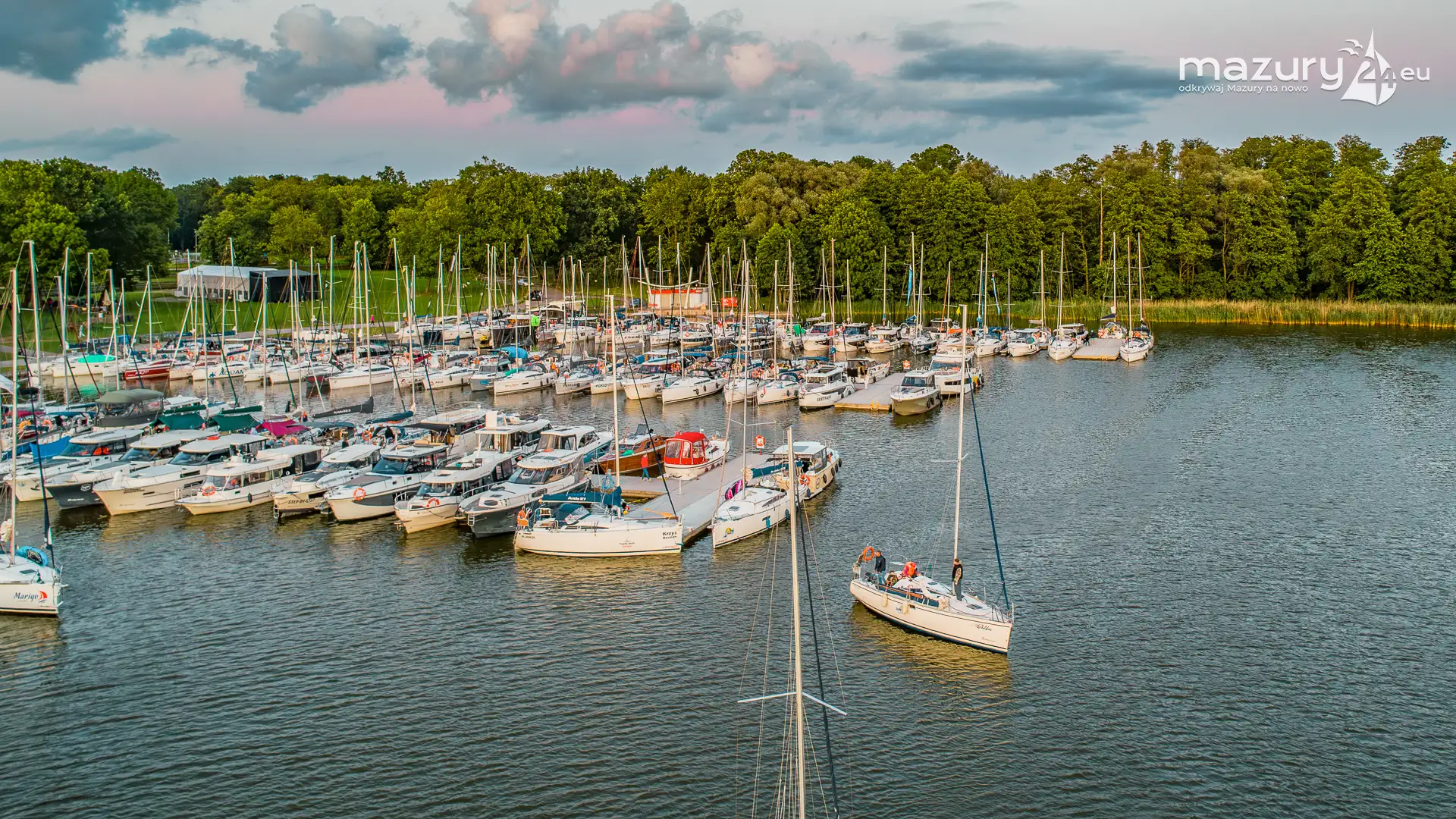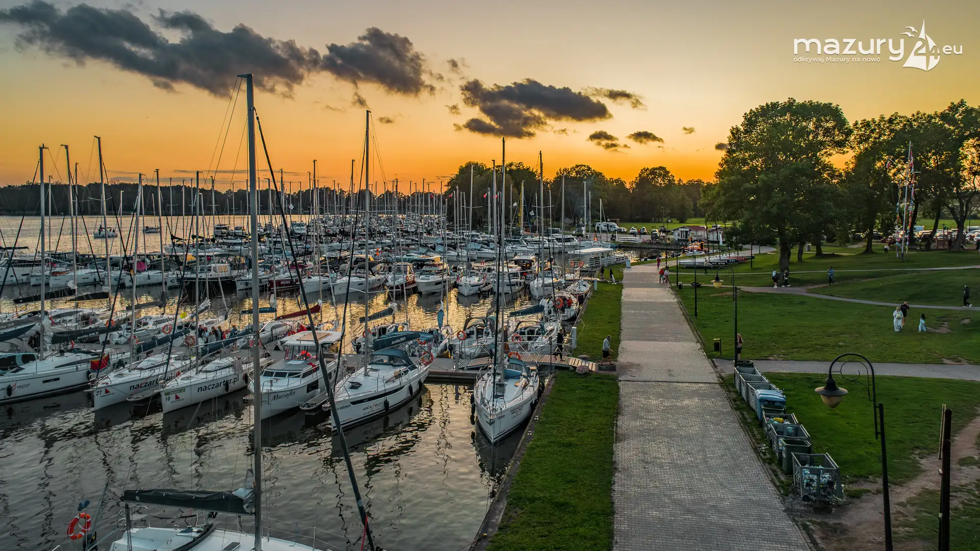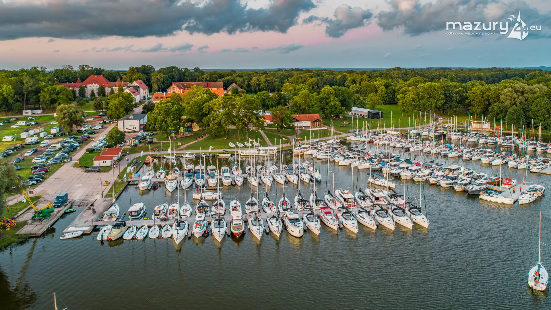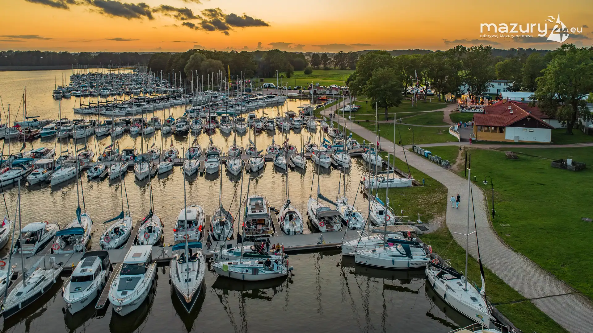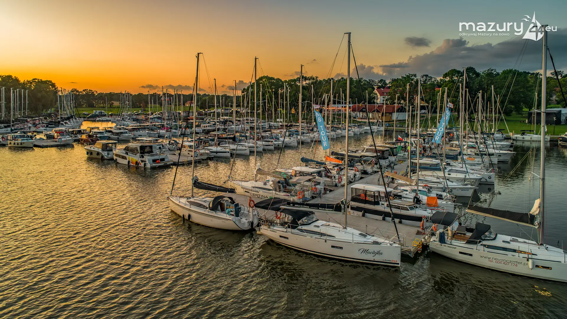 Port PTTK o zachodzie słońca z drona, sierpień 2025 r.