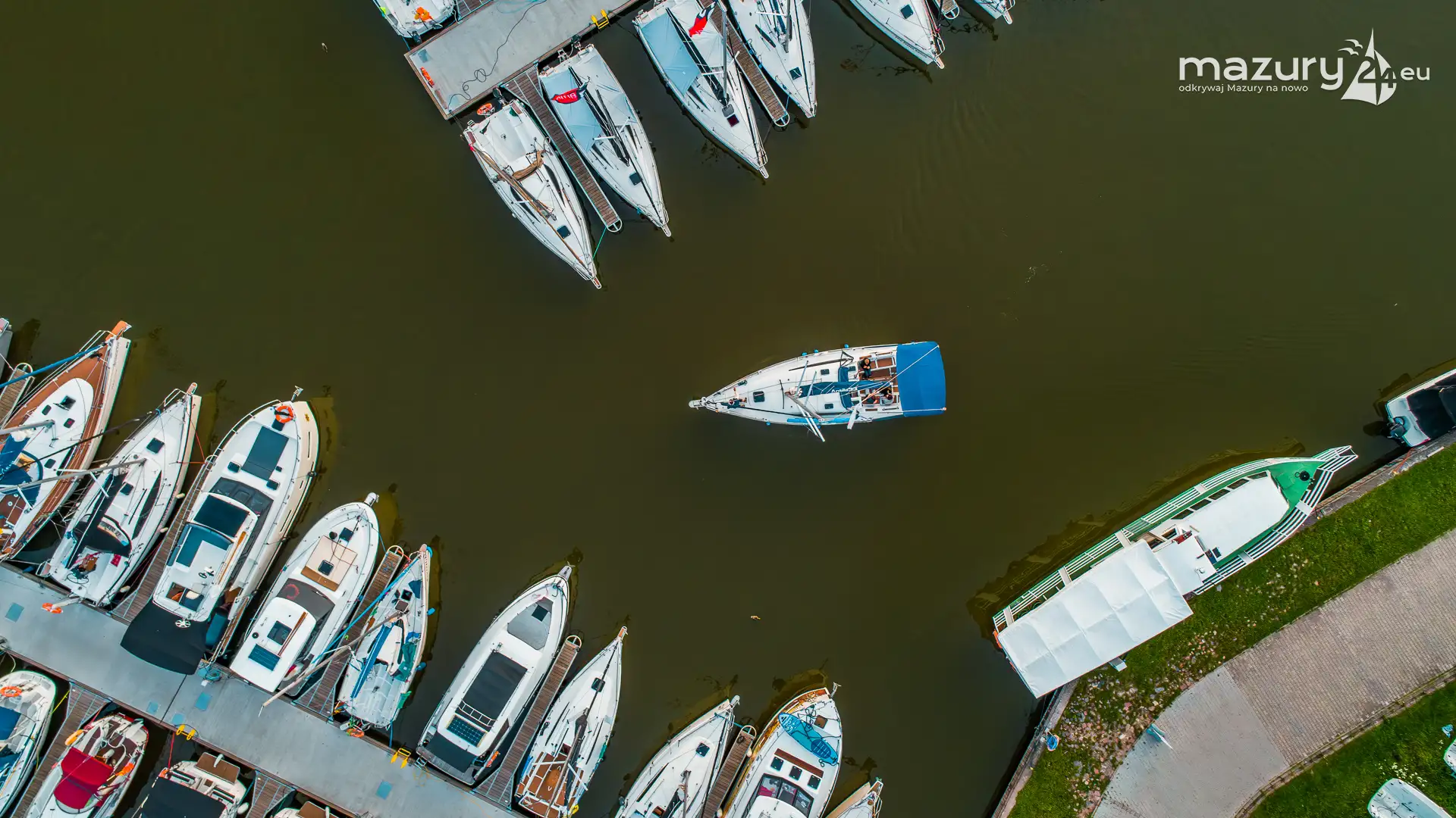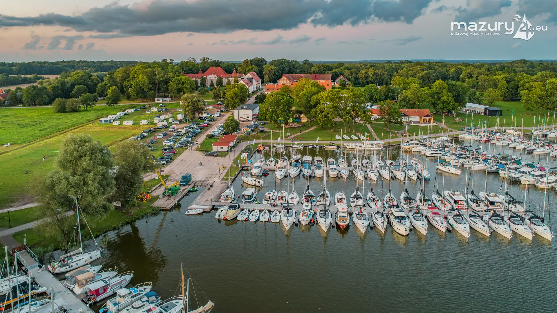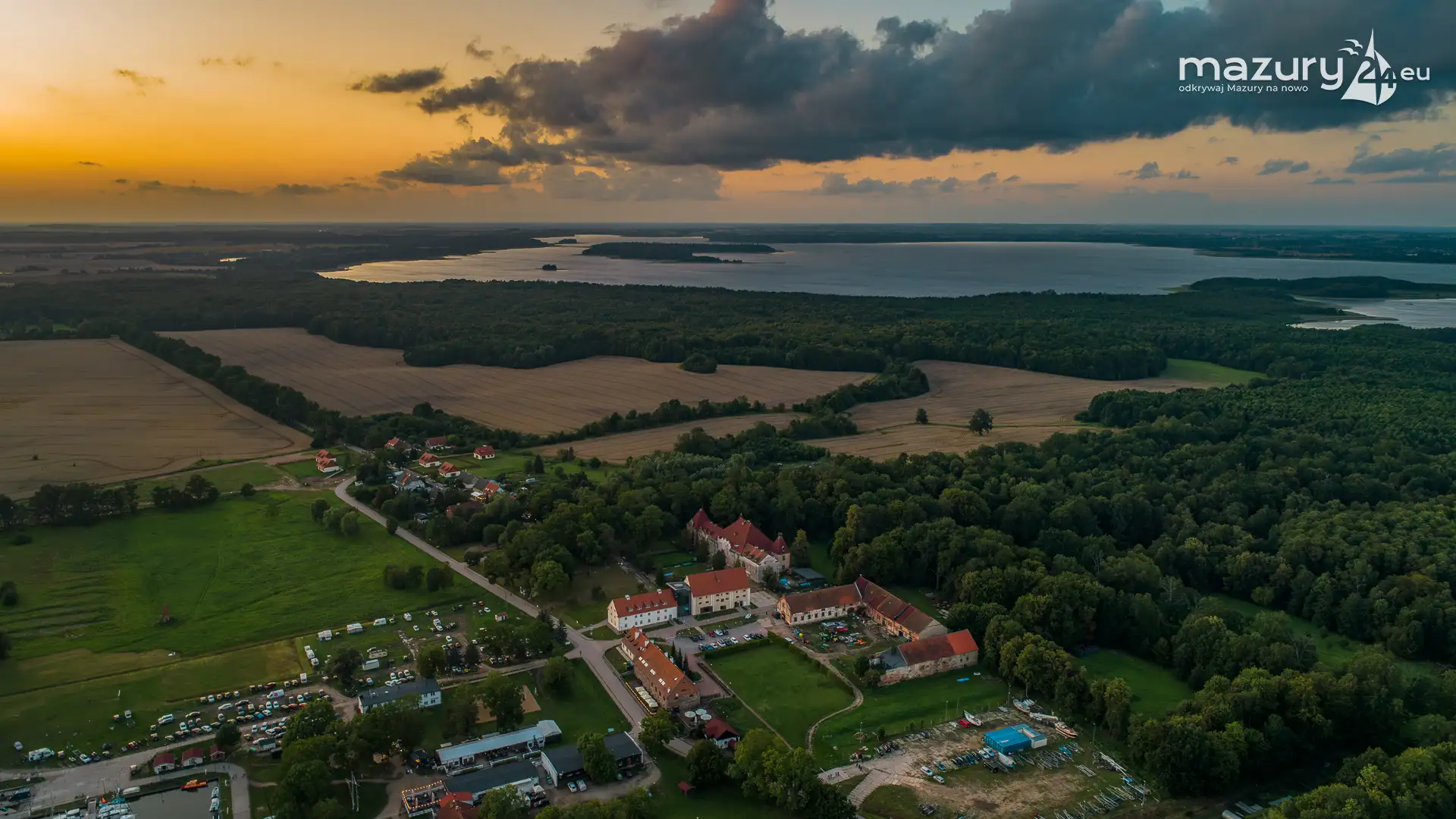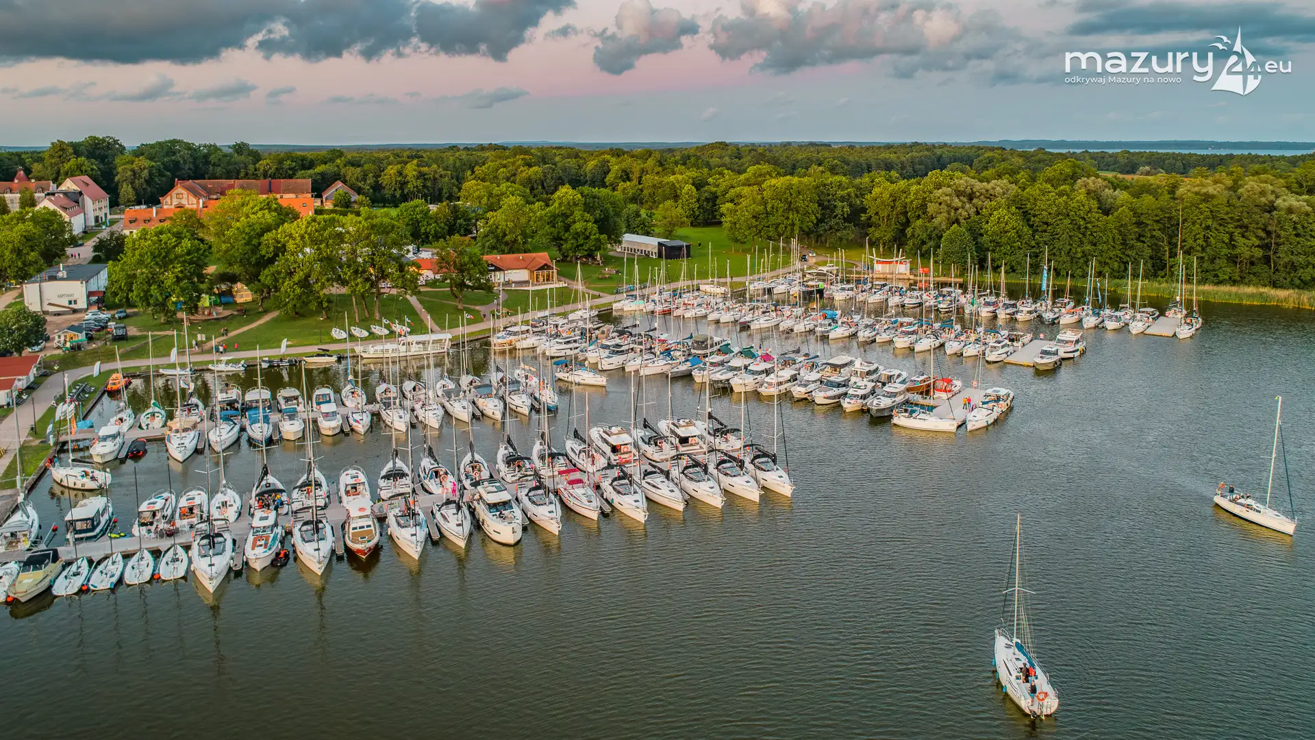 Port PTTK o zachodzie słońca z drona, sierpień 2025 r.