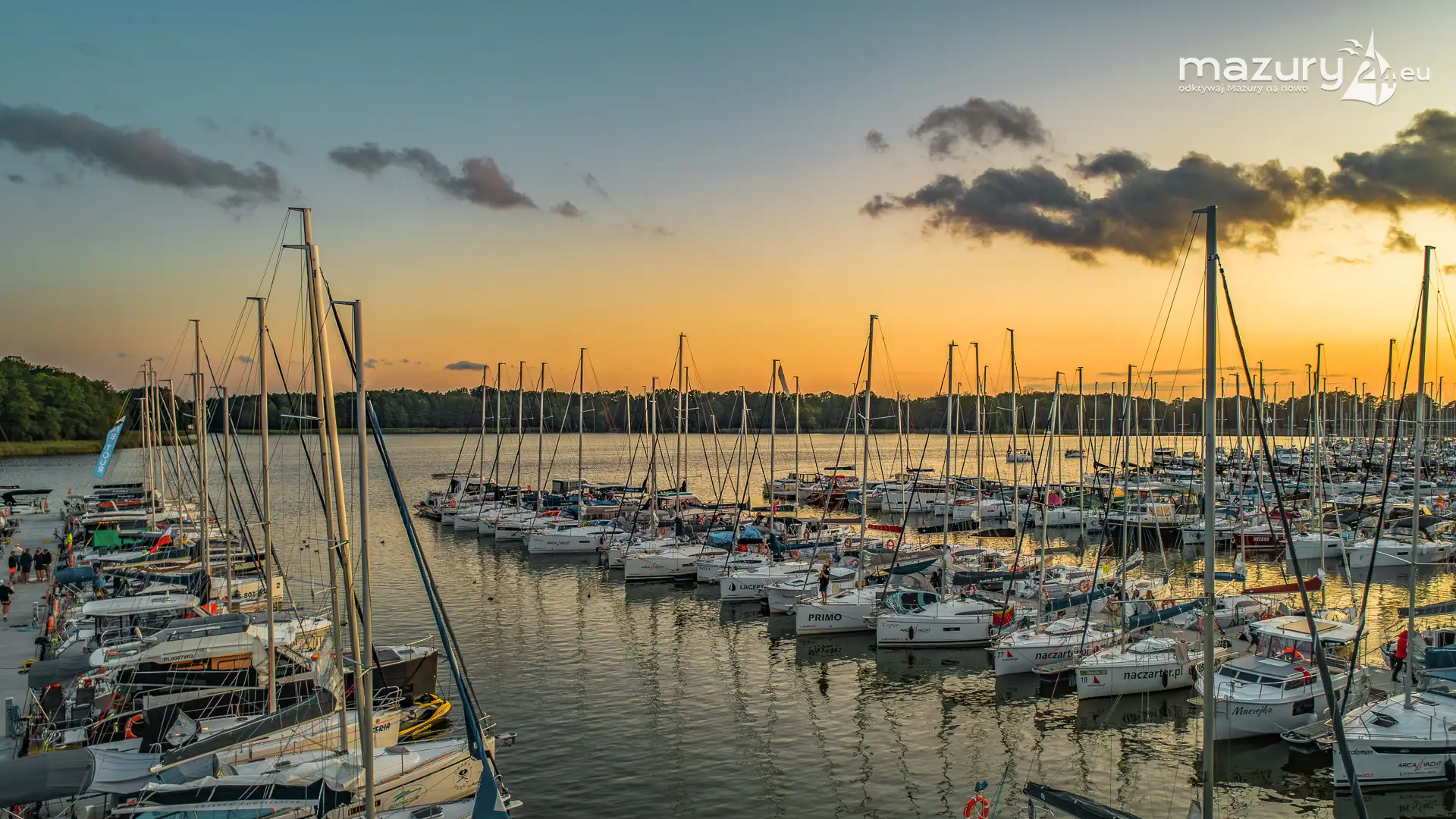 Sztynort w sezonie prawie nigdy nie śpi... Zachód słońca wyznacza tylko kolejny etap dnia. Kilka dni temu udało nam się trafić na piękne rozpoczęcie wieczoru przy porcie zapchanym, niczym pełen wybrany grot. Ten największy port na Mazurach niesamowicie prezentuje się wypełnionymi po brzegi kejami i setkami masztów lekko bujającymi przez ruch na wodzie...