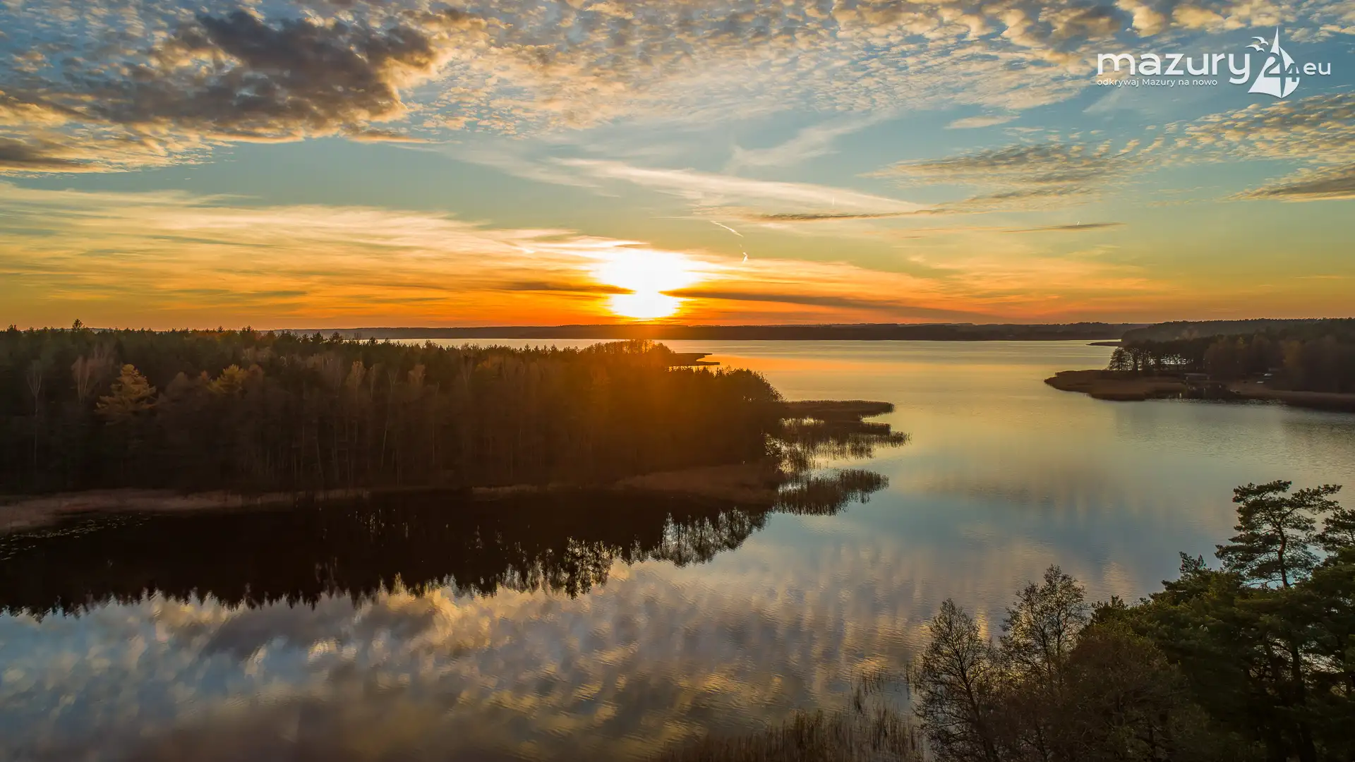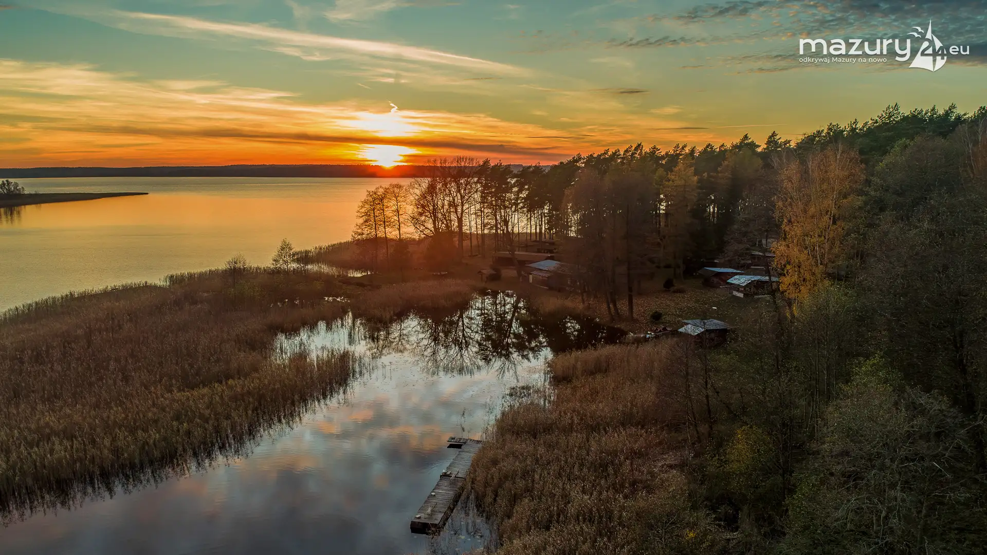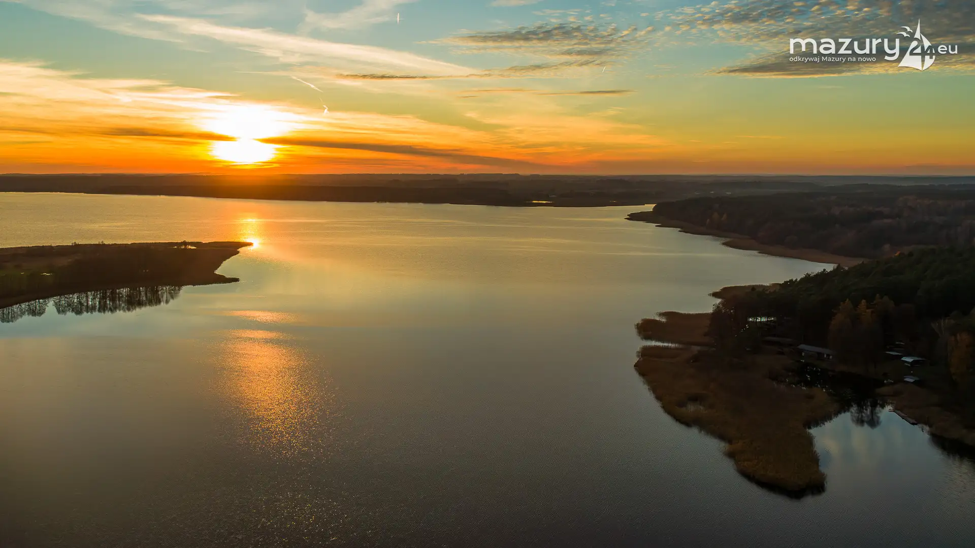 Kilka dni temu pokazaliśmy Wam ten sam zachód z "normalnej" wysokości. Ujęcia z drona mocno jednak zmieniają optykę i perspektywę, pokazując więcej odbić w wodzie, rzeczywisty rozmiar akwenu oraz często - troszeczkę inne kolory. Niemniej za nami magiczny zachód słońca, Mazury pod koniec jesieni i piękne wspomnienie gdy to słońce w końcu przedarło się przez mazurskie mgły...