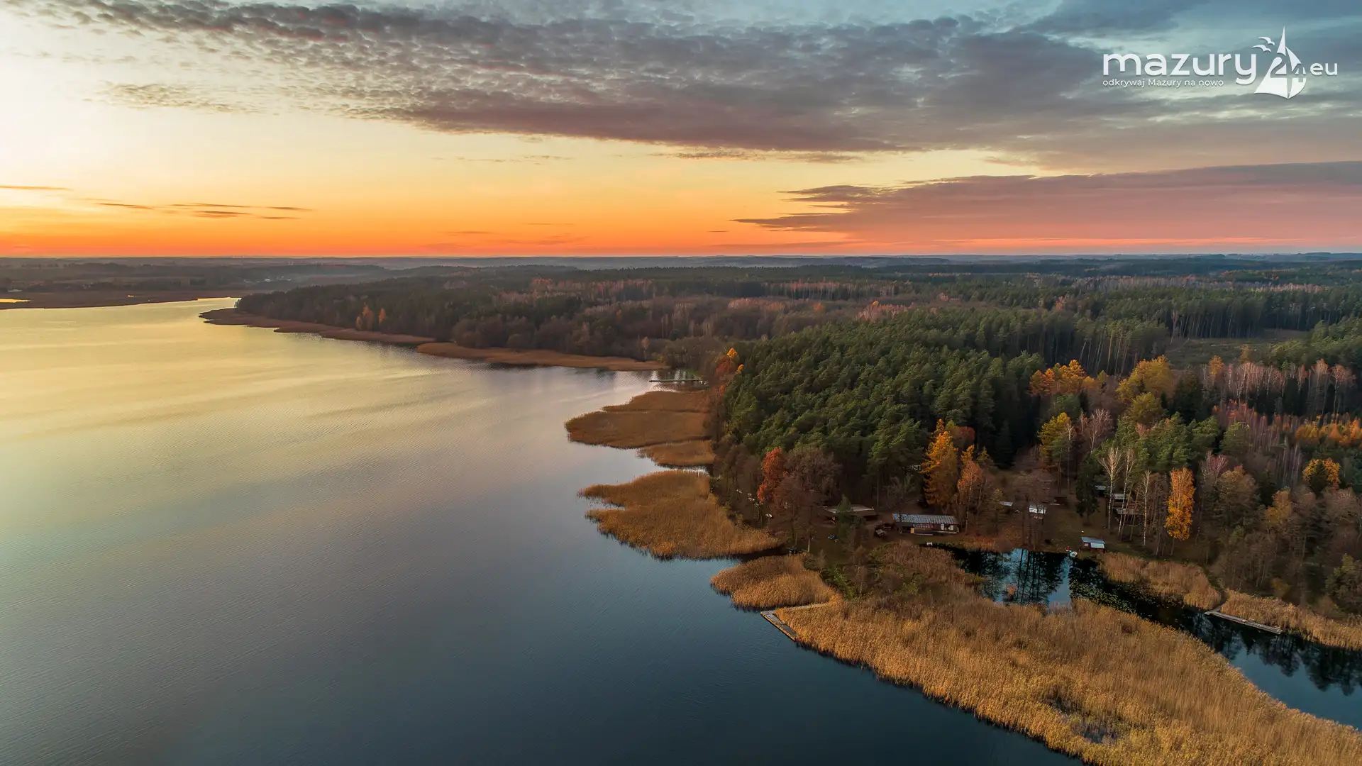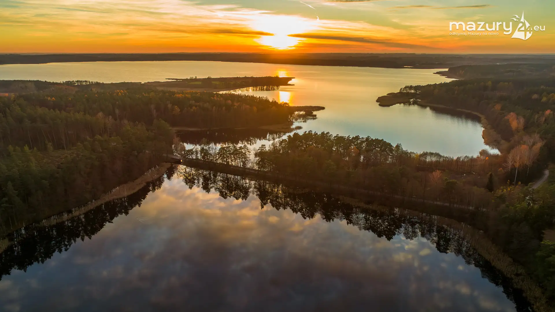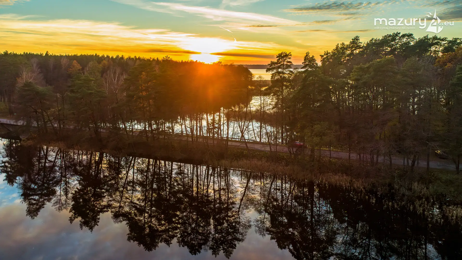 Kilka dni temu pokazaliśmy Wam ten sam zachód z "normalnej" wysokości. Ujęcia z drona mocno jednak zmieniają optykę i perspektywę, pokazując więcej odbić w wodzie, rzeczywisty rozmiar akwenu oraz często - troszeczkę inne kolory. Niemniej za nami magiczny zachód słońca, Mazury pod koniec jesieni i piękne wspomnienie gdy to słońce w końcu przedarło się przez mazurskie mgły...