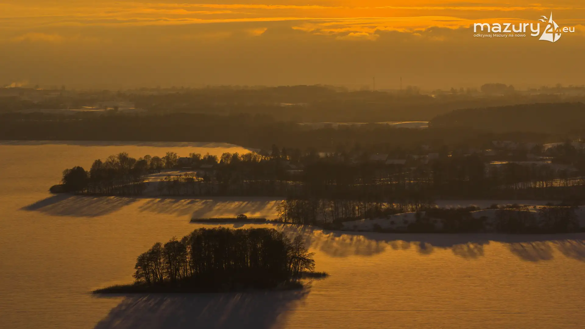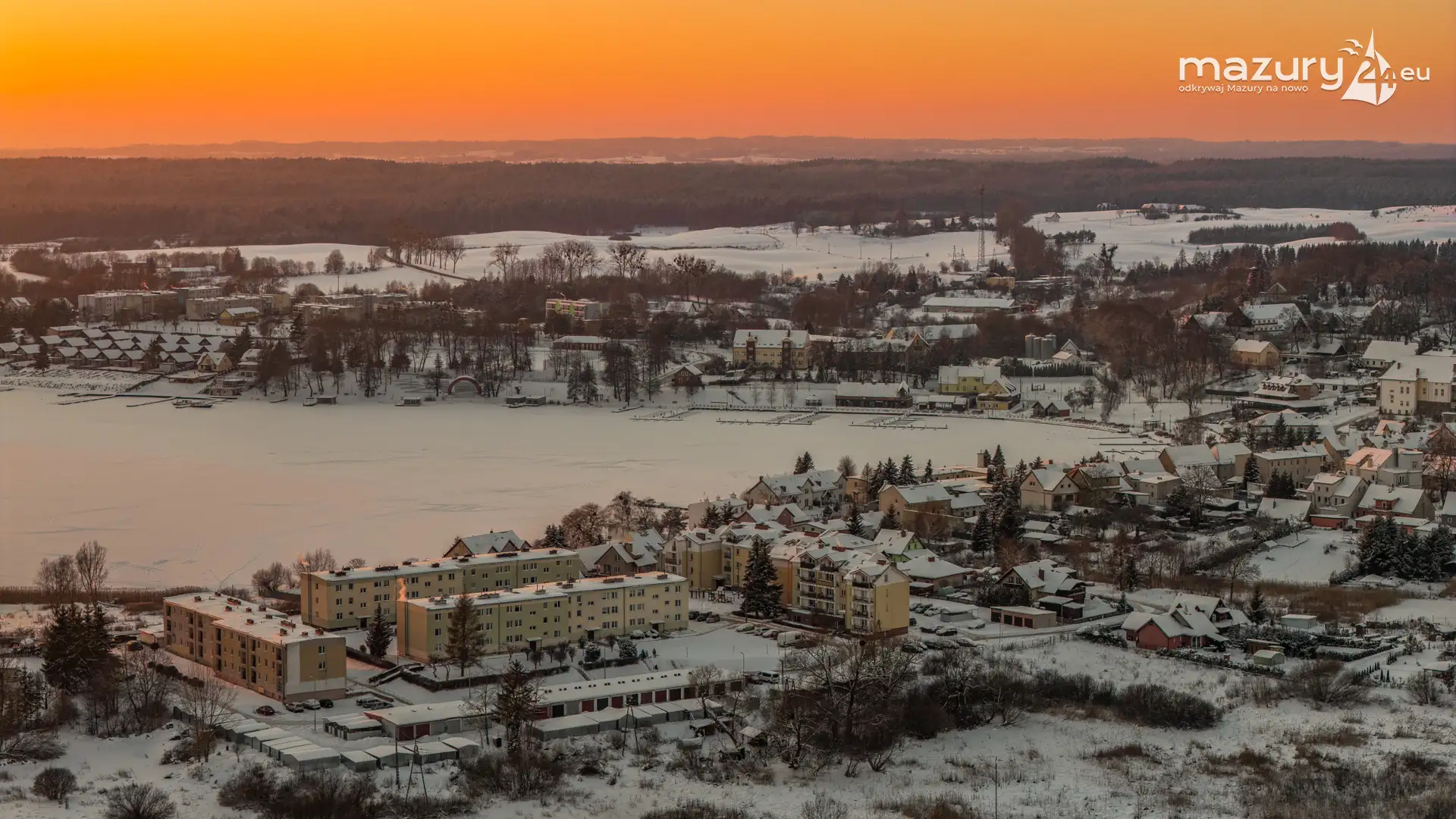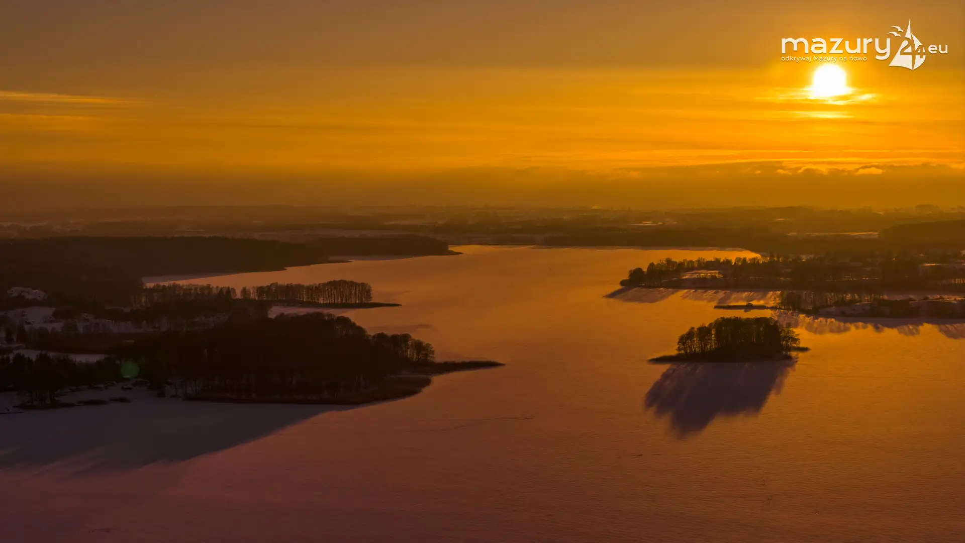 Zachód słońca nad jeziorem Ryńskim z drona, luty 2026 r. - zdjęcie 22