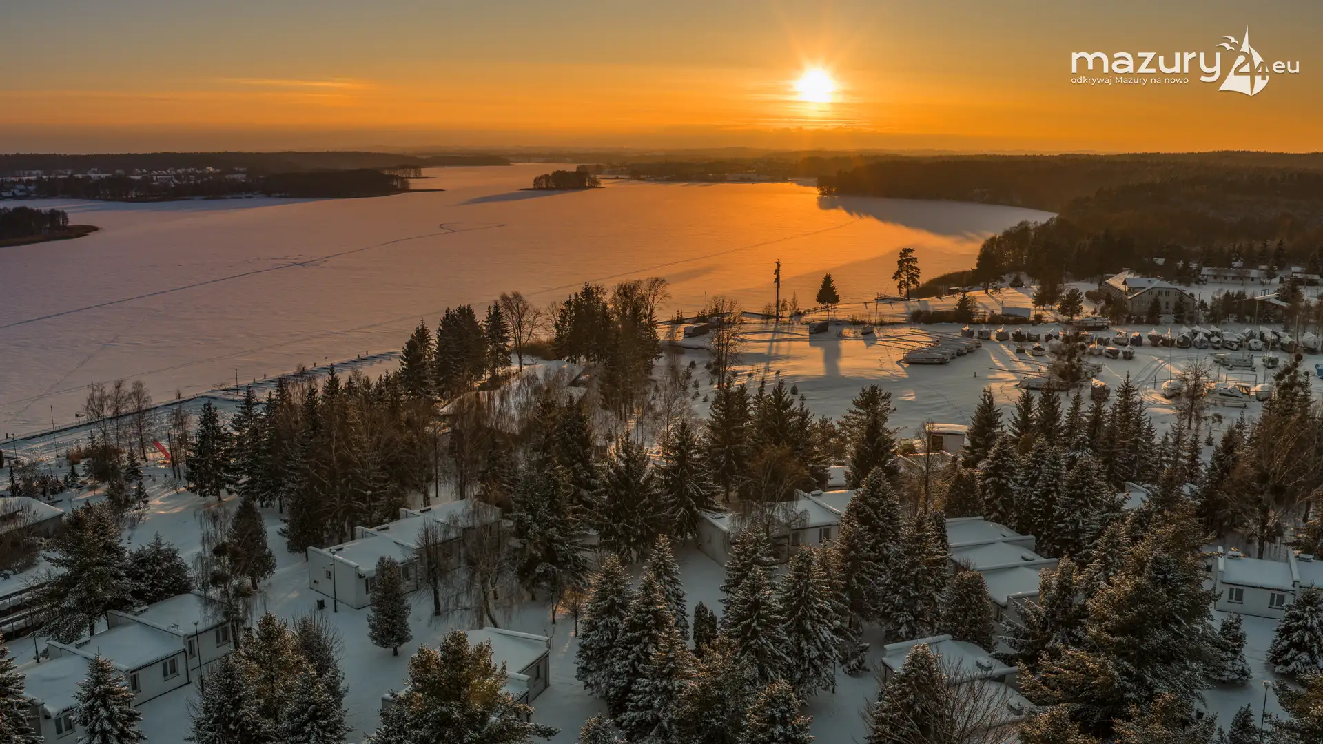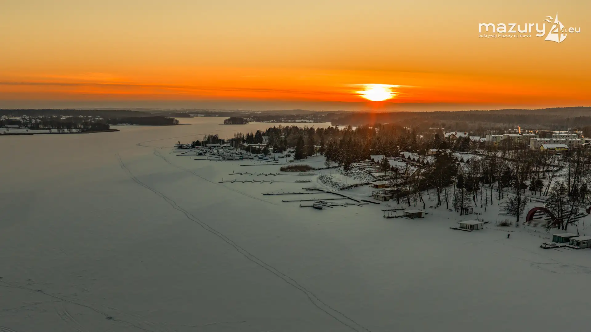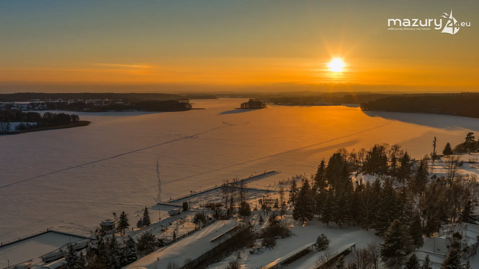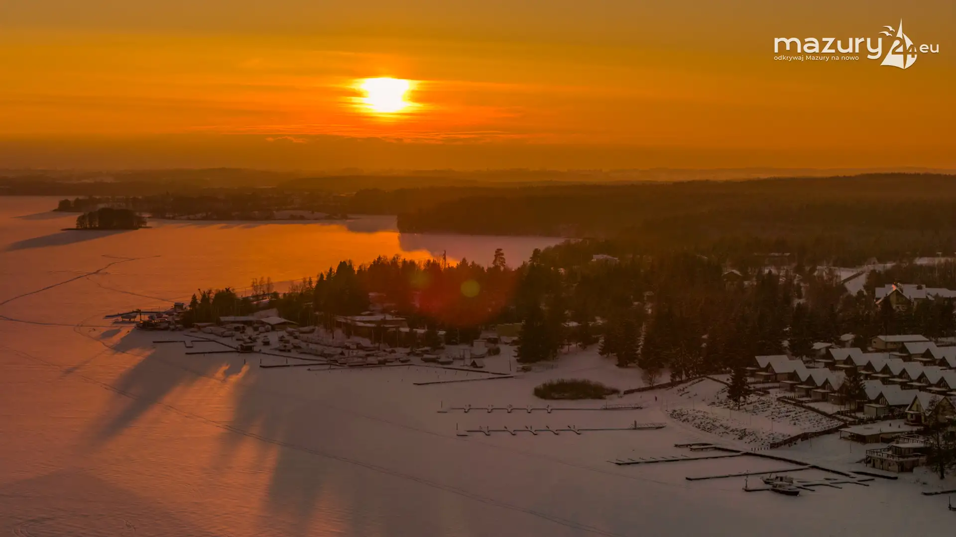 Zachód słońca nad jeziorem Ryńskim z drona, luty 2026 r. - zdjęcie 27