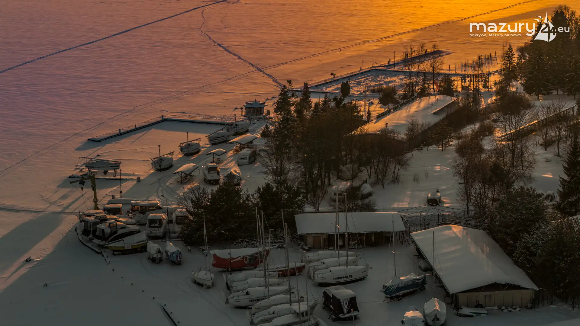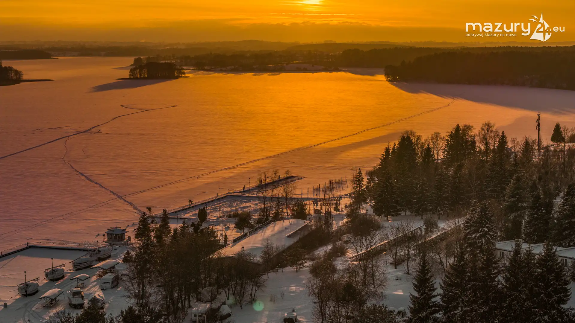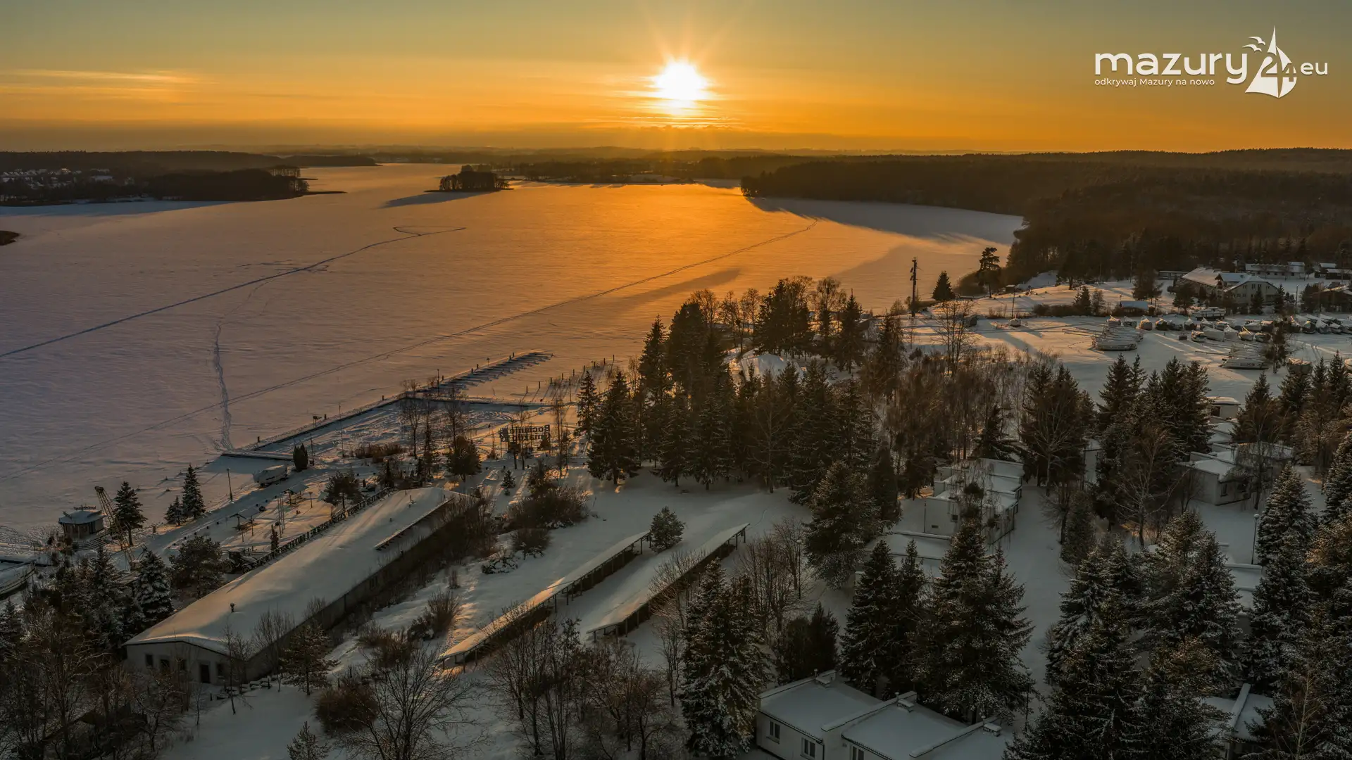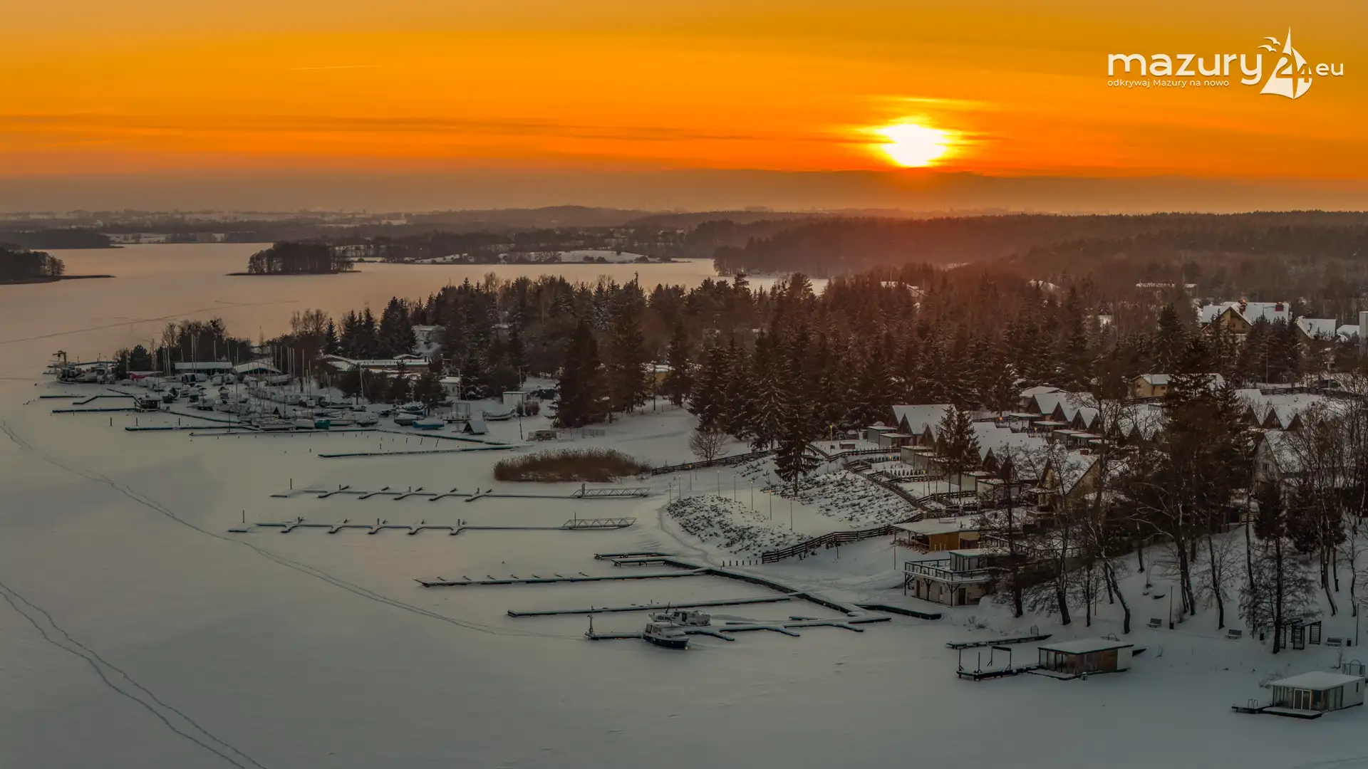 Zachód słońca nad jeziorem Ryńskim z drona, luty 2026 r. - zdjęcie 27