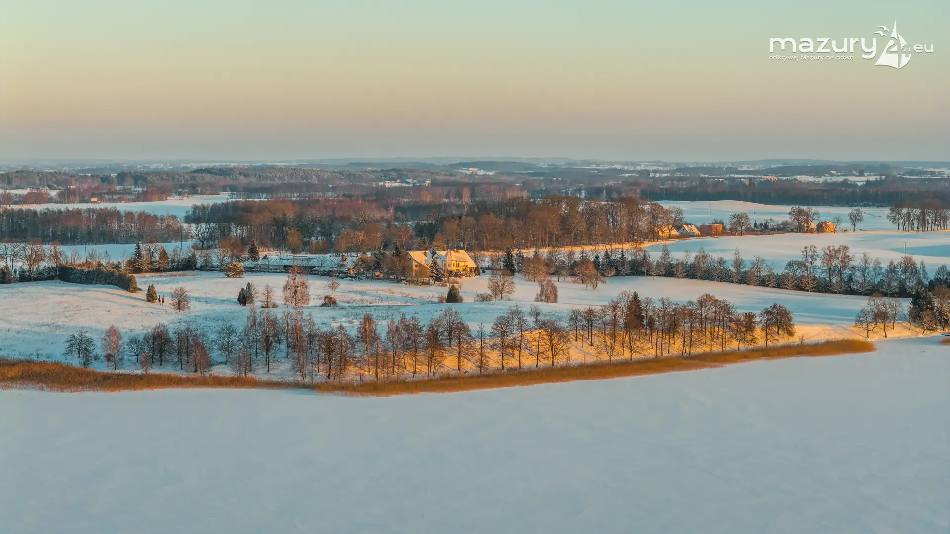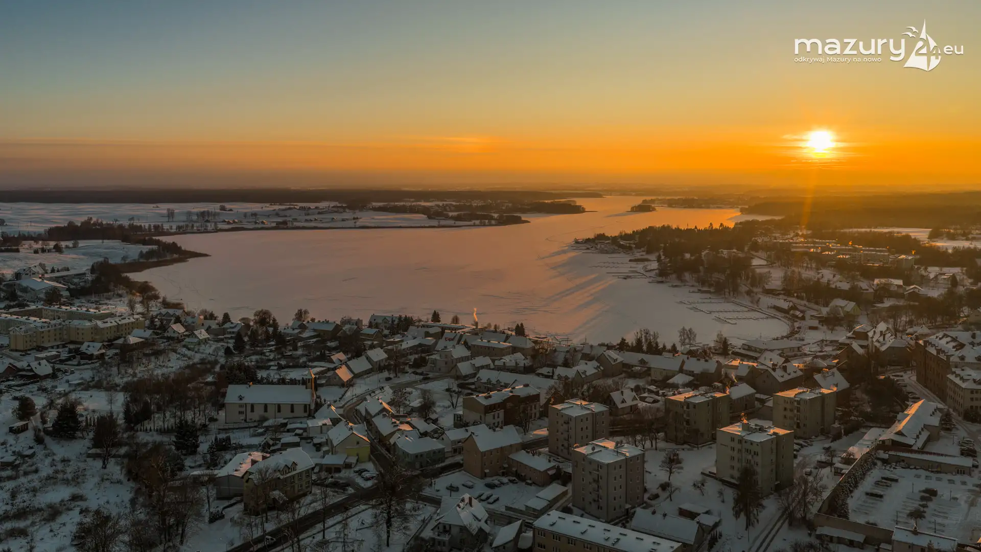 Zachód słońca nad jeziorem Ryńskim z drona, luty 2026 r. - zdjęcie 33