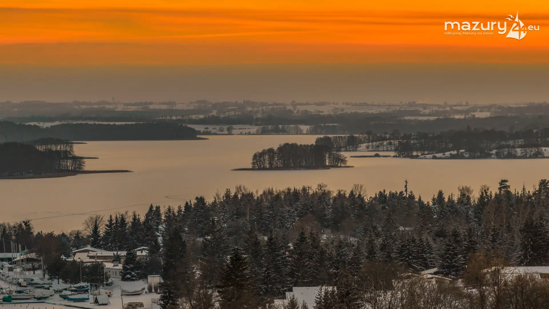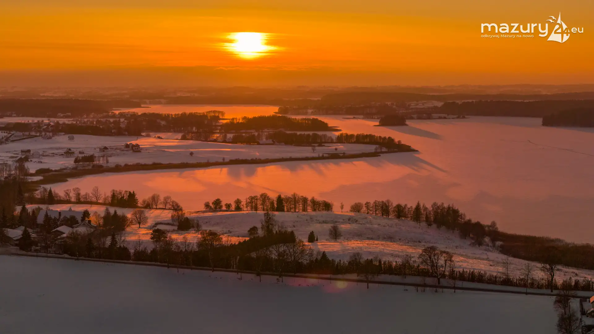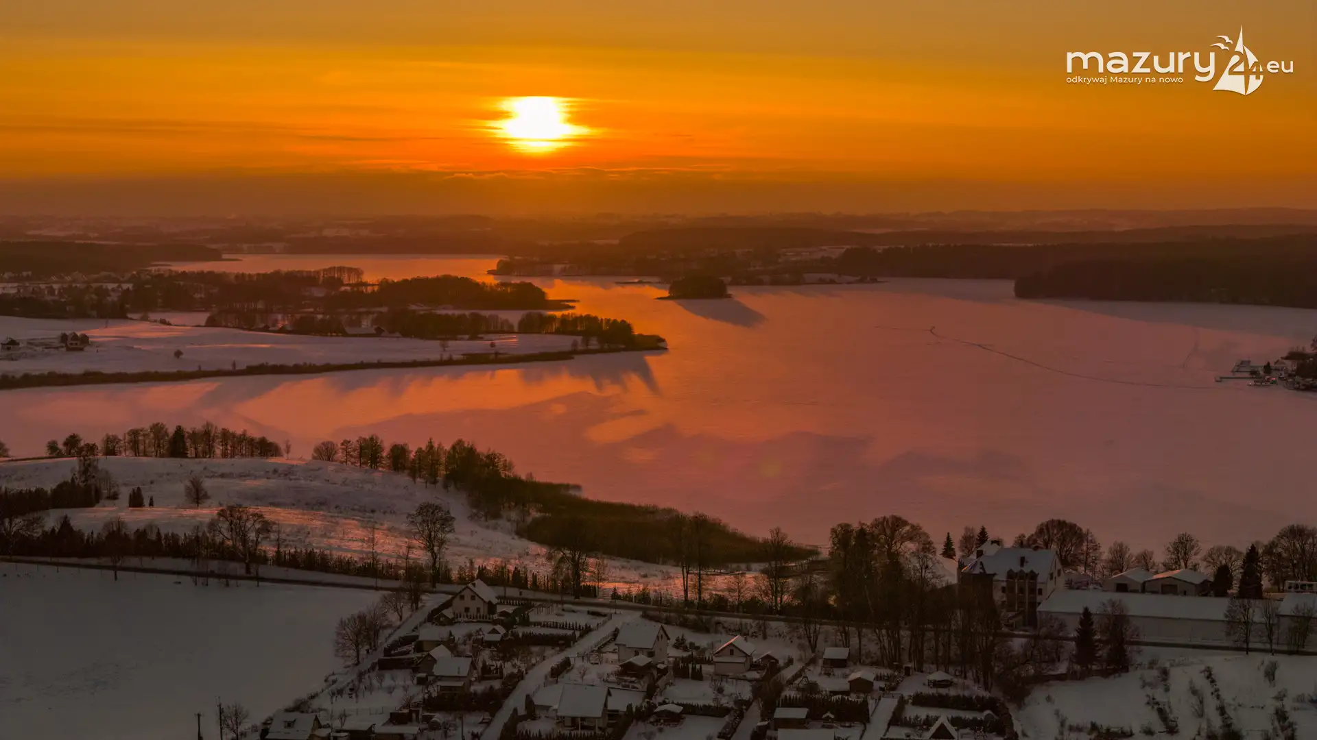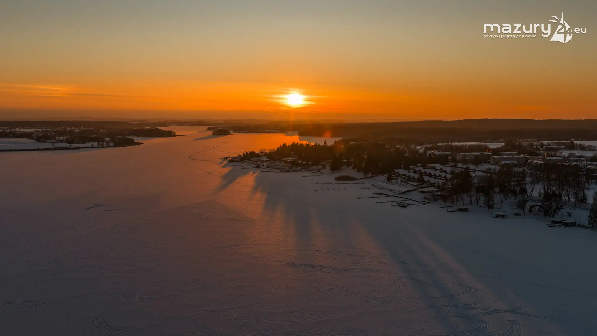 Zachód słońca nad jeziorem Ryńskim z drona, luty 2026 r. - zdjęcie 13