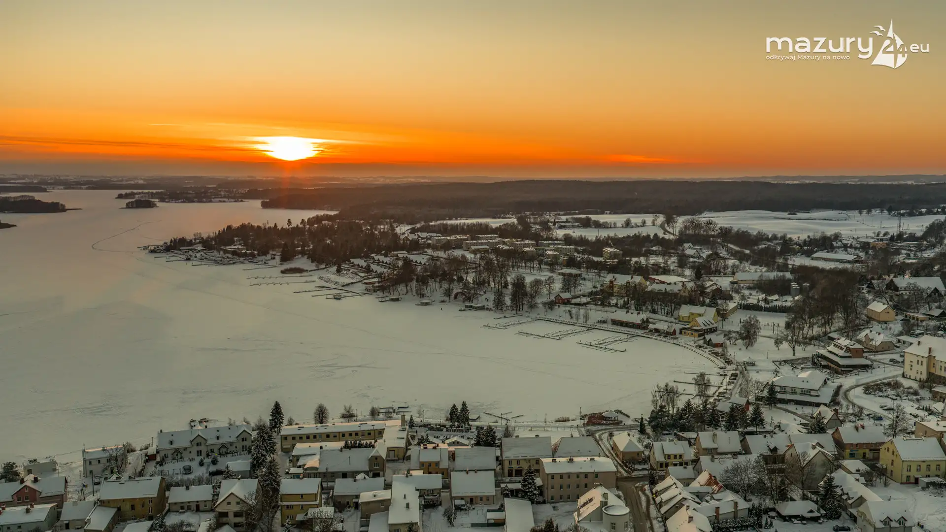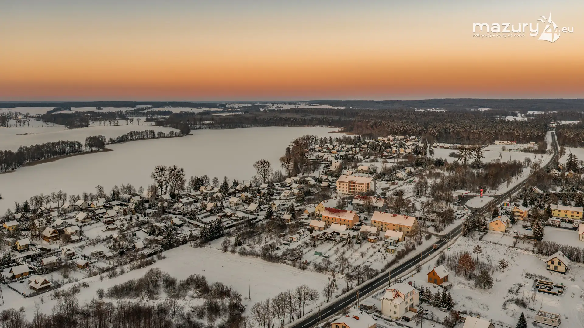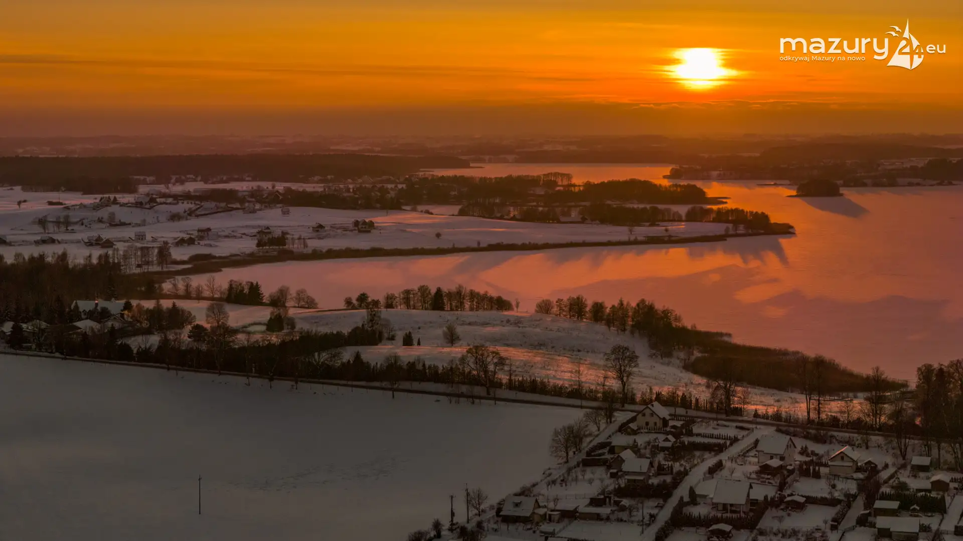 Zachód słońca nad jeziorem Ryńskim z drona, luty 2026 r. - zdjęcie 26